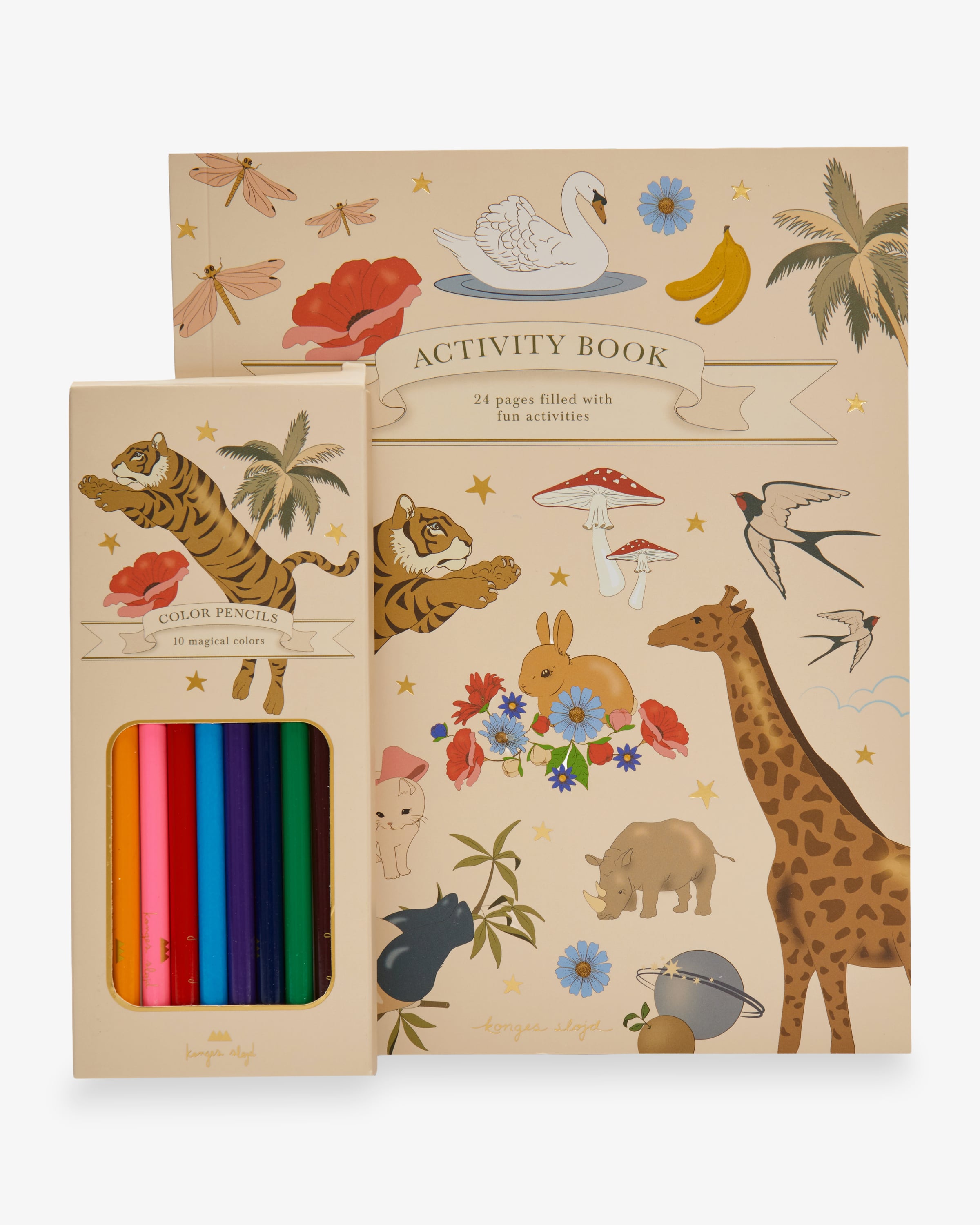 Activity Heft für Kinder von Konges Slojd. Mit diesem zauberhaften Modell kann Ihr Kind immer wieder sein eigenes kleines Universum gestalten! Sticker, Ausmalbilder und kreative Rätsel laden zum Gestalten und Dekorieren ein und sorgen für stundenlangen Spielspaß.