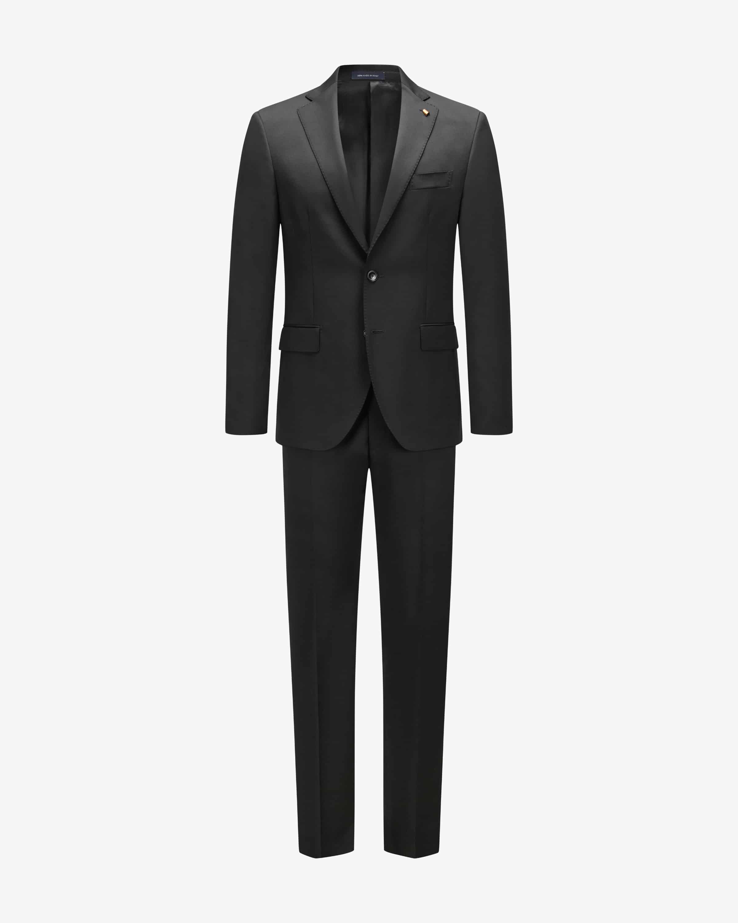 Anzug für Herren von LATORRE in Schwarz. Das Modell präsentiert sich mit angenehm leichter Woll-Qualität, die für angenehmen Tragekomfort sorgt. Klassische Details und der abnehmbare Pin am Kragen runden das Design im zeitlosen Business-Look harmonisch ab.
