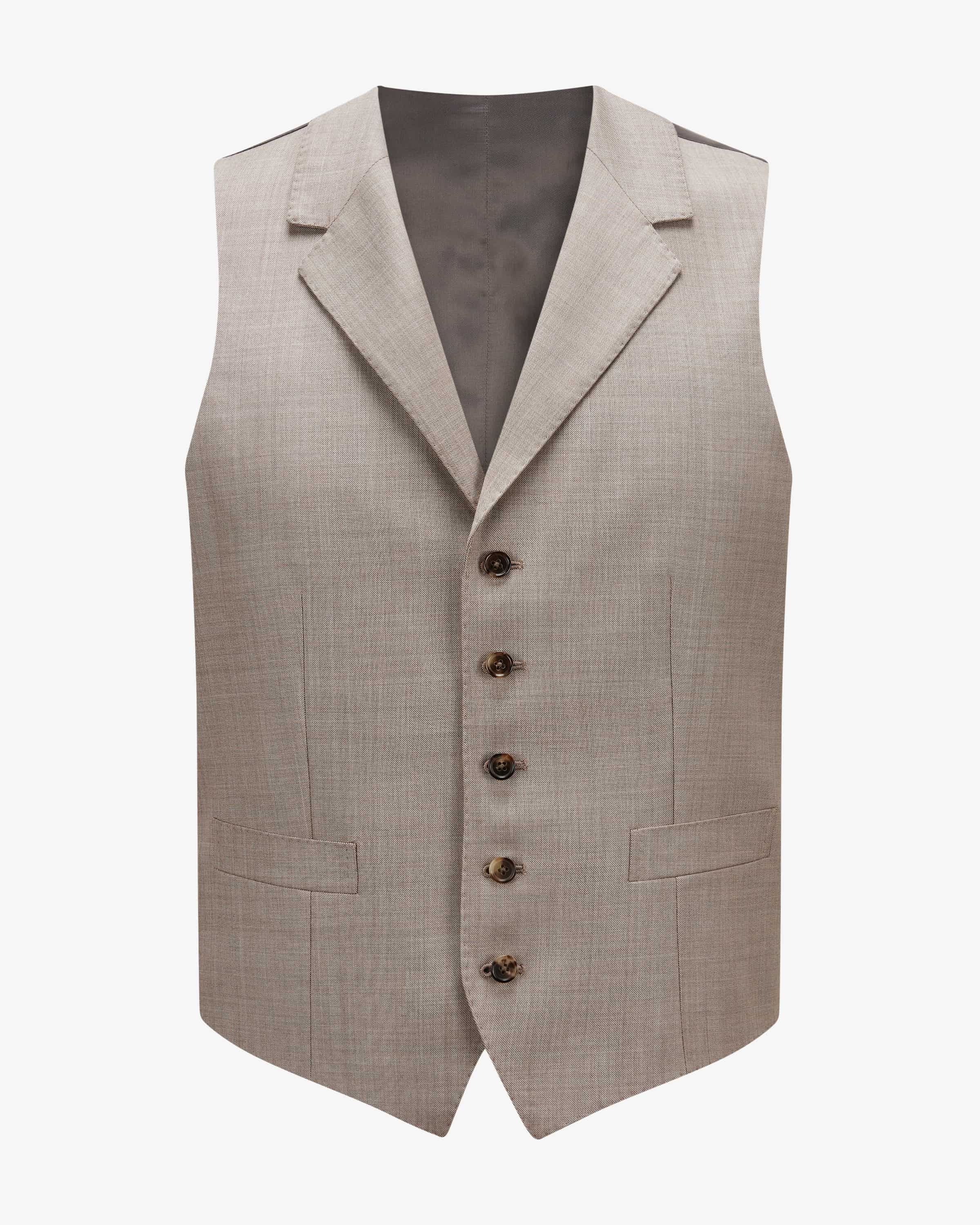 Anzugweste für Damen von Caruso in Sand. Das Label fertigt moderne Maßmode in Parma – leicht, italienisch, hochwertig. Der Claim: „Menswear Poetry“. Dieses Modell meliertem Design, überzeugt mit hochwertiger Woll-Qualität, während die Kombination mit dem passenden Anzug einen stilvollen Begleiter für Hochzeiten und festive Anlässe kreiert.