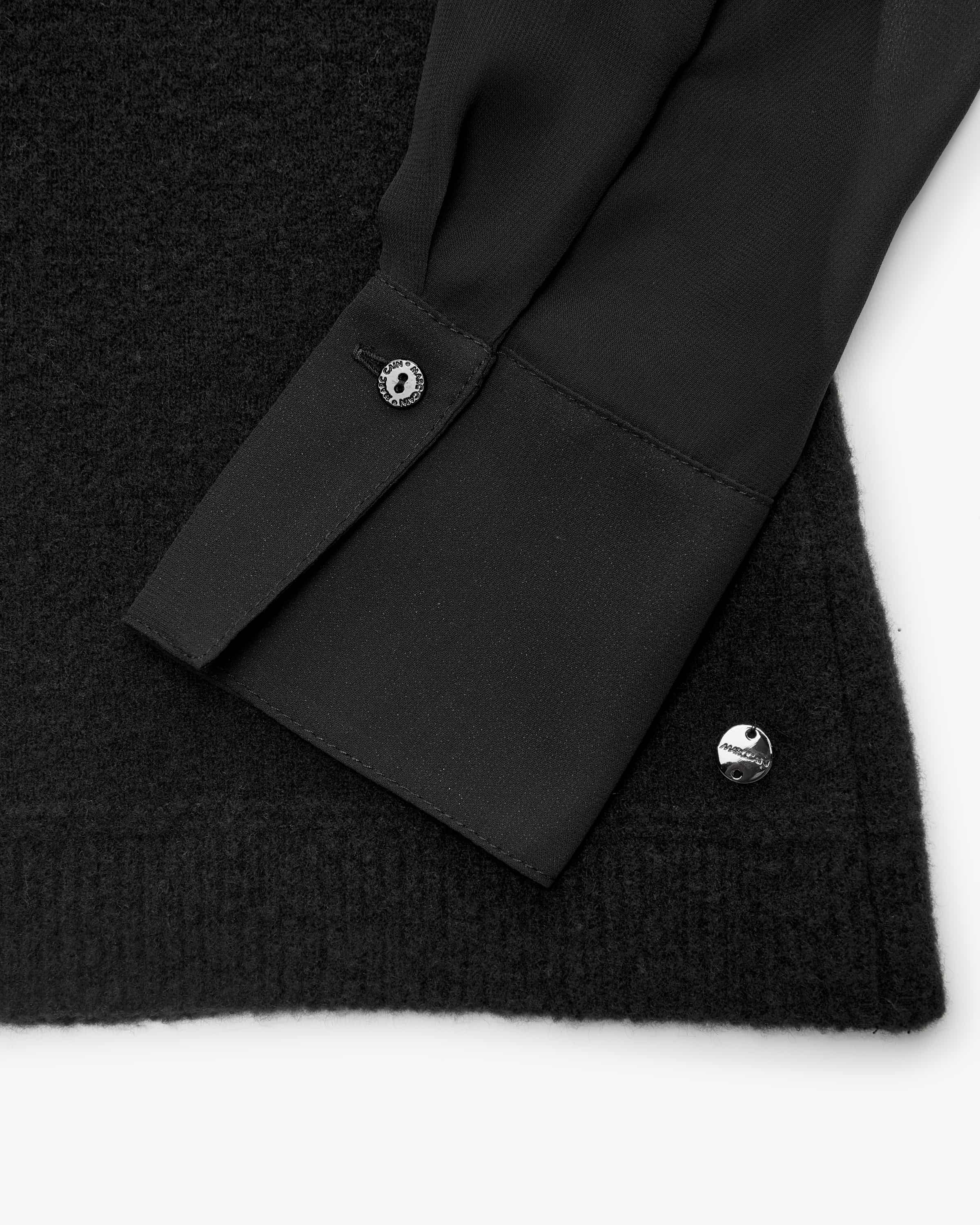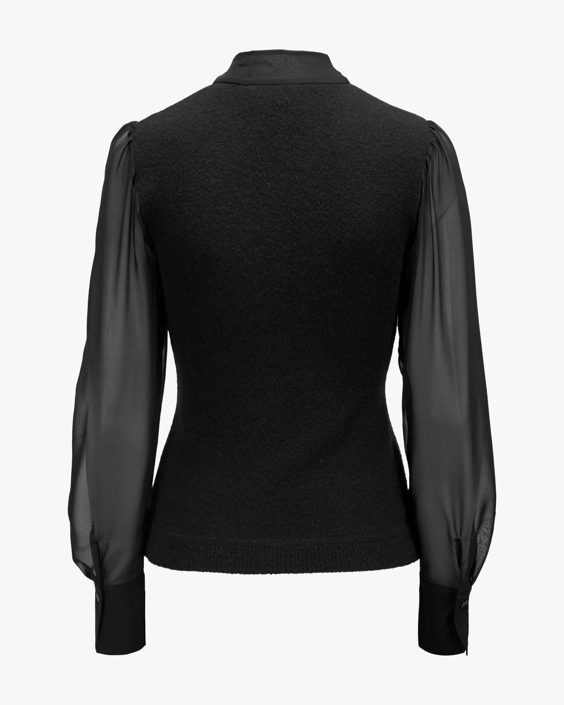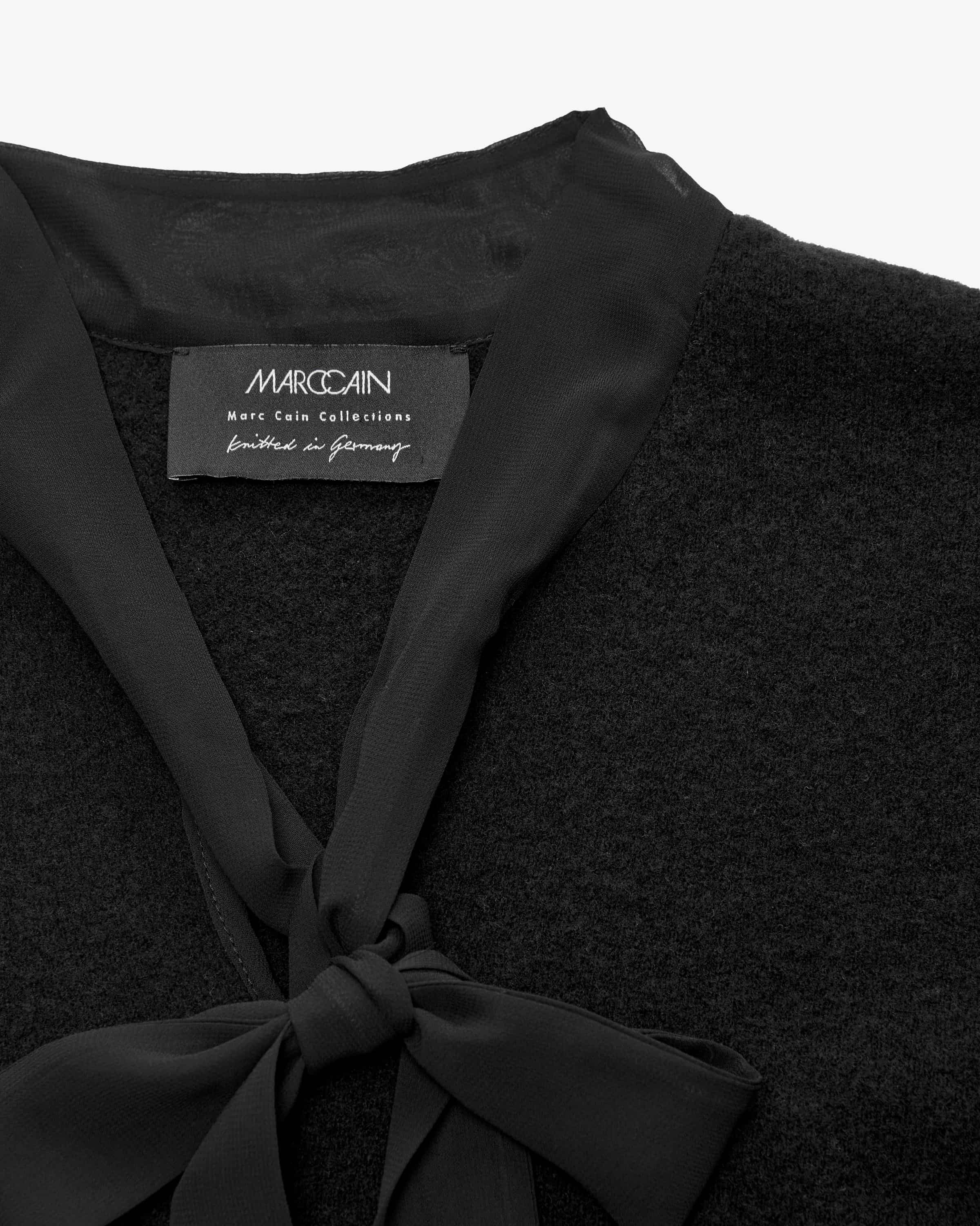Blusenshirt für Damen von Marc Cain in Schwarz. Das Modell punktet mit hohem Tragekomfort dank dem hochwertigen Schurwoll-Mix, während die semi-transparenten Ärmel einen sowohl romantischen als auch femininen Charakter verleihen – ein modisches und eleganten Highlight-Piece.