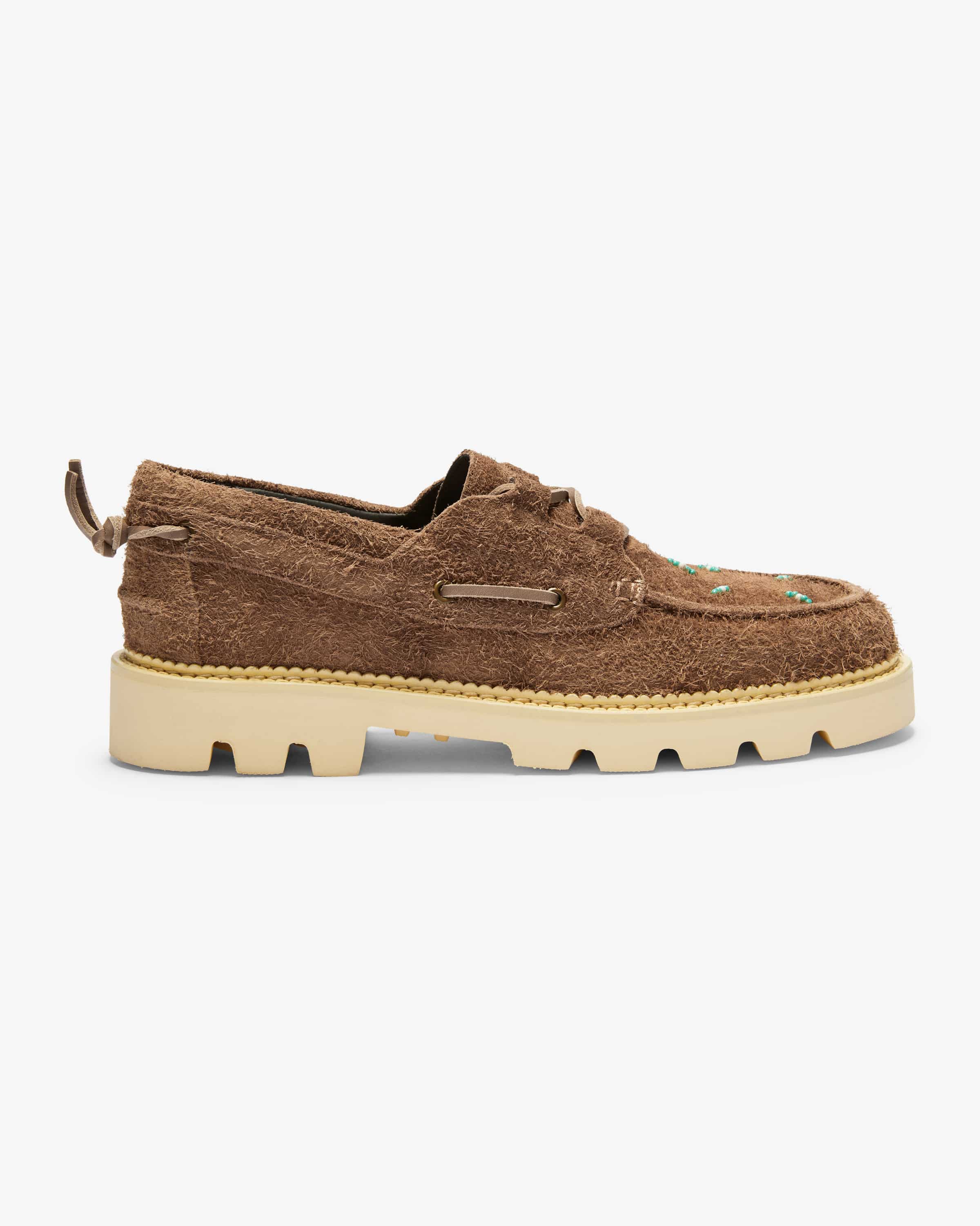 Bootsschuhe für Herren von Collegium in Hellbraun. Der sommerliche Klassiker neu gedacht - Der Schuh präsentiert sich dank strukturiertem Veloursleder sowie der markanten Profilsohle in raffinierter Aufmachung, während die charakteristische Leder-Schnürung in Verbindung mit den kontrastierenden Schmuckperlen das Gesamtbild stilvoll in Szene setzt.