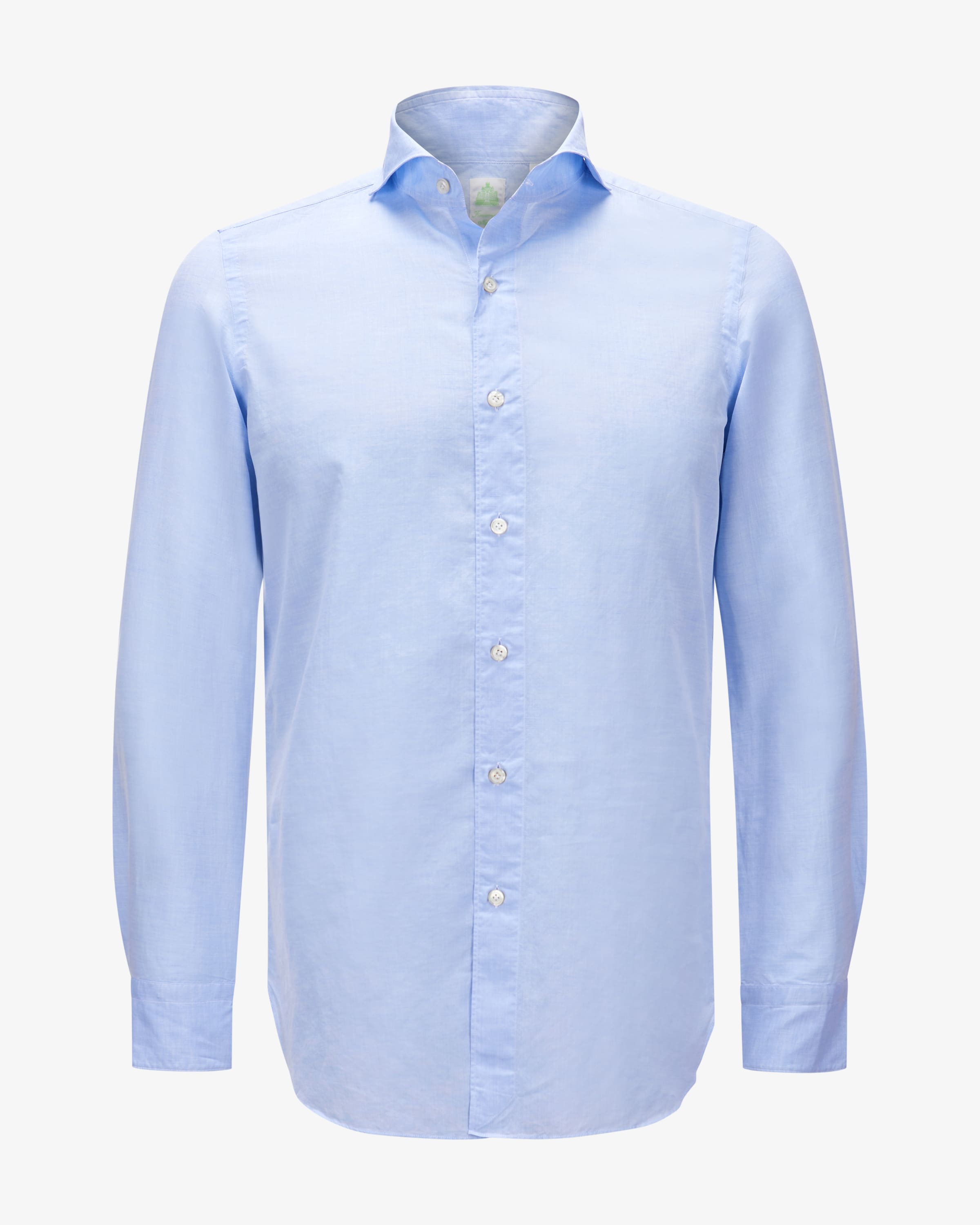 Business-Leinenhemd Gaeta Sergio Slim für Herren von Finamore 1925 in Hellblau. Neapolitanische Hemdenmanufaktur mit über 100 Jahren Tradition – handgenäht & individuell. Mit tailliertem Schnitt und klassischen Details überzeugt das Hemd als stilvoller Partner für gehobene Business-Looks, während das schlichte Design eine besondere Note verleiht.