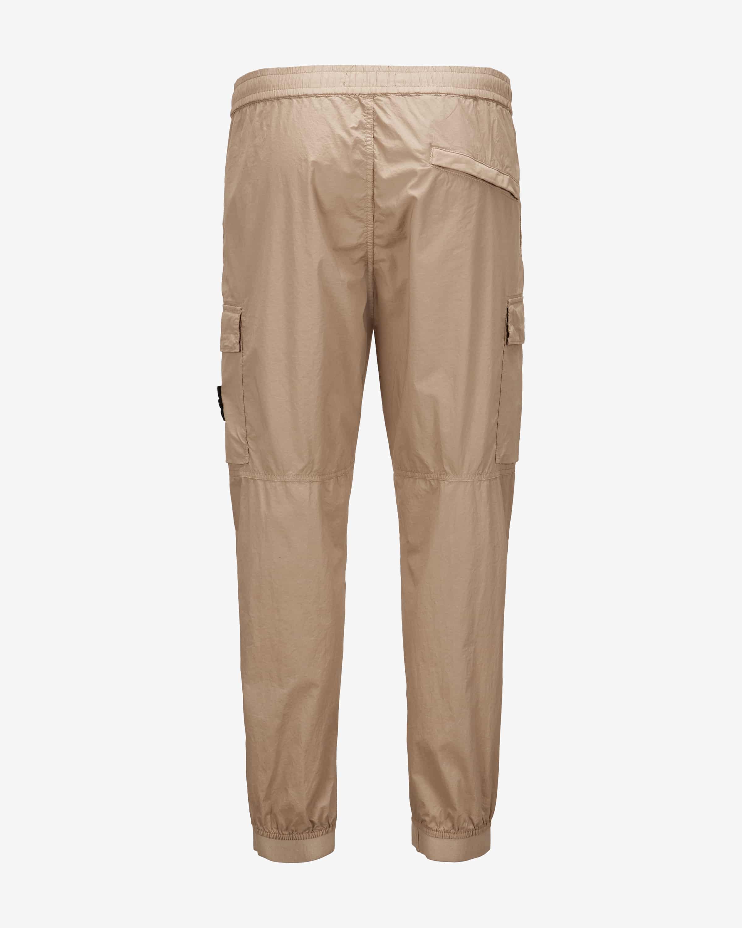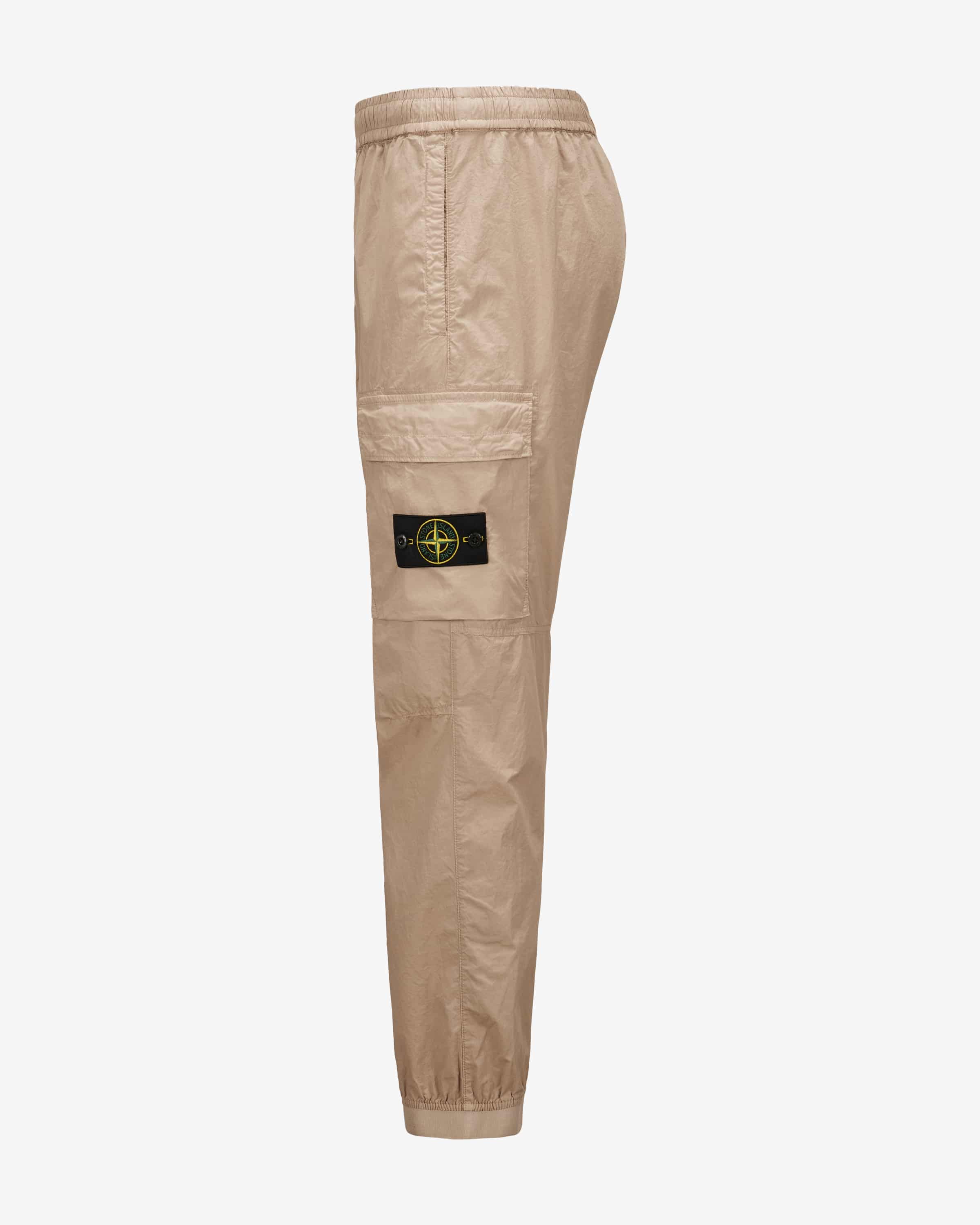 Cargohose für Herren von Stone Island in Sand. Stone Island steht seit 1982 für innovative Materialtechnologien und funktionales Design mit klarer, wiedererkennbarer Ästhetik. Während die legere Schnittführung mit zulaufendem, verkürztem Bein und elastischen Bündchen sowie der leichte Baumwoll-Mix einen komfortablen Casual-Favoriten kreieren, setzt die abnehmbare Logo-Plakette charakteristische Akzente.