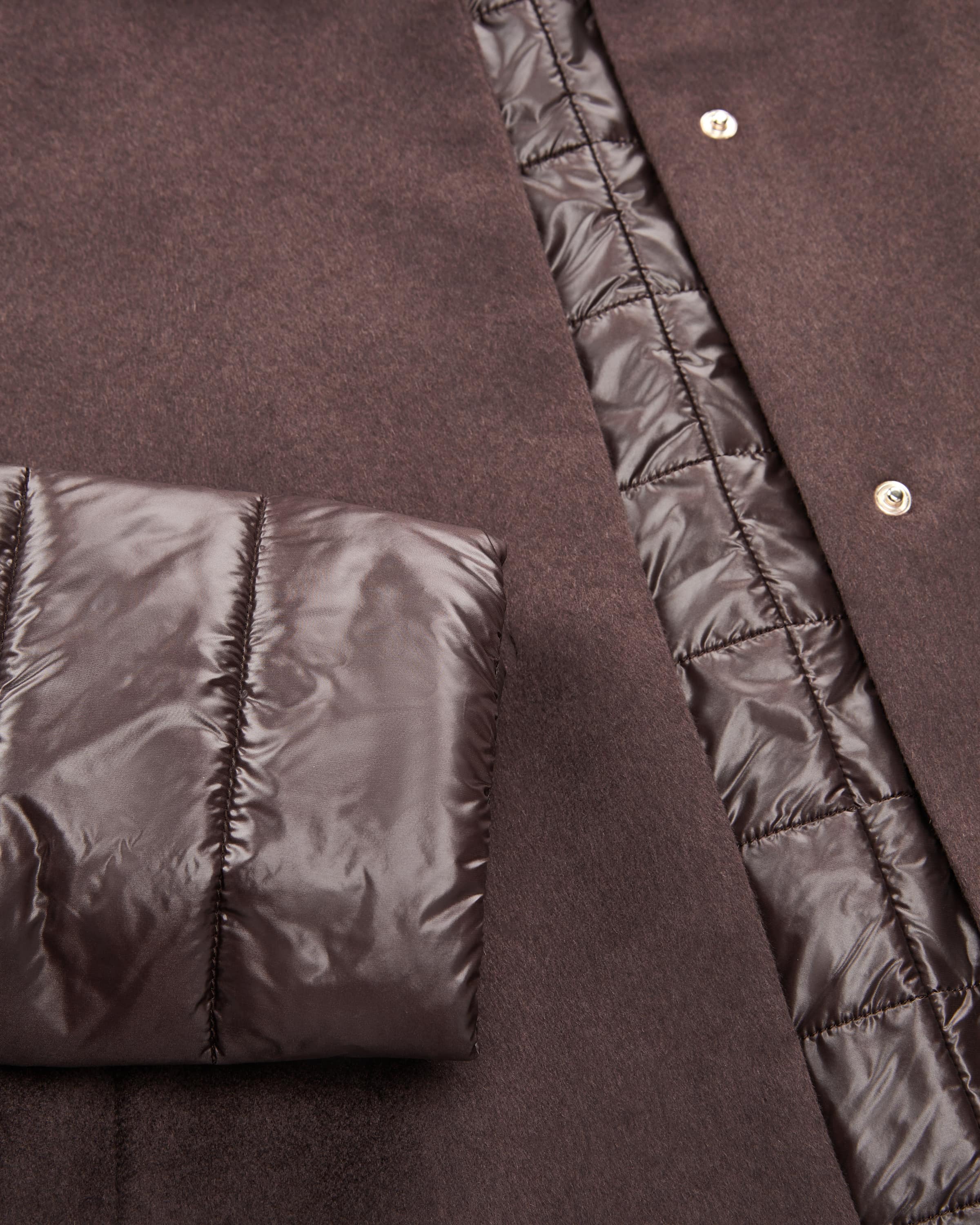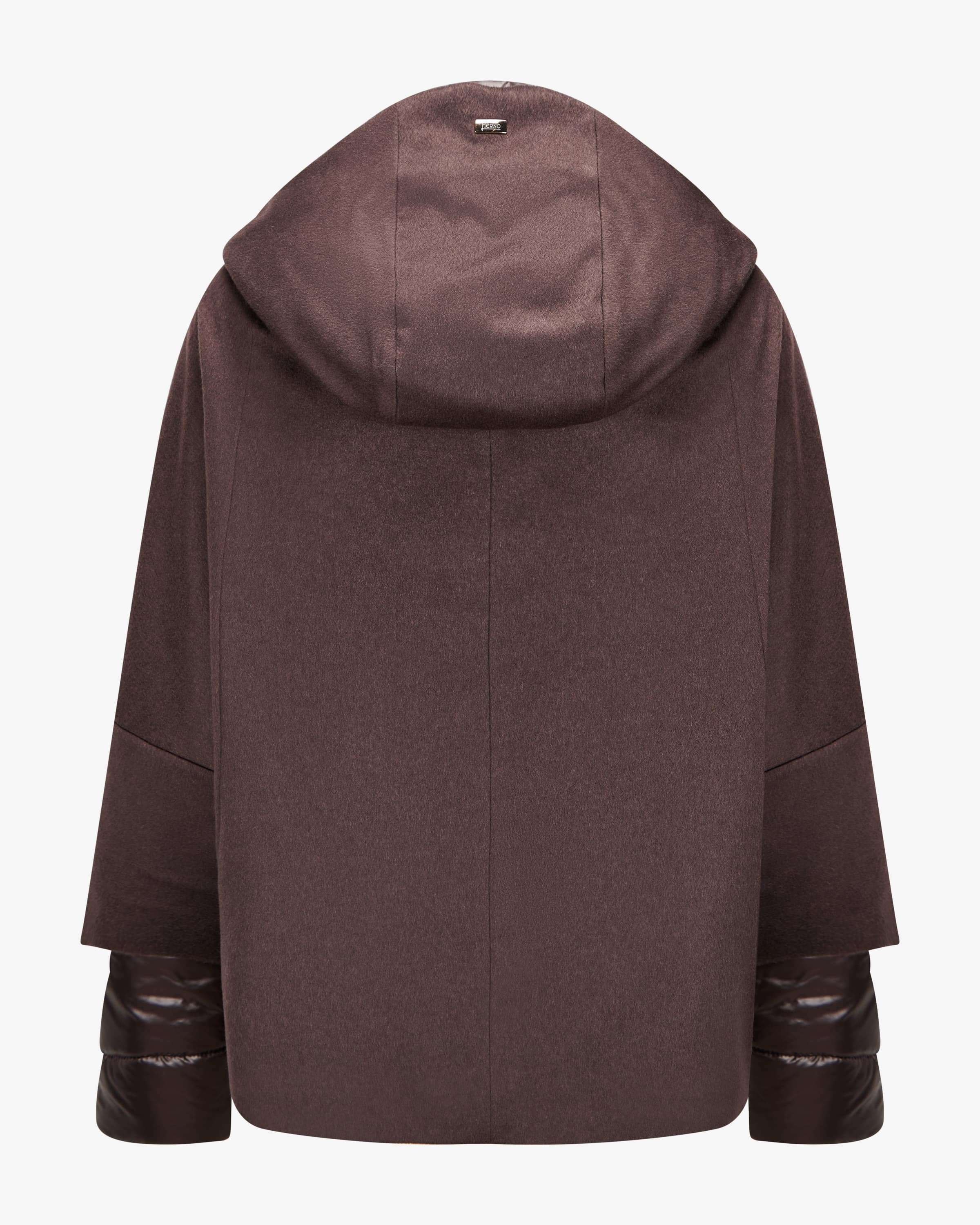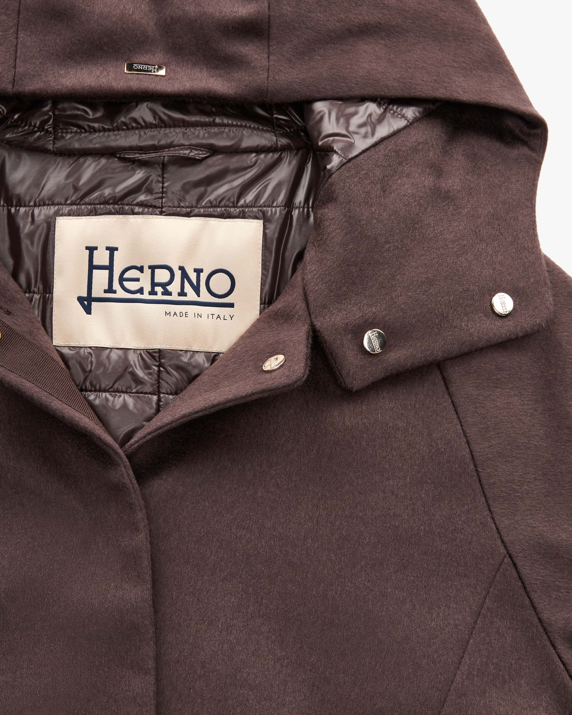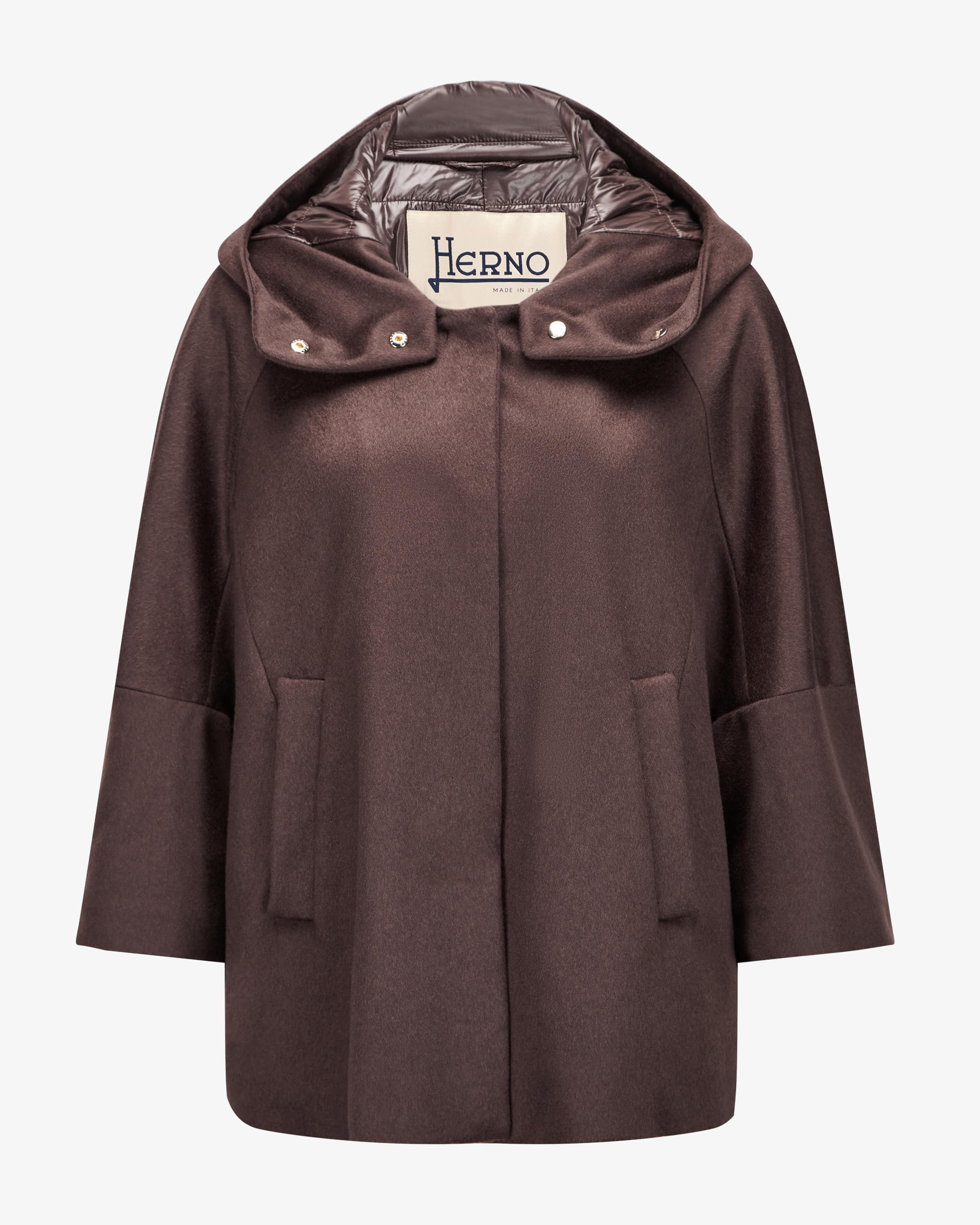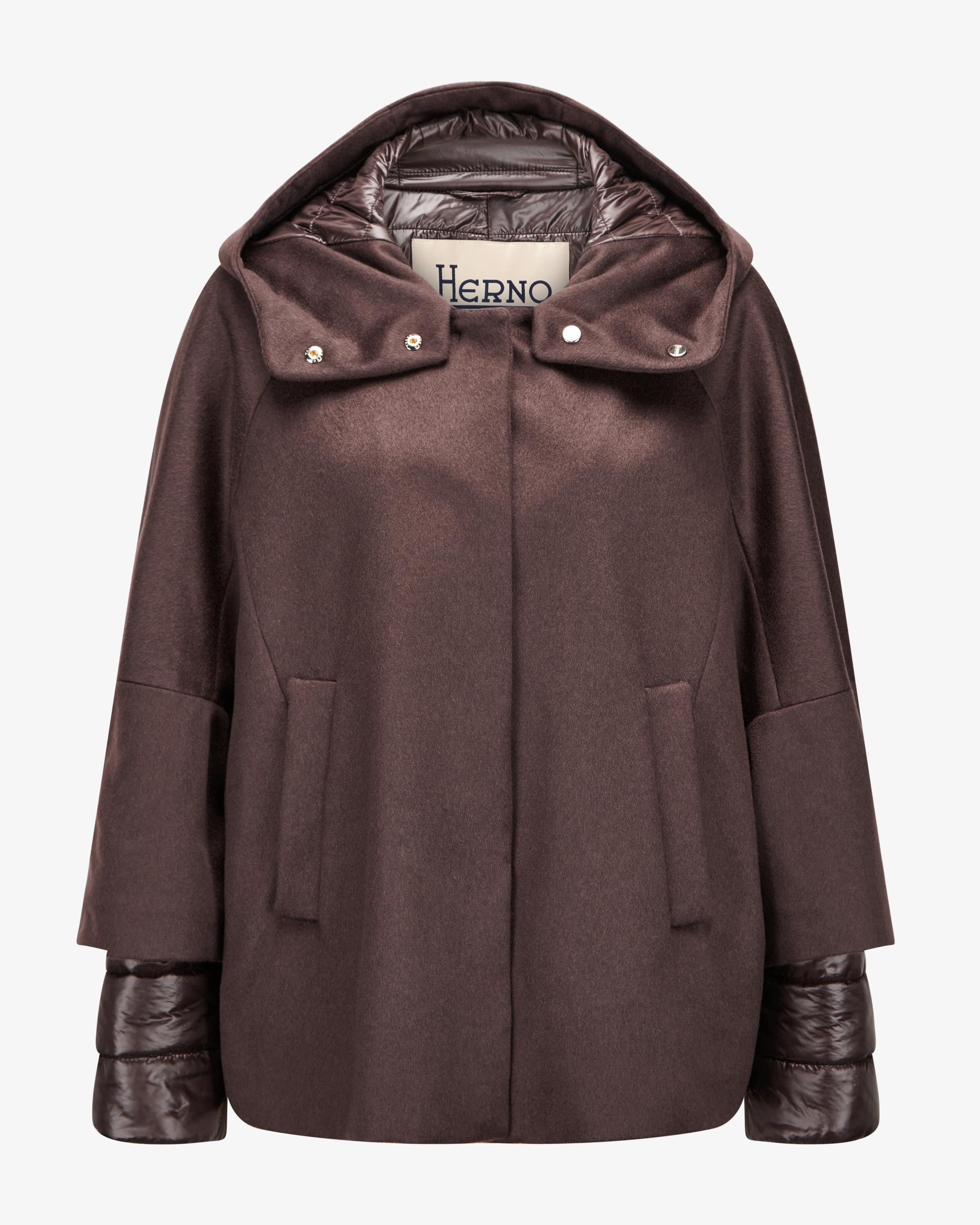 Cashmere-Jacke für Damen von Herno in Braun. Das Modell überzeugt dank der hochwertigen Cashmere-Qualität mit einer besonders weichen Haptik, während die raffinierte Schnittführung in Cape-Aufmachung mit abtrennbaren Steppärmeln einen stilvollen wie auch praktischen Begleiter für die Übergangszeit schafft.