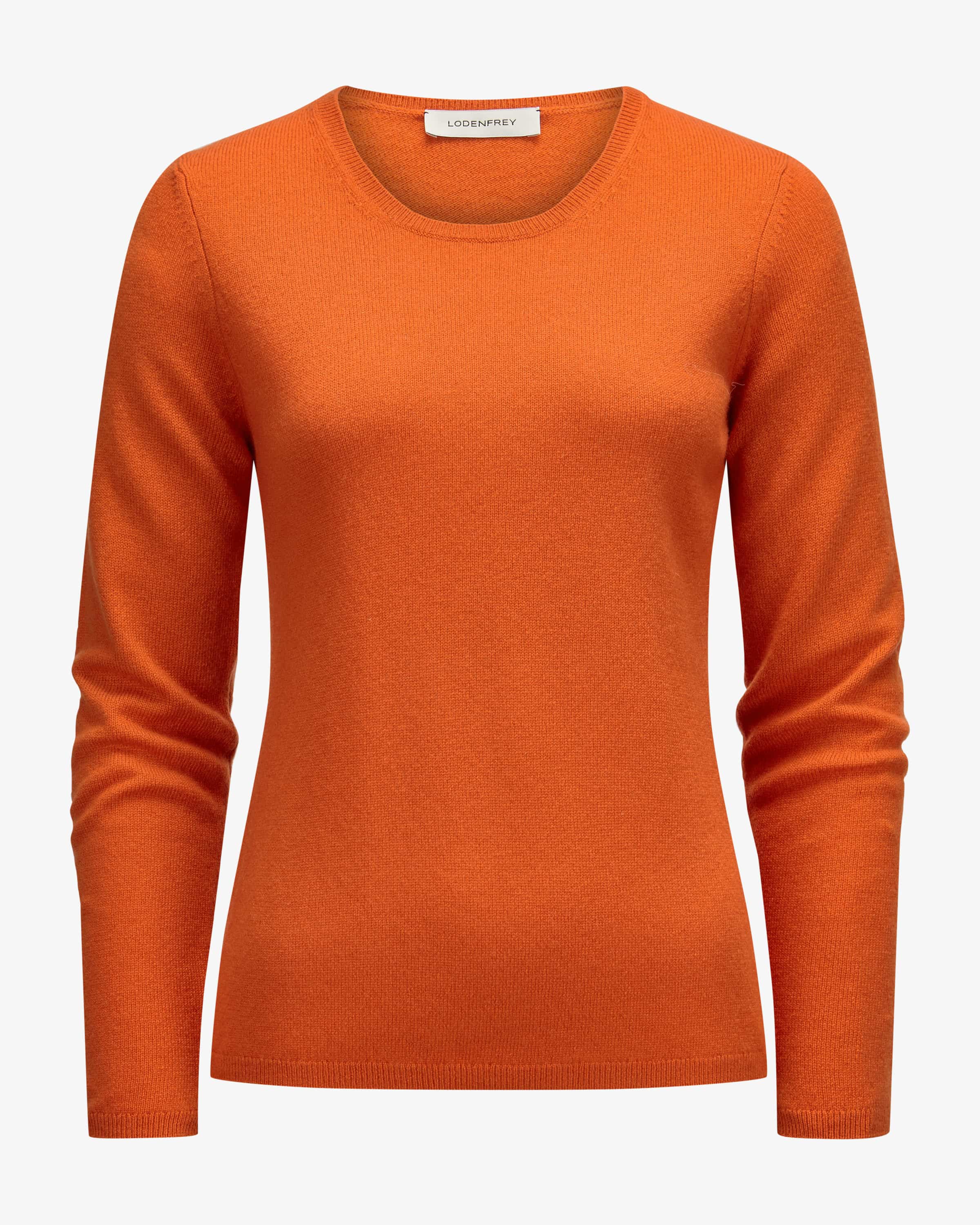 Cashmere-Pullover für Damen von LODENFREY in Orange. Die hochwertige Cashmere- Qualität besticht mit einem besonders weichen Griff, während das schlichte Design ein vielseitiges Basic für moderne Country-Looks kreiert.