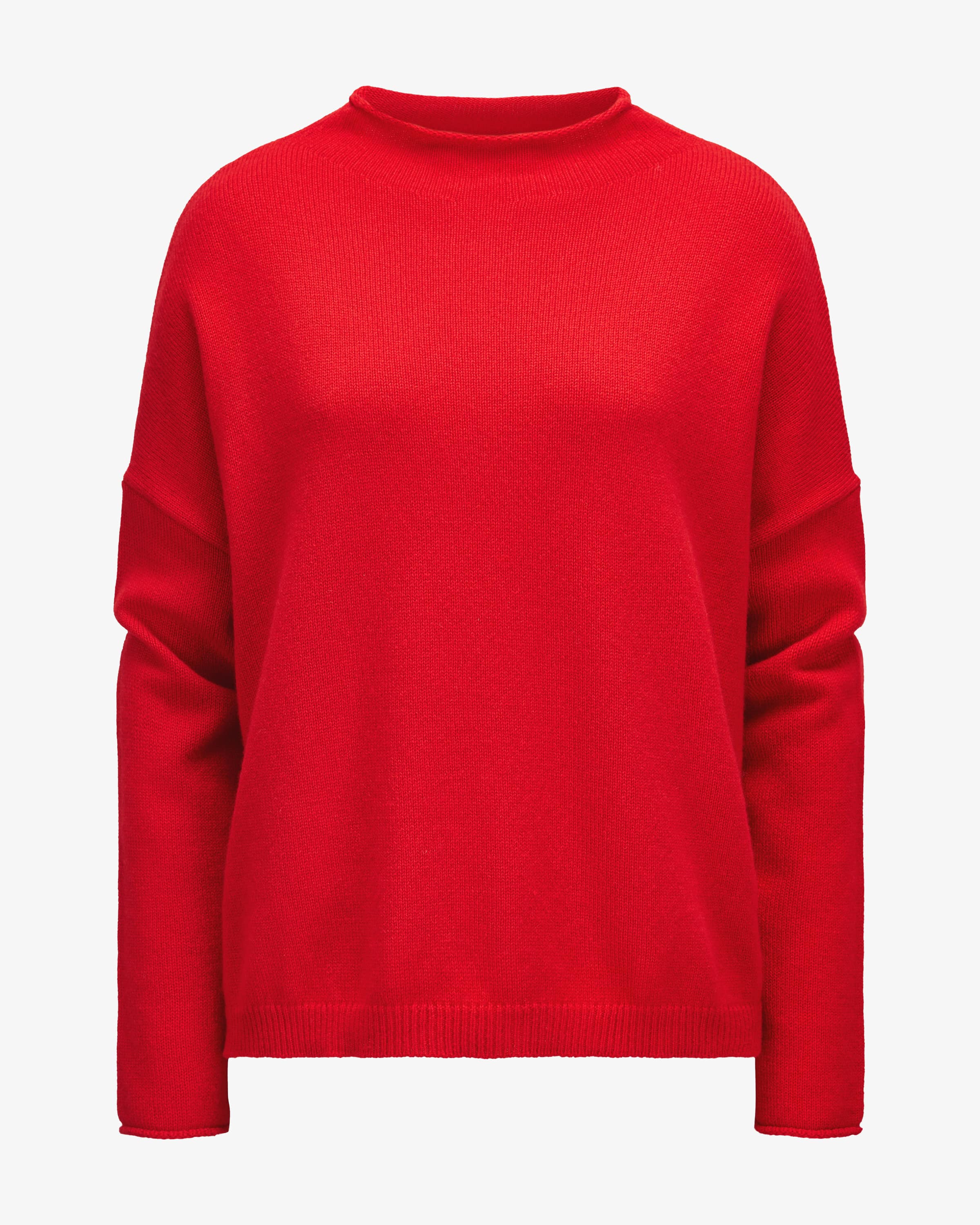 Cashmere-Pullover für Damen von LODENFREY in Rot. Das Casual Modell präsentiert sich in Oversize Aufmachung, während die hochwertige Cashmere- Qualität Wohlfühl-Momente versprechen. Zudem runden die Rollkanten das Gesamtbild harmonisch ab.