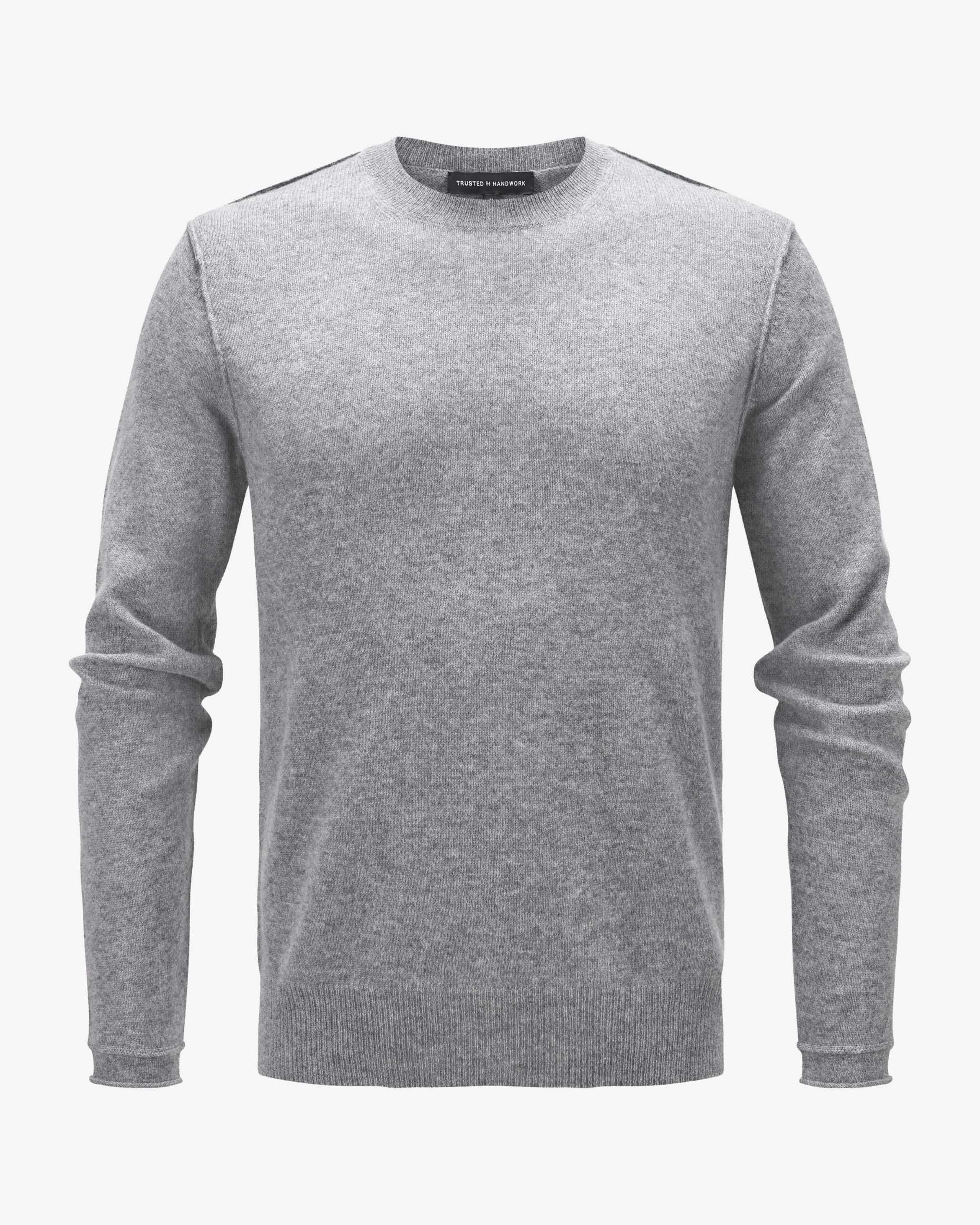 Cashmere-Pullover für Herren von Trusted Handwork in Grau Melange. Mit Liebe und Leidenschaft designt das Label nachhaltig produzierte, handgefertigte Kleidung. Dieses Modell präsentiert sich mit besonders weicher, hochwertiger Cashmere- Qualität und leichter Strick-Haptik, während die Inside-Out-Nähte sowie der Rollsaum an den Ärmelenden legere Akzente setzen.