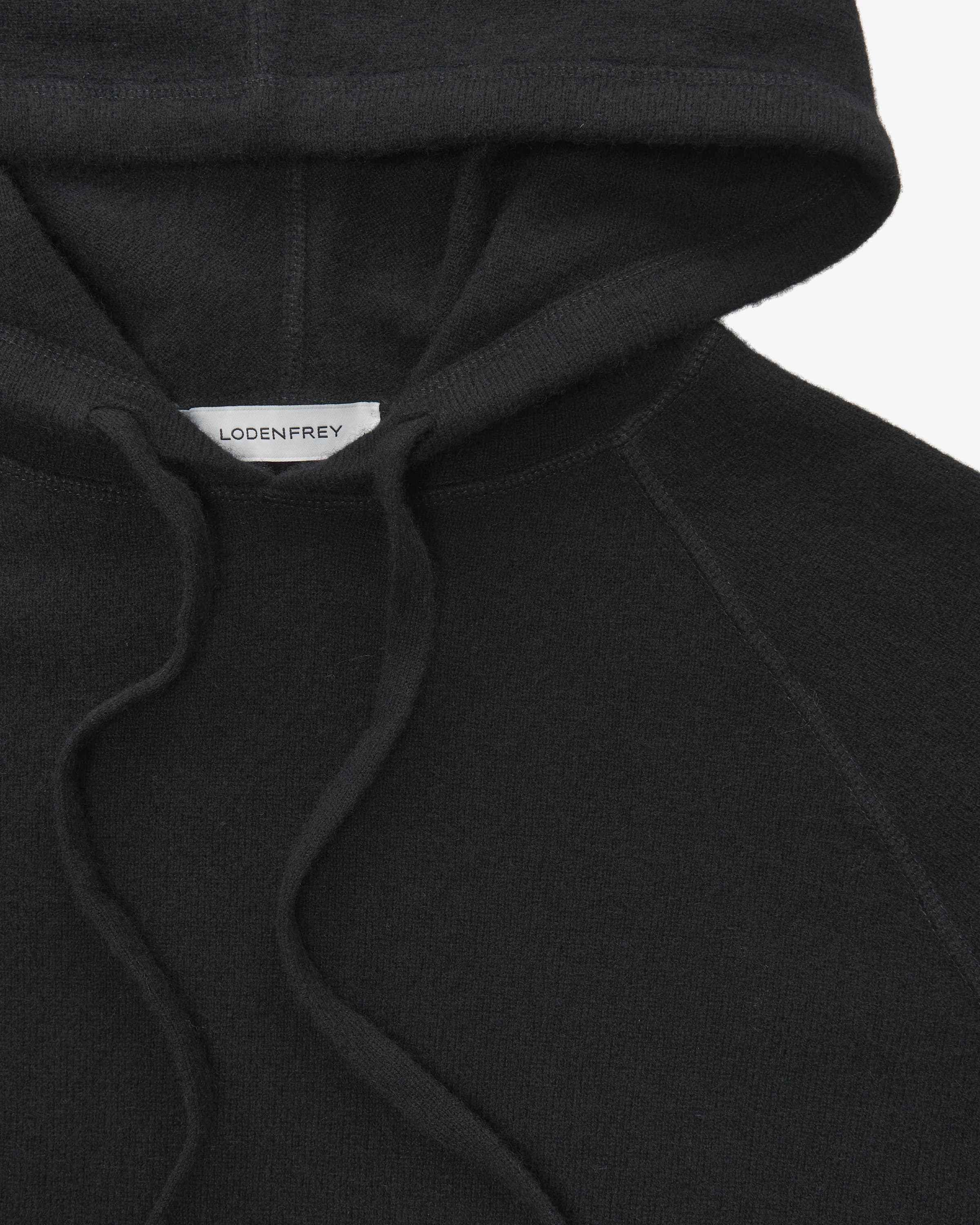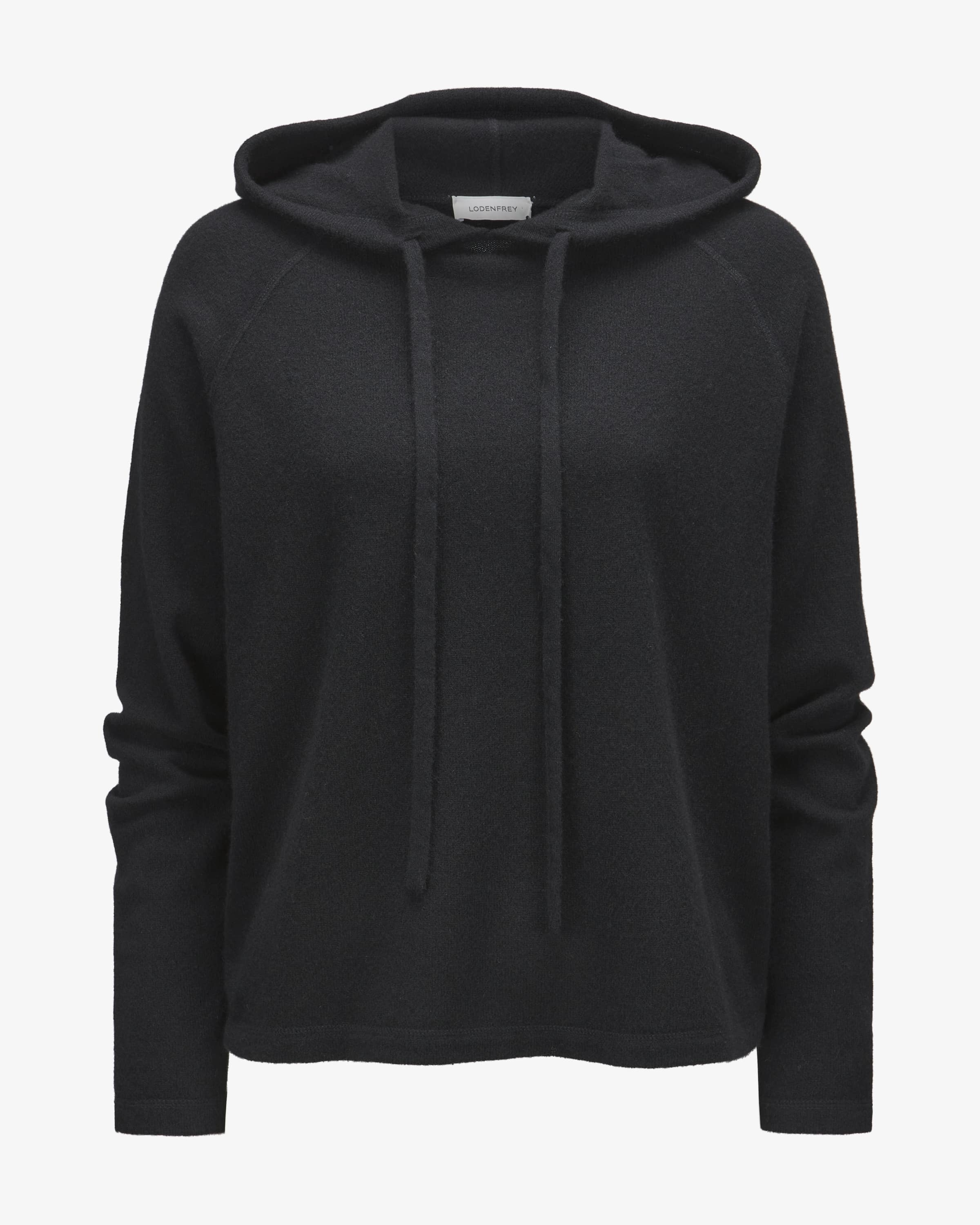 Cashmere-Pullover für Damen von LODENFREY in Schwarz. Das Modell aus feiner Cashmere-Wolle avanciert durch die weiche Haptik und die weite Schnittführung in Hoodie-Aufmachung zu einem legeren Casual-Favoriten.
