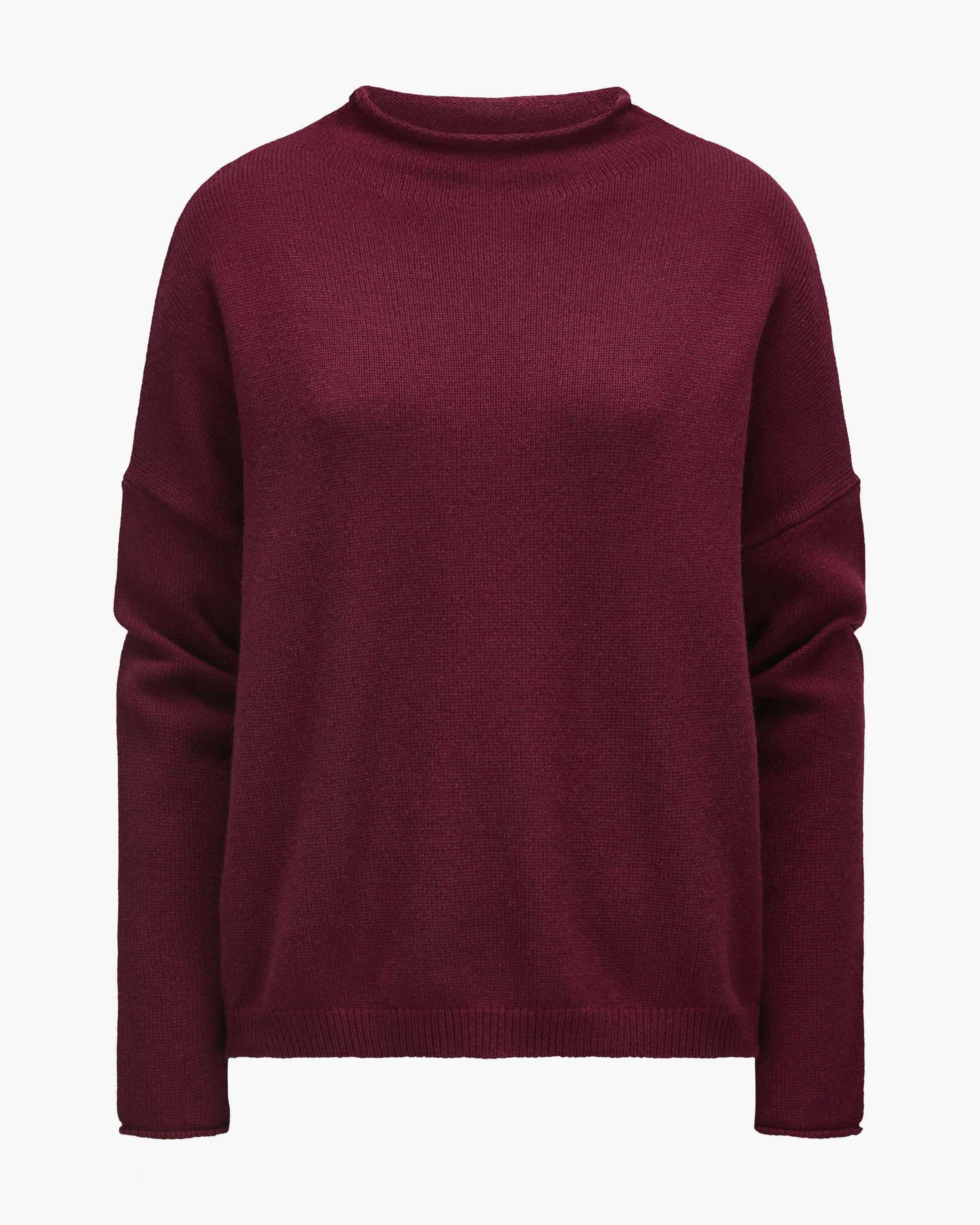 Cashmere-Pullover für Damen von LODENFREY in Bordeaux. Das Casual Modell präsentiert sich in Oversize Aufmachung, während die hochwertige Cashmere- Qualität Wohlfühl-Momente versprechen. Zudem runden die Rollkanten das Gesamtbild harmonisch ab.