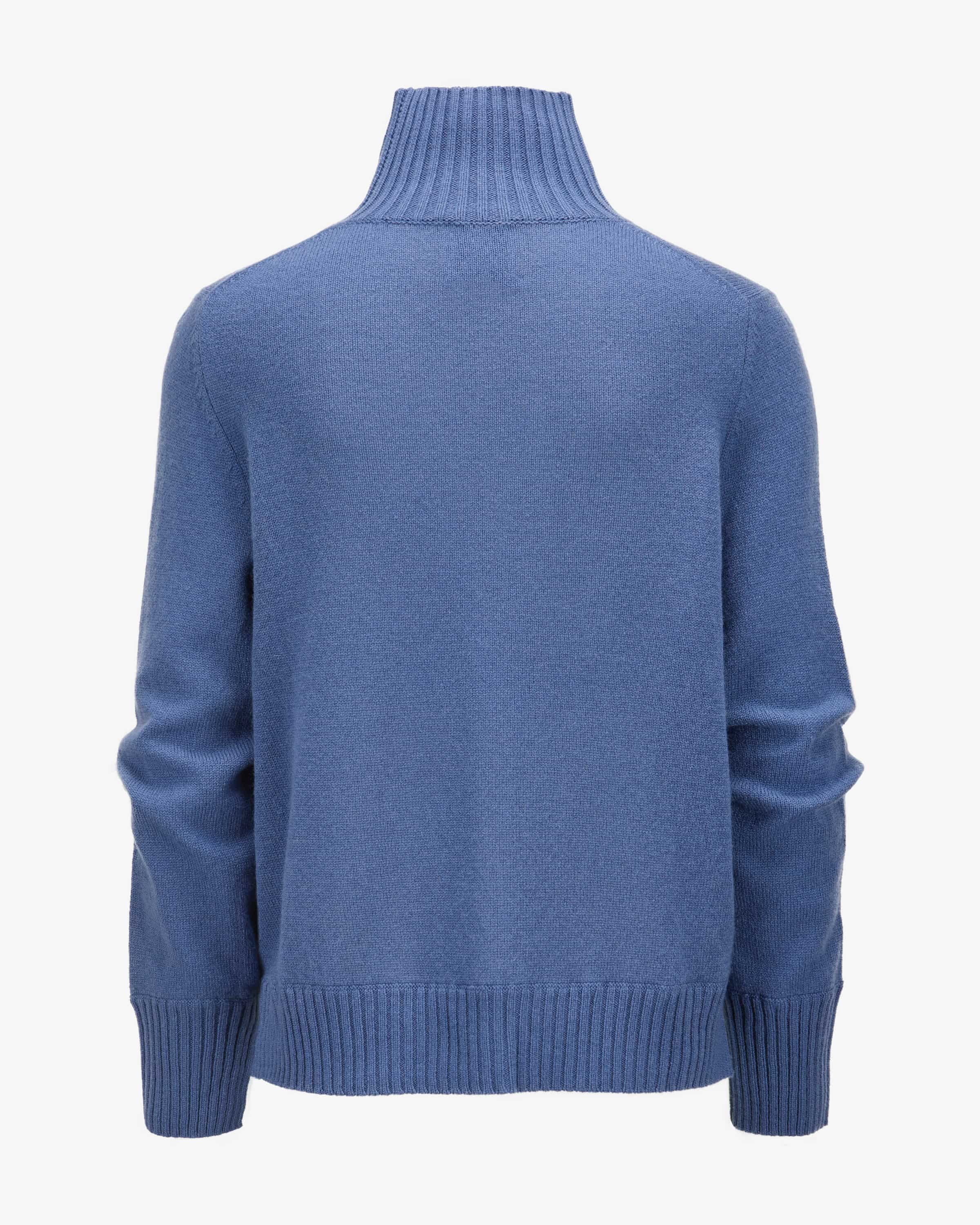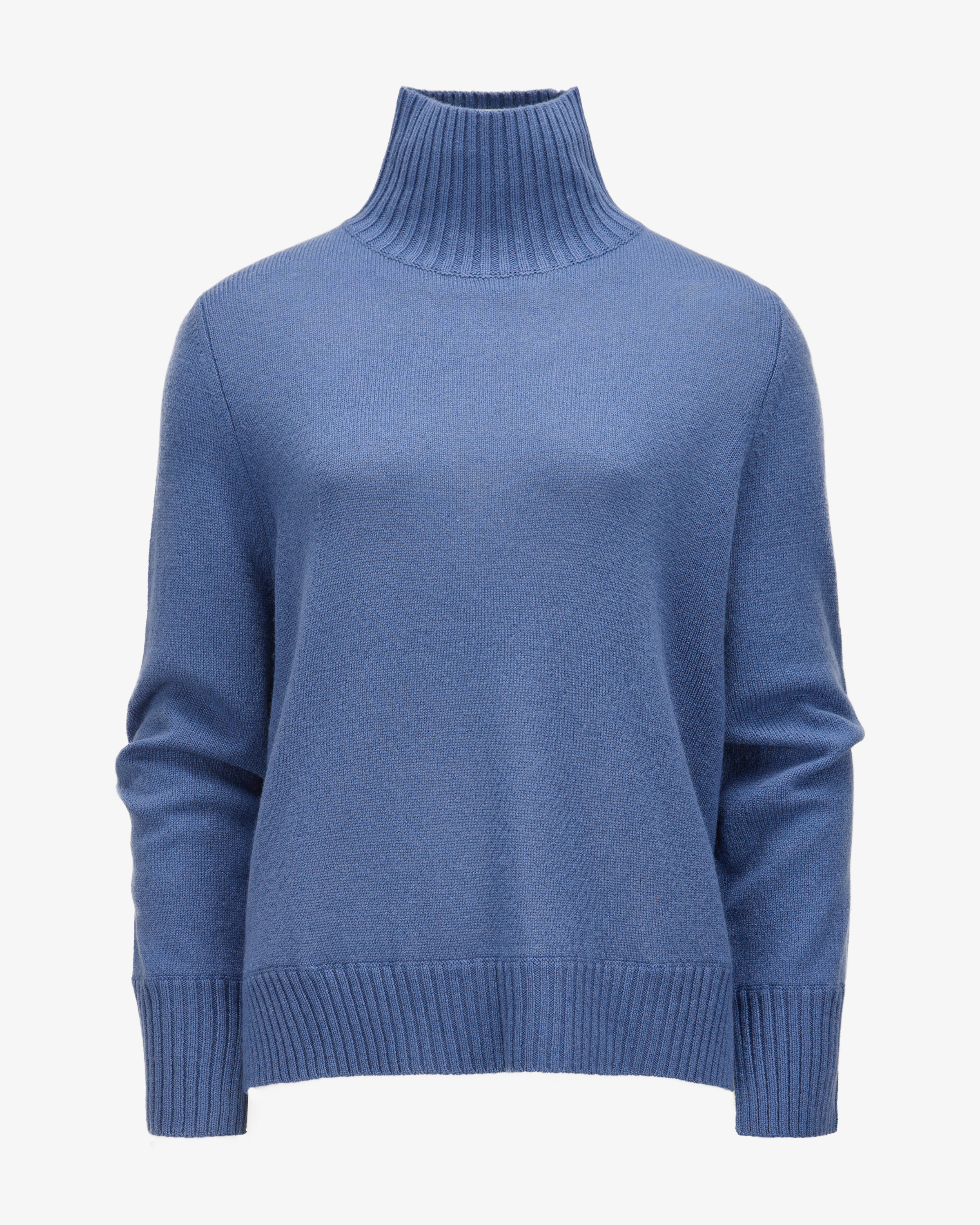 Cashmere-Stehkragenpullover für Damen von Allude in Rauchblau. Das Münchner Label wurde 1993 von Andrea Karg gegründet und ist bekannt für luxuriöse Strickmode aus edlem Cashmere. Auch dieses Modell überzeugt mit edler Cashmere- Qualität in feiner Strick-Aufmachung, während die Schlitze den femininen Look gekonnt ergänzen.