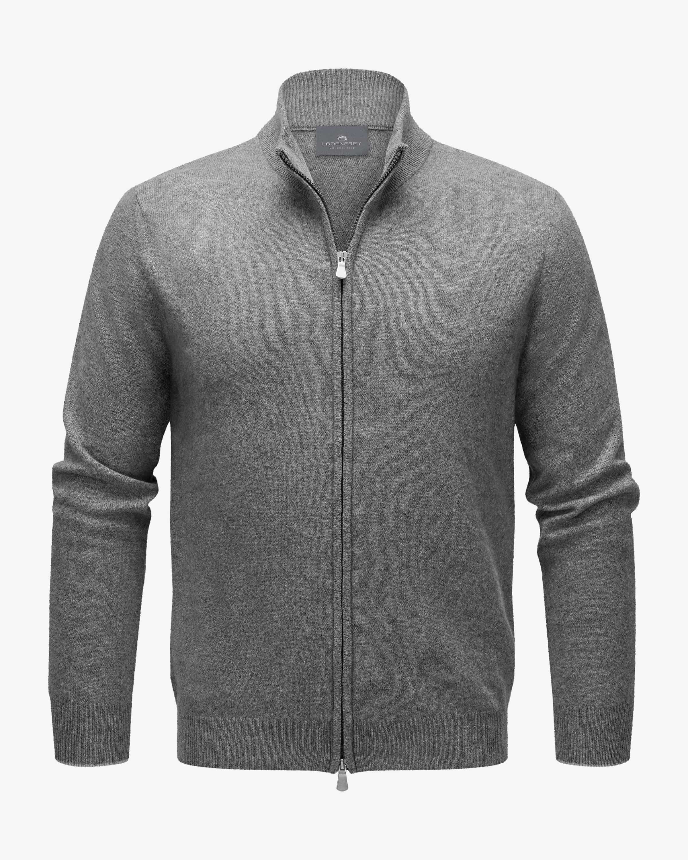 Cashmere-Strickjacke für Herren von LODENFREY in Hellgrau. Dank der Verwendung von hochwertigem Cashmere überzeugt das Modell mit feiner, weicher Strick- Qualität, während der klassische Stehkragen einen besonderen Favoriten für Ihre Casual-Garderobe schafft.