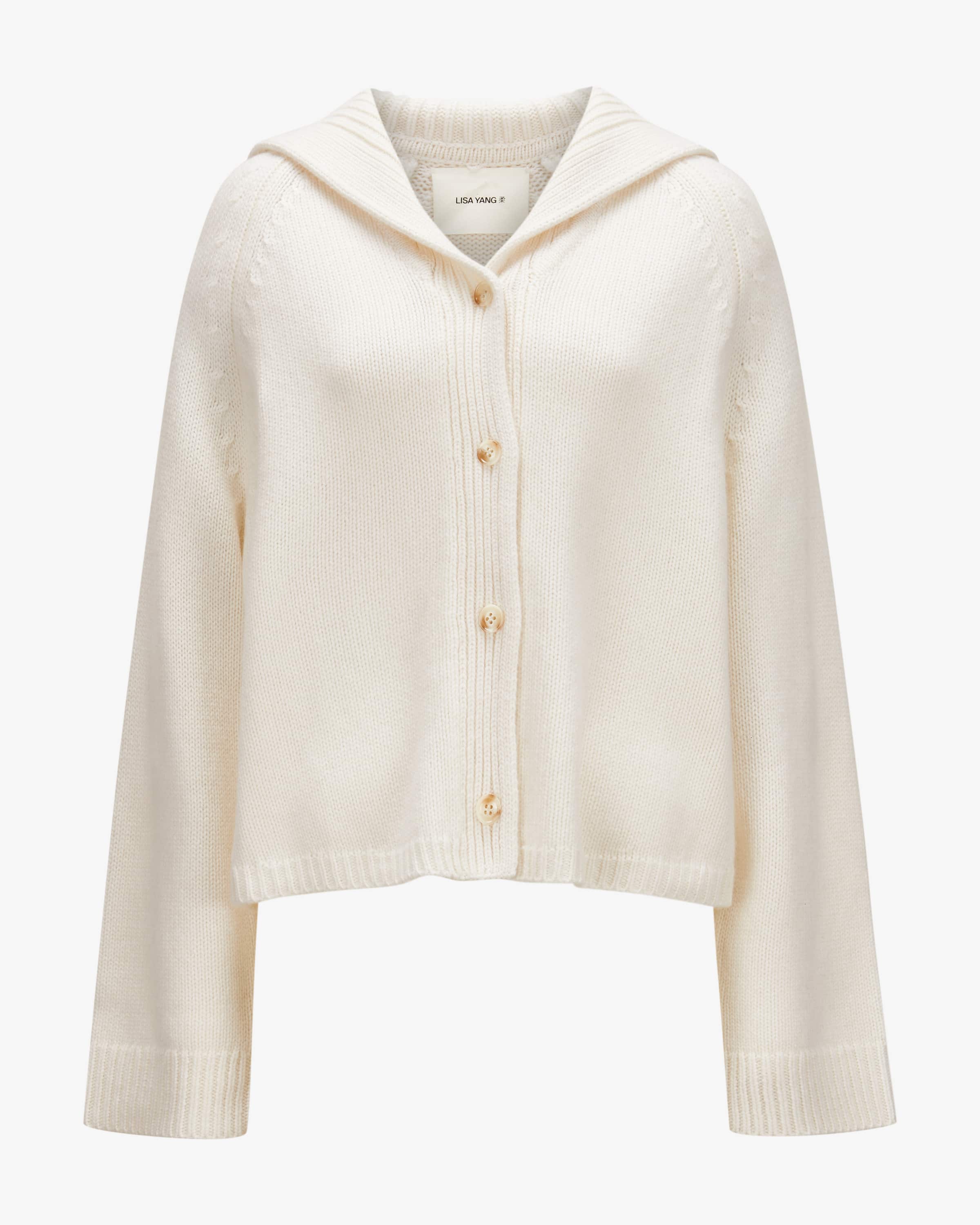 Cashmere-Strickjacke Mora für Damen von Lisa Yang in Creme. Seit 2014 begeistert das skandinavische Label Lisa Yang mit zeitlos-eleganter Damenmode aus feinstem Cashmere, gemacht für die moderne und stilsichere Frau, die sich in ihrer Kleidung wohlfühlen möchte. Auch dieses Modell besticht mit weicher Cashmere-Qualität, die angenehmen Tragekomfort garantiert. Zugleich kreiert das legere Oversize-Design mit stilvollem Matrosenkragen einen Strick- Favoriten mit dem gewissen Etwas.