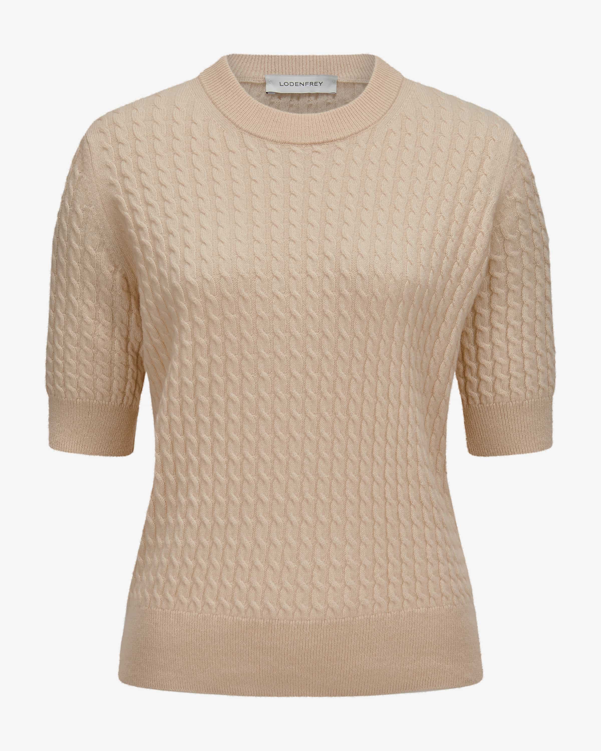 Cashmere-Strickshirt für Damen von LODENFREY in Sand. Das Modell aus feiner Cashmere-Wolle begeistert mit weicher Haptik und leichtem Tragegefühl, während das Zopfmuster einen modernen Strick-Begleiter mit Country-Flair kreiert.