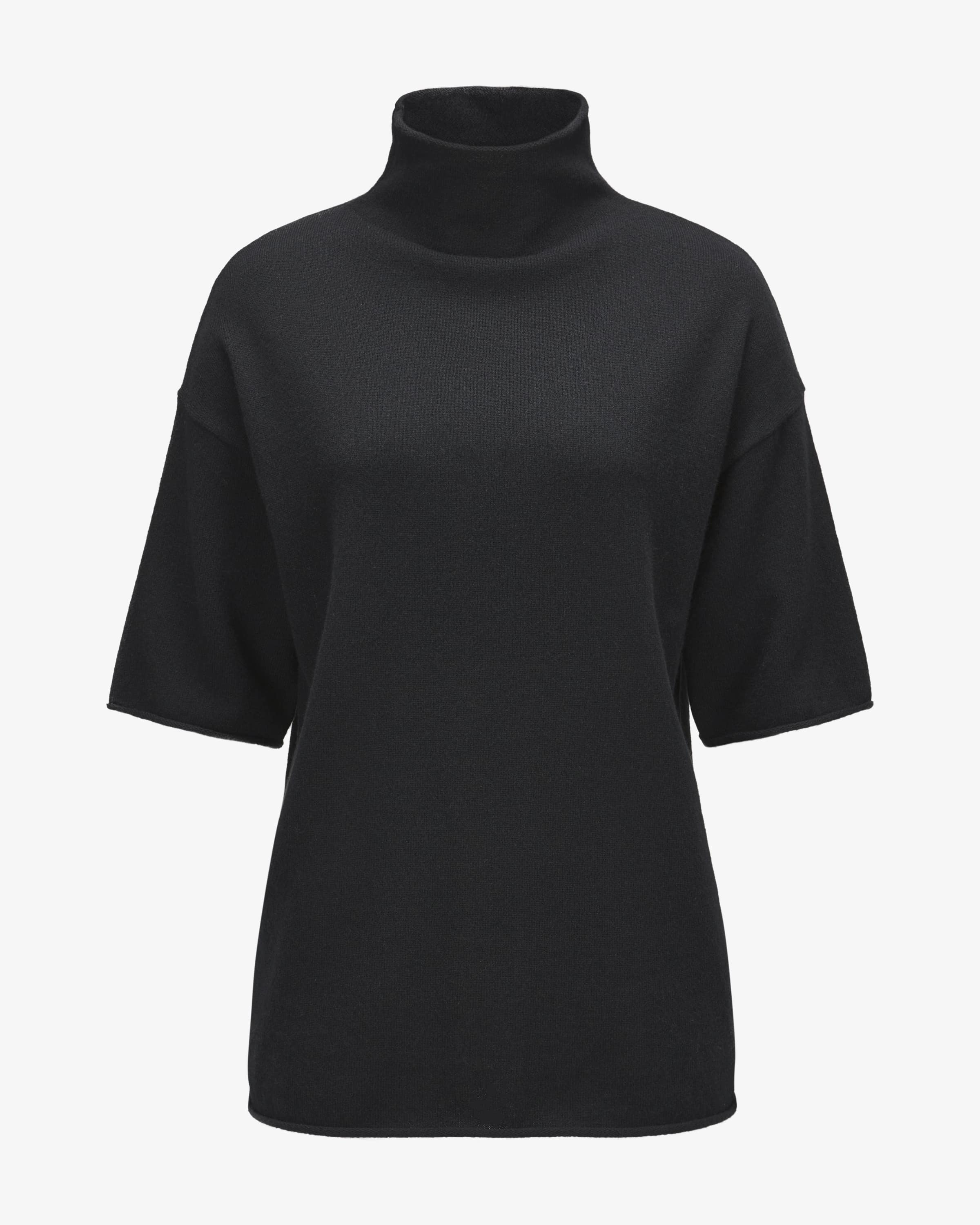Cashmere-Strickshirt für Damen von LODENFREY in Schwarz. Das Modell aus feiner Cashmere-Wolle avanciert durch die weiche Haptik und die legere Schnittführung mit Rollsaum zu einem komfortablen Casual-Favoriten mit modernem Country- Charakter.
