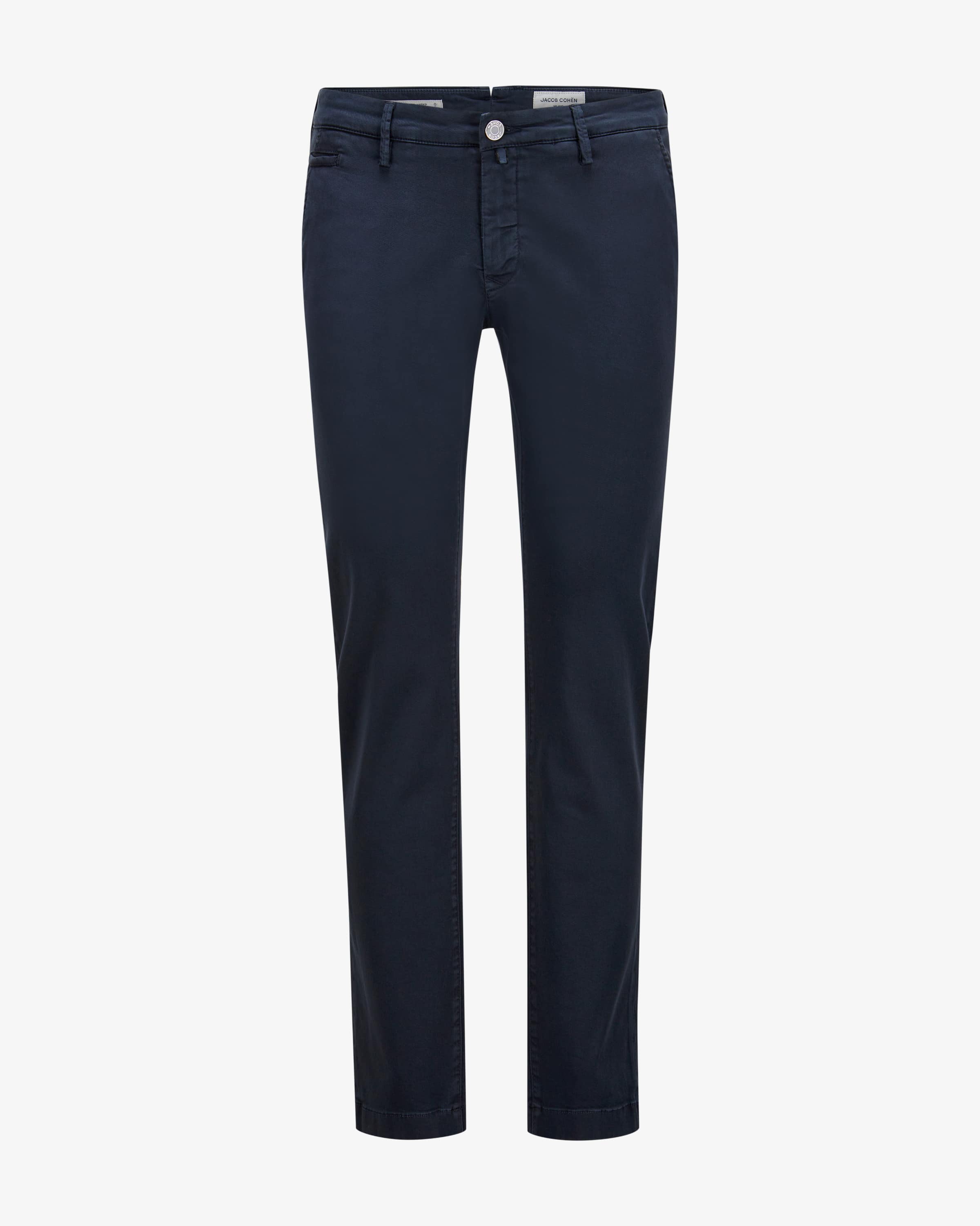 Chino Bobby Slim Fit für Herren von Jacob Cohen in Navy. Dank der Verwendung von organischen Farben und hochwertiger Baumwolle wird höchster Qualitäts-Standard garantiert. Das Modell besticht mit leicht elastischer Baumwoll-Qualität sowie dem klassischen Design und avanciert so zum stilsicheren Begleiter für moderne Casual- oder Business-Looks.