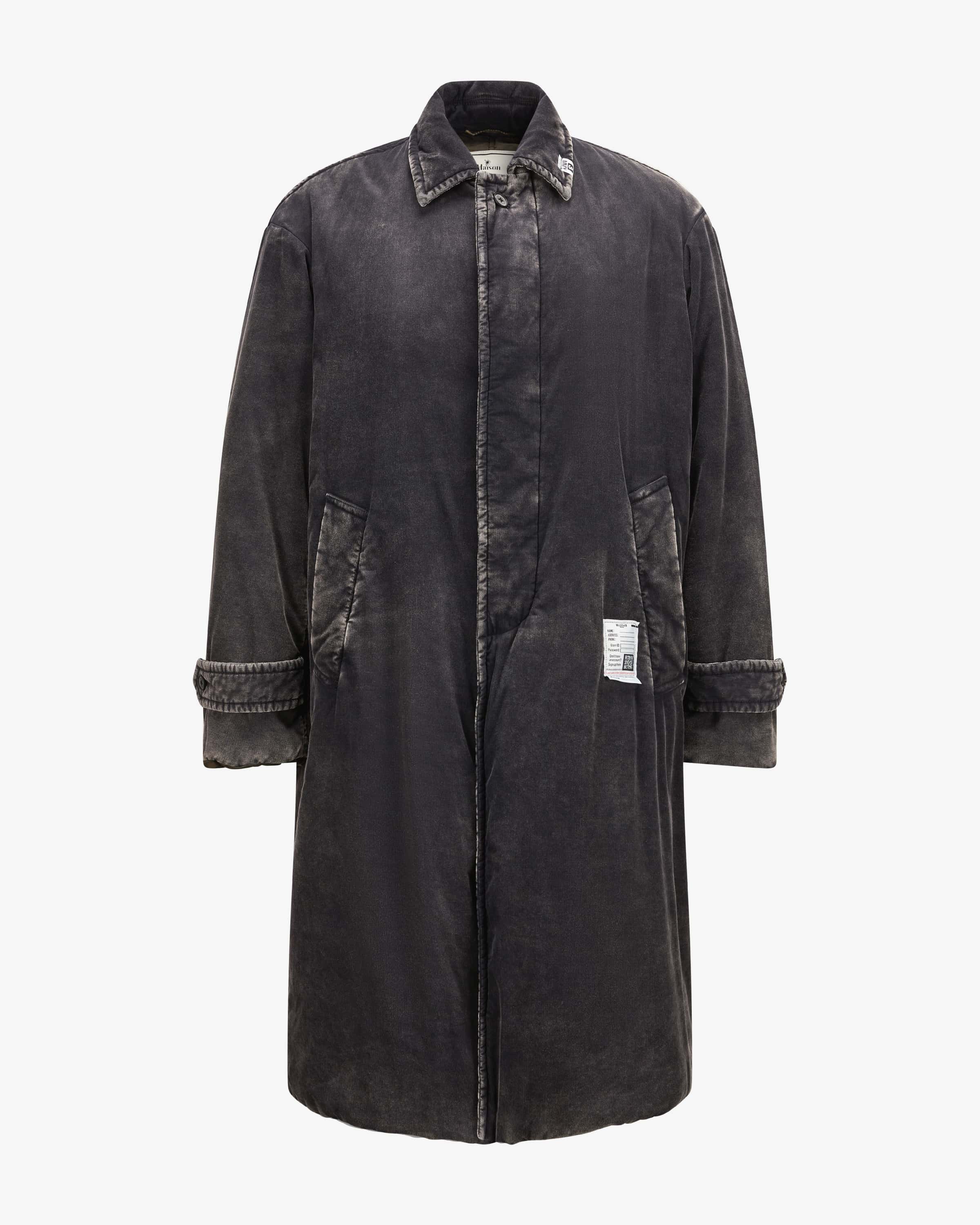 Cord-Mantel für Herren von Mihara Yasuhiro in Anthrazit. Der japanische Designer ist bekannt für Avantgarde-Footwear & dekonstruierte Streetwear mit skulpturalen Elementen. Das schlicht gehaltene Modell überzeugt durch die anmutende Trenchcoat-Aufmachung in changierendem Cord, während die leichte Fütterung einen Casual Alltagsbegleiter für kühle Tage schafft.