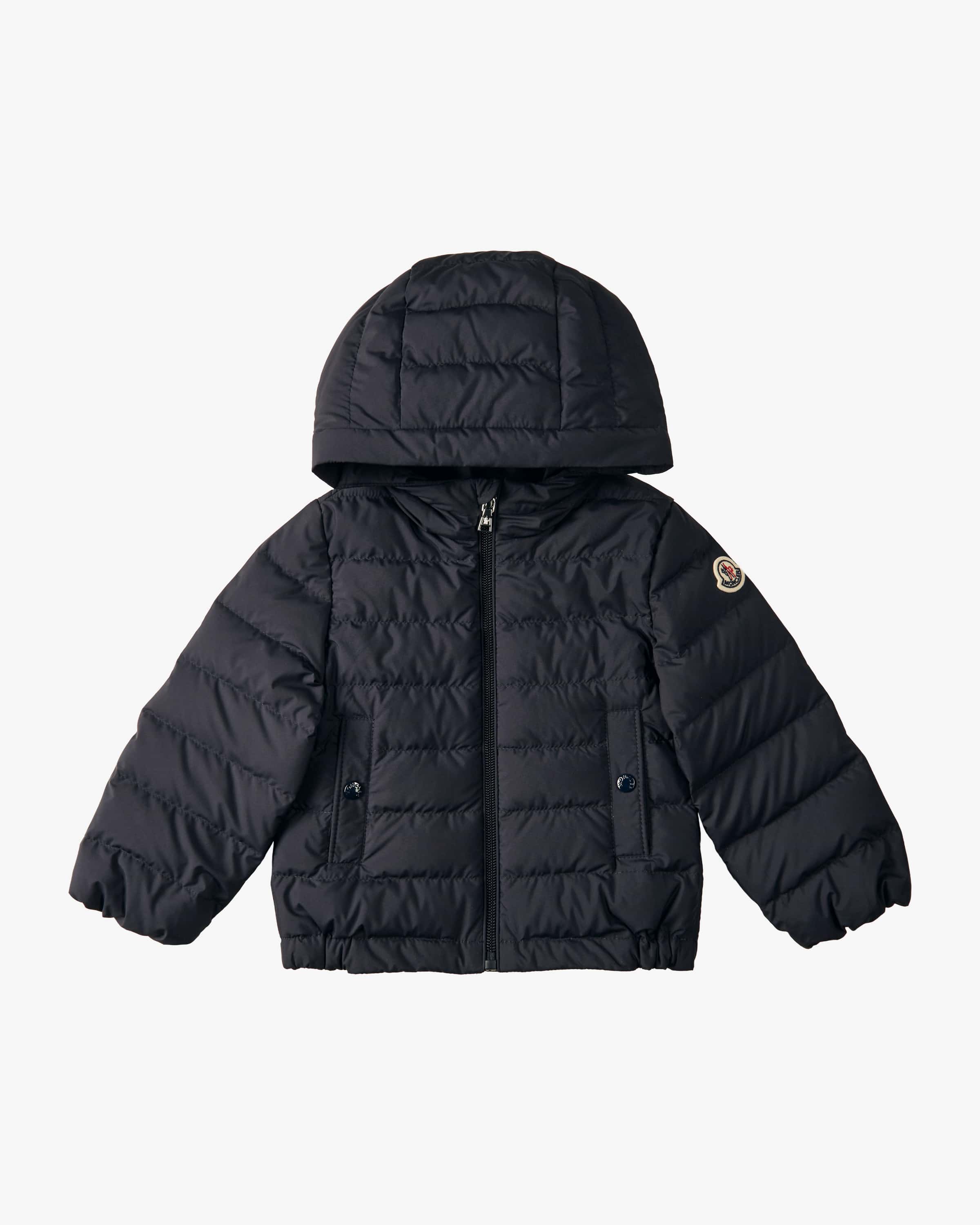 Daunenjacke Dilar für Babys von Moncler Enfant in Navy. Denkt man an hochwertige, warme Daunenjacken, kommt einem unweigerlich das italienische Traditionslabel Moncler in den Sinn. Das klassisch geschnittene Modell überzeugt mit leichter Daunen-Feder-Füllung, welche für warme Tragemomente sorgt, während die elastischen Säume und Taschen für sportive Akzente sorgen. Das Steppdesign und das labeltypische Emblem runden das Gesamtbild harmonisch ab.