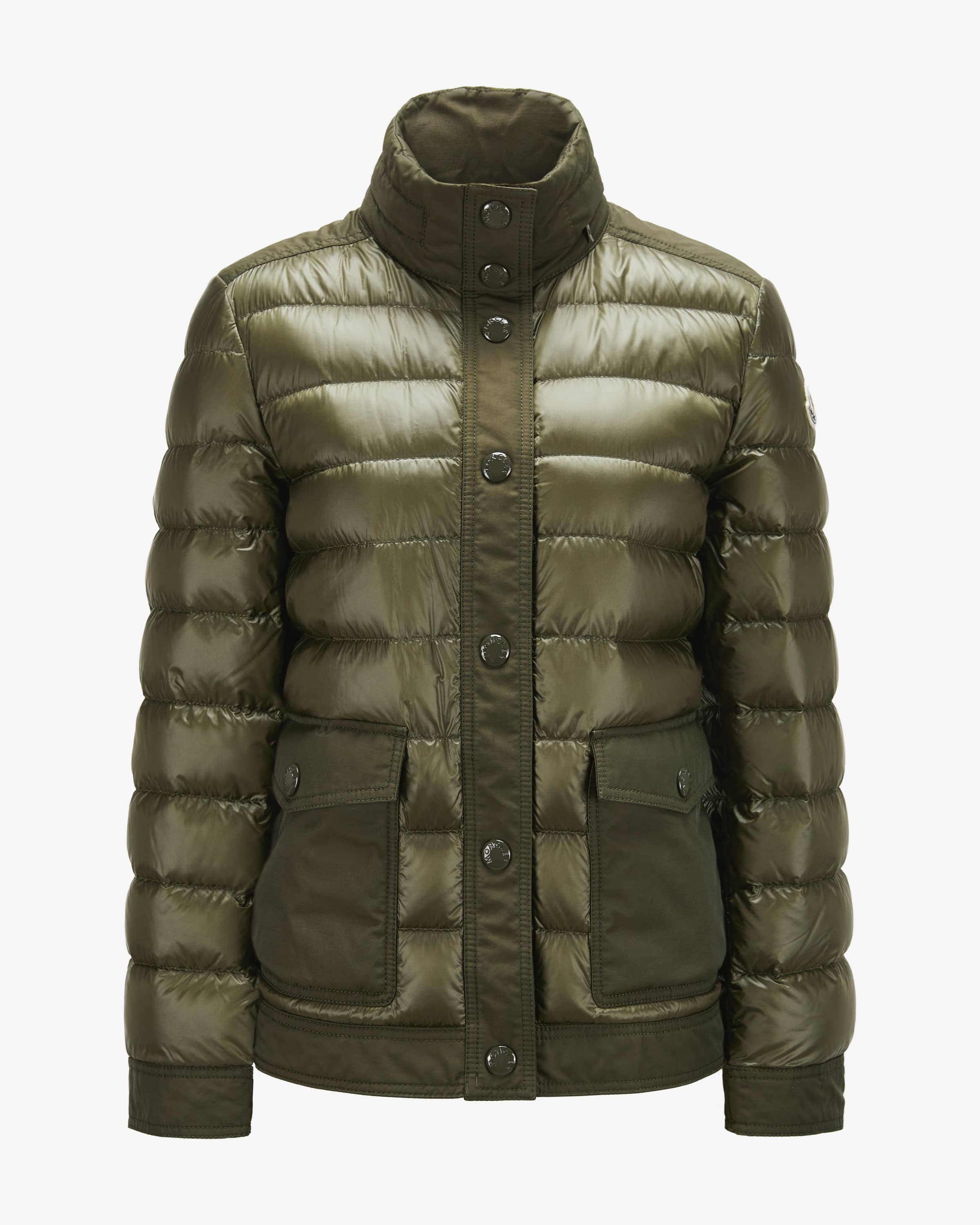 Daunenjacke Origian für Damen von Moncler in Oliv. Denkt man an hochwertige, warme Daunenjacken, kommt einem unweigerlich das italienische Traditionslabel Moncler in den Sinn. Auch dieses Modell präsentiert sich in klassischer Stepp-Aufmachung und hochwertiger Daunen-Feder-Füllung, während die Logo-Details den letzten Schliff verleihen.