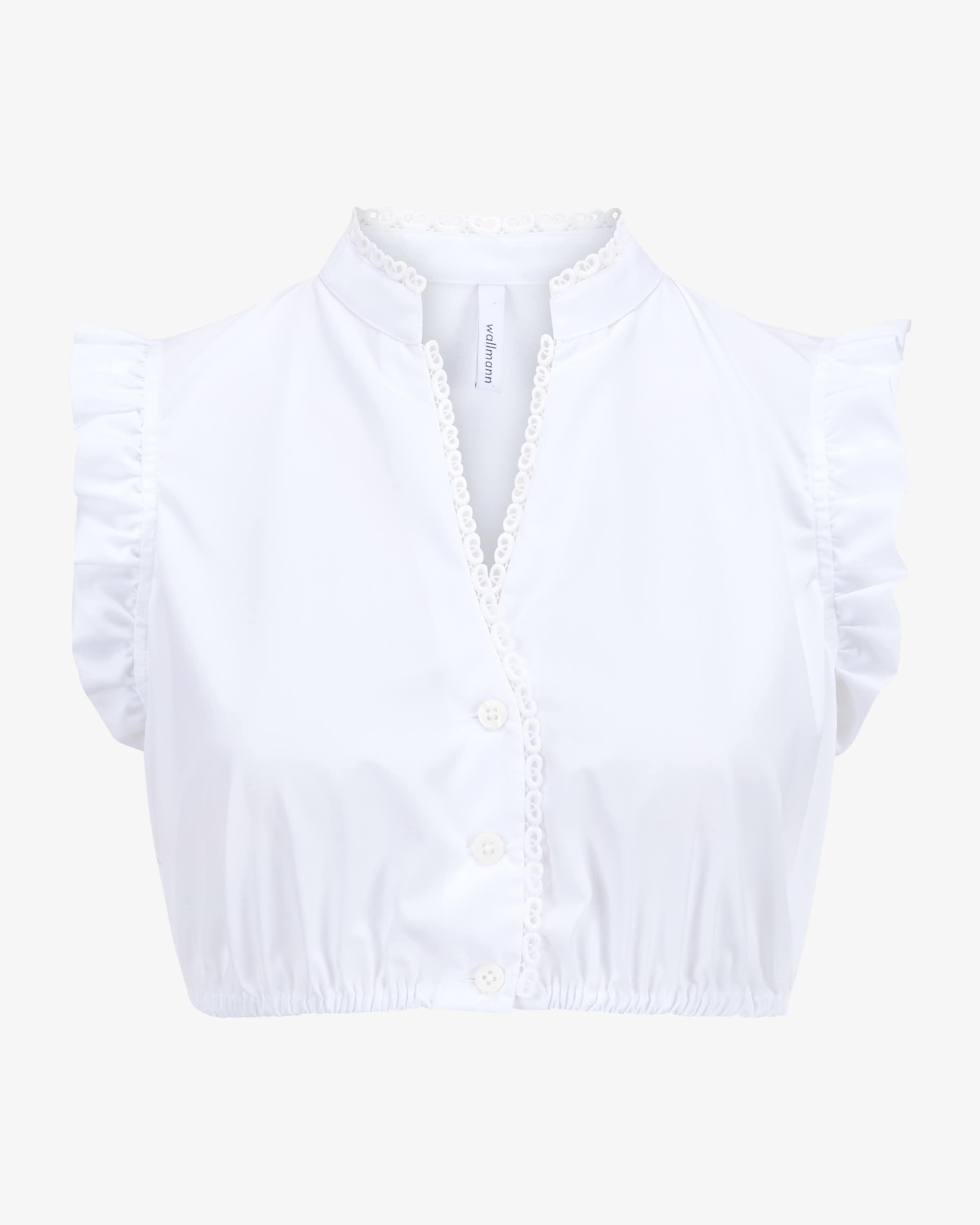 Dirndlbluse für Damen von LODENFREY München 1842 in Weiß. Jahrelange Erfahrung, hochwertige Verarbeitung und viel Liebe zum Detail zeichnen die exklusiven Kreationen aus unserem Hause aus. Dieses Modell überzeugt in hochwertiger Baumwoll-Qualität, während die Brezen-Borte und Rüschen-Details einen traditionellen Begleiter schaffen.
