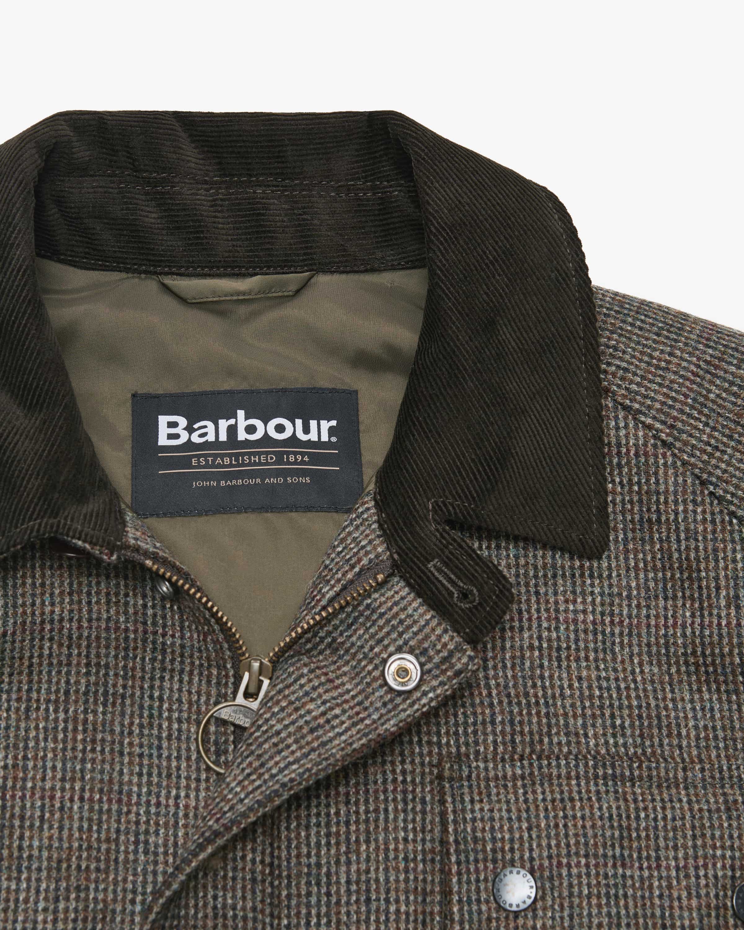Editor Wolljacke für Herren von Barbour in Dunkeloliv, Bordeaux und Braun. Das