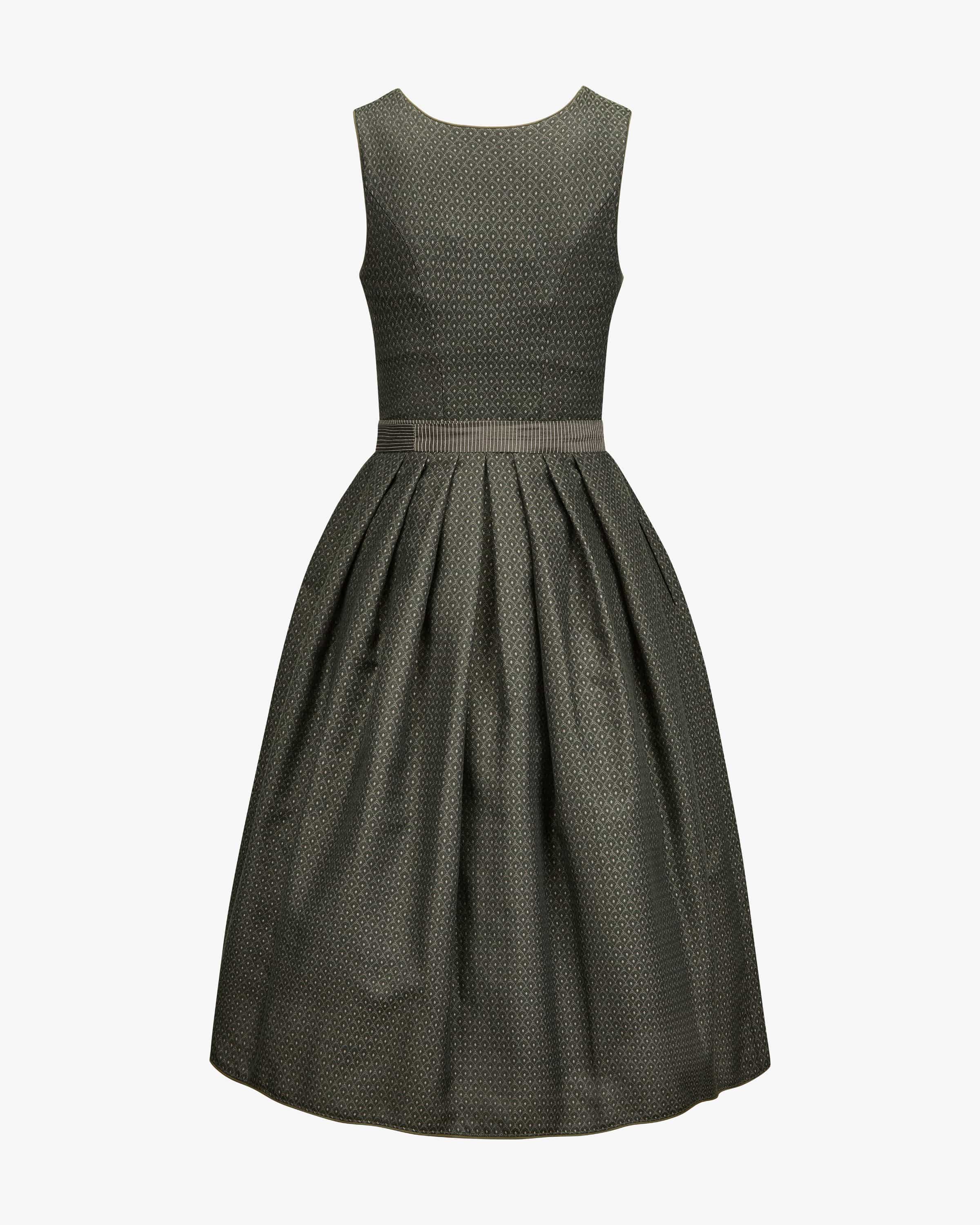 Elina Dirndl lang mit Schürze für Damen von Alissa by Kinga Mathe in Dunkelgrün, Mauve und Oliv. Mit Liebe zum Detail entwirft das deutsche Label aufwendige Trachten- Kreationen mit dem gewissen Etwas und überzeugt mit erlesener Stoffauswahl sowie kreative Designs. Das Modell überzeugt mit Allover-Jaquard- Dessin, während der Unterrock mit Volants-Saum eine feminine Passform verleiht. Die gestreifte und zugleich changierende Schürze komplettiert den traditionellen Look harmonisch.