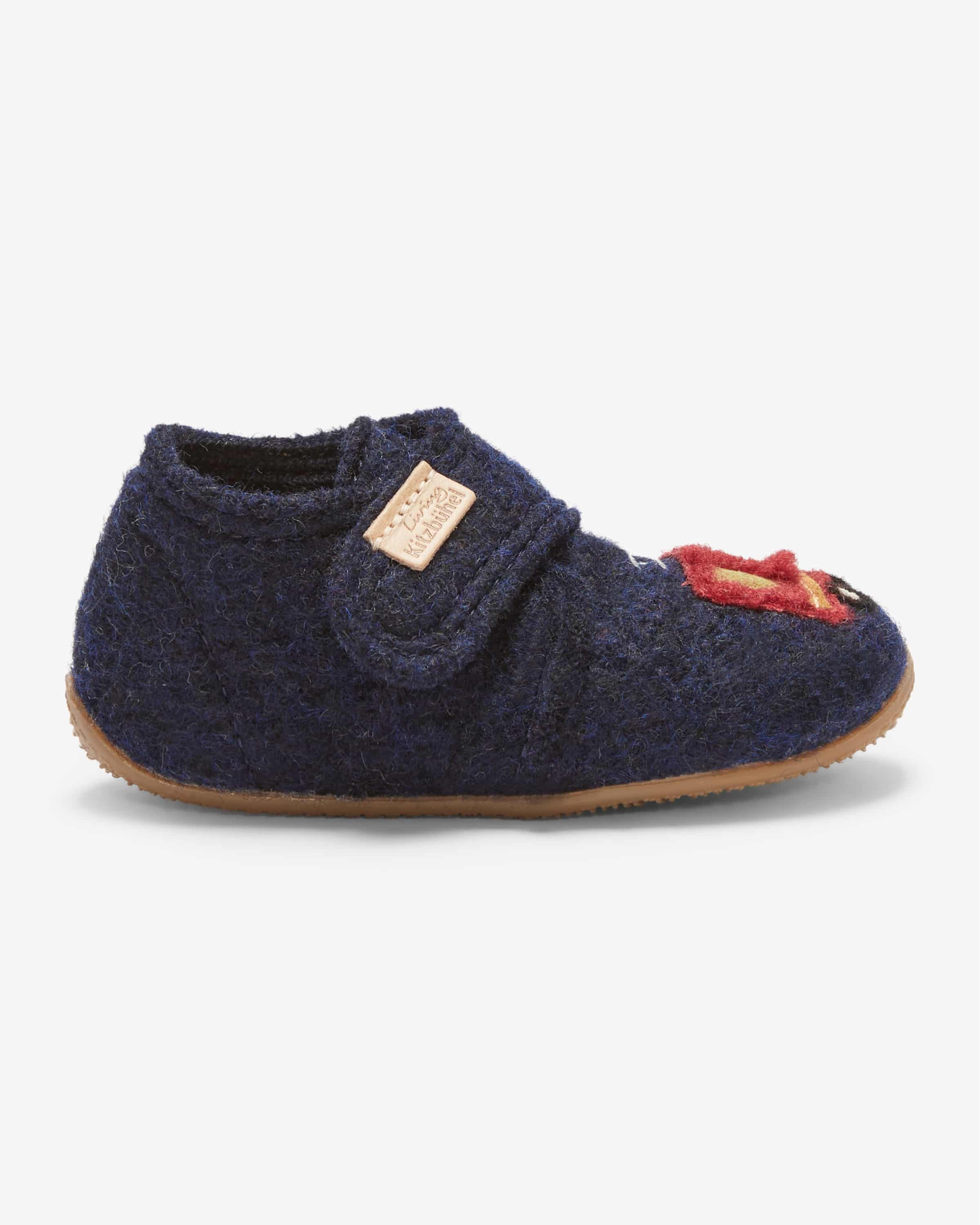 Fredi Hausschuhe für Babys von Living Kitzbühl in Navy. Dank der weichen Haptik präsentiert sich das Modell als kuscheliger Favorit für Zuhause, während das gestickte Feuerwehr-Motiv ein niedliches Gesamtbild kreiert.