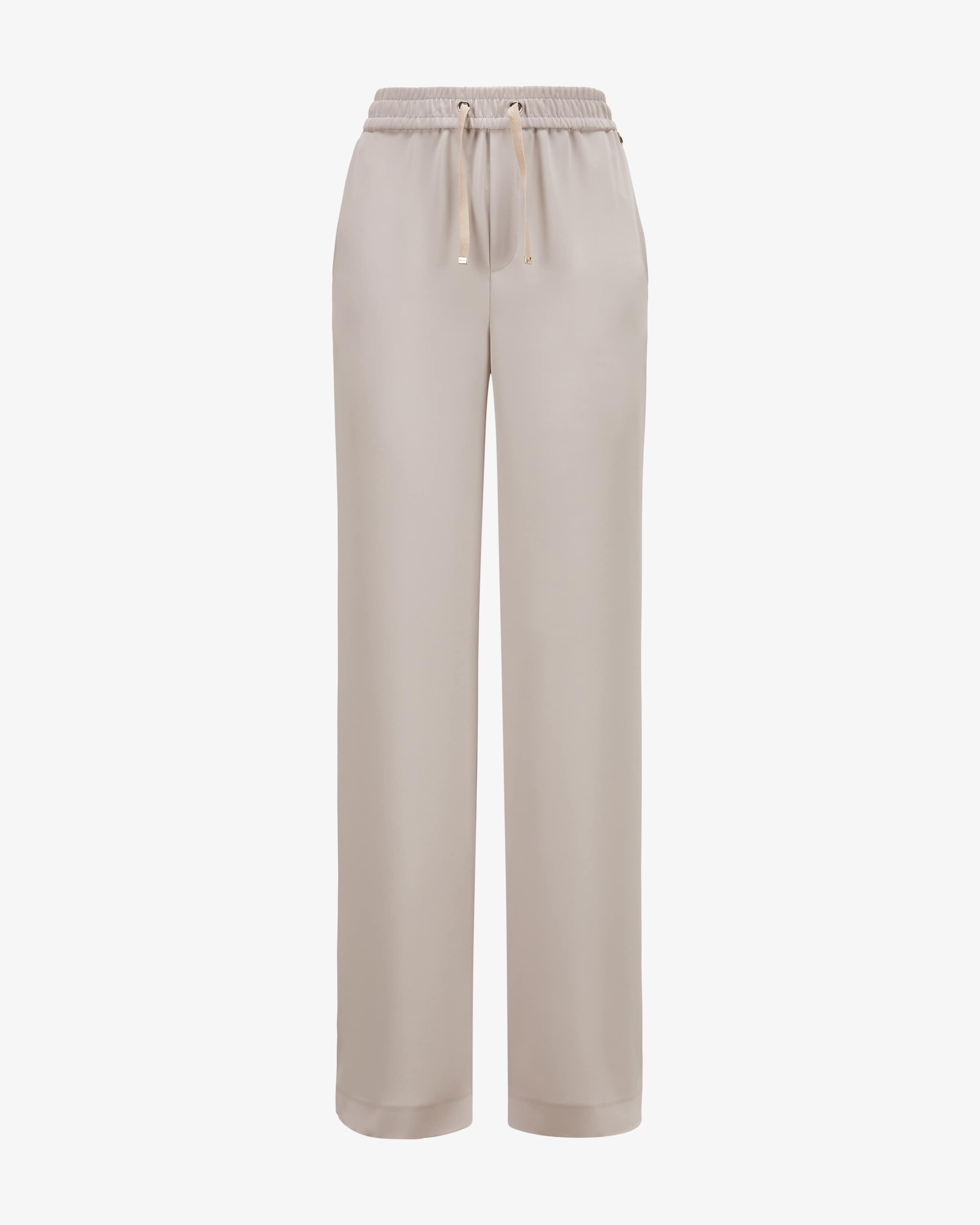 Hose für Damen von Herno in Taupe. Die italienische Marke kombiniert Funktionalität mit Luxus – insbesondere im Bereich hochwertiger Jacken und Mäntel. Auch dieses Modell in leichter Material-Qualität überzeugt dank des elastischen Bundes mit angenehmen Tragemomenten, während goldfarbene Details den Gesamtlook gekonnt abrunden.