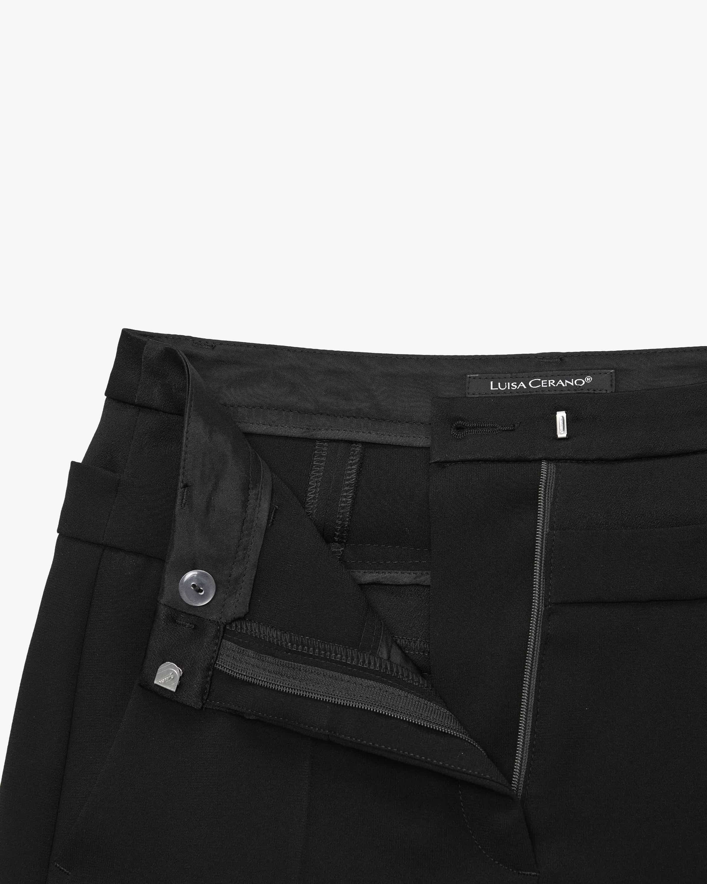 Hose für Damen von Luisa Cerano in Schwarz. Das deutsche Label mit Fokus auf elegante Alltagstauglichkeit, überzeugt mit hochwertigen Stoffen und lässiger Feminität. Auch dieses Modell in femininer Silhouette überzeugt mit Material-Mix und doppeltem Bund welcher für besonderes Augenmerks sorgt. Klassische Details runden den eleganten Begleiter gekonnt ab.