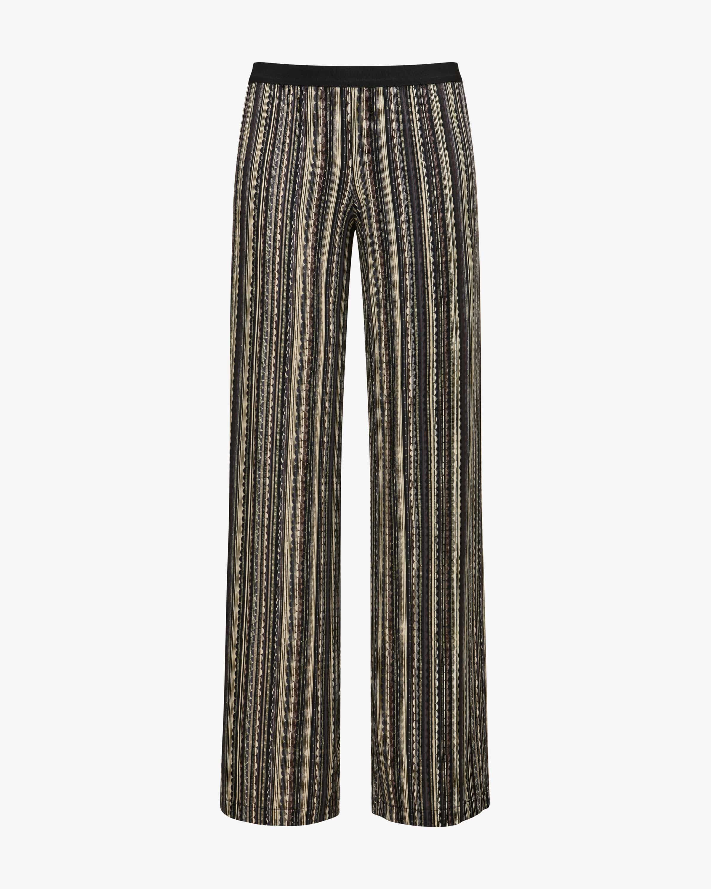 Hose Baez Sense für Damen von Siyu in Schwarz, Graublau und Creme. Das spanische Label steht für feine Jersey- und Strickmode mit geometrischen Mustern und komfortabler Passform. Auch dieses Modell mit grafischem Muster punktet als moderner Begleiter, während die leichte, elastische Material-Verarbeitung angenehmen Tragekomfort verspricht.