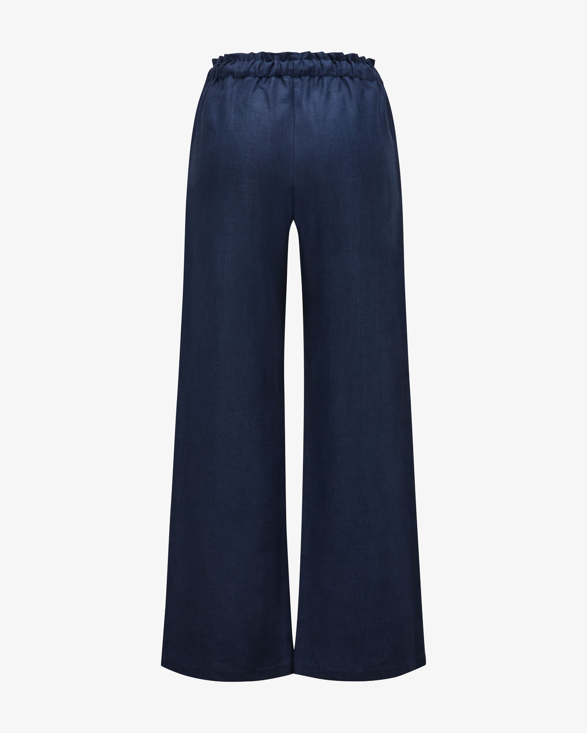 Hose für Damen von Manzoni 24 in Dunkelblau. Dieses Modell zeichnet sich durch die hochwertige Summertime Loro Piana-Qualität aus leichtem Leinen-Schurwoll-Mix aus, die zusammen mit dem elastischen Bund hohen Tragekomfort verspricht und so einen luftigen Favoriten mit maritimem Flair schafft.