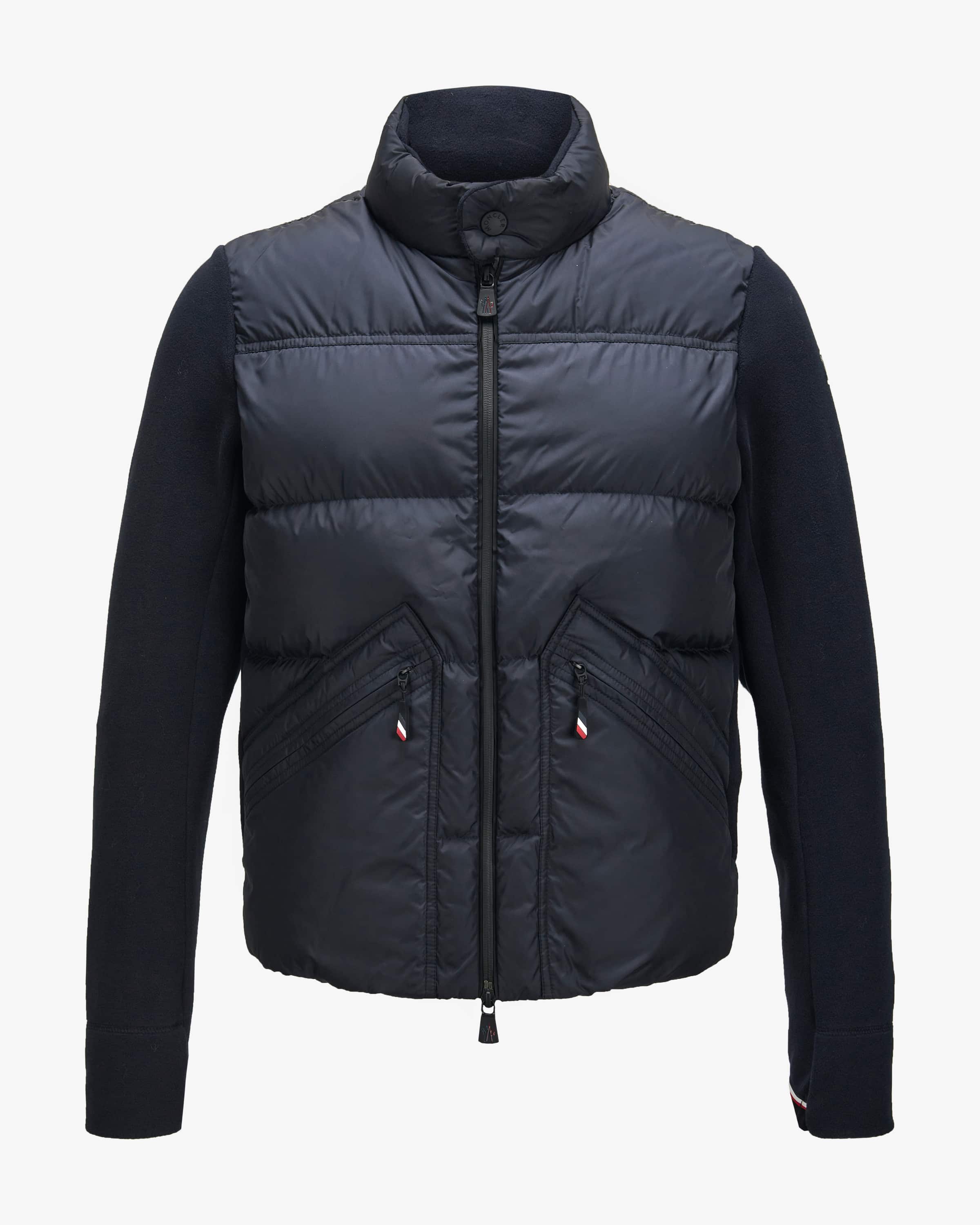 Hybrid-Daunenjacke für Herren von Moncler in Navy. Die italienische Marke kombiniert Funktionalität mit Luxus – insbesondere im Bereich hochwertiger Jacken und Mäntel. Auch dieses maskuline Modell überzeugt mit raffiniertem Material-Mix aus weichem Fleece und leicht wattierter Vorderseite. Die tonige Hybrid-Aufmachung und funktionale Details schaffen einen sportiven Begleiter für legere Übergangs- Looks.