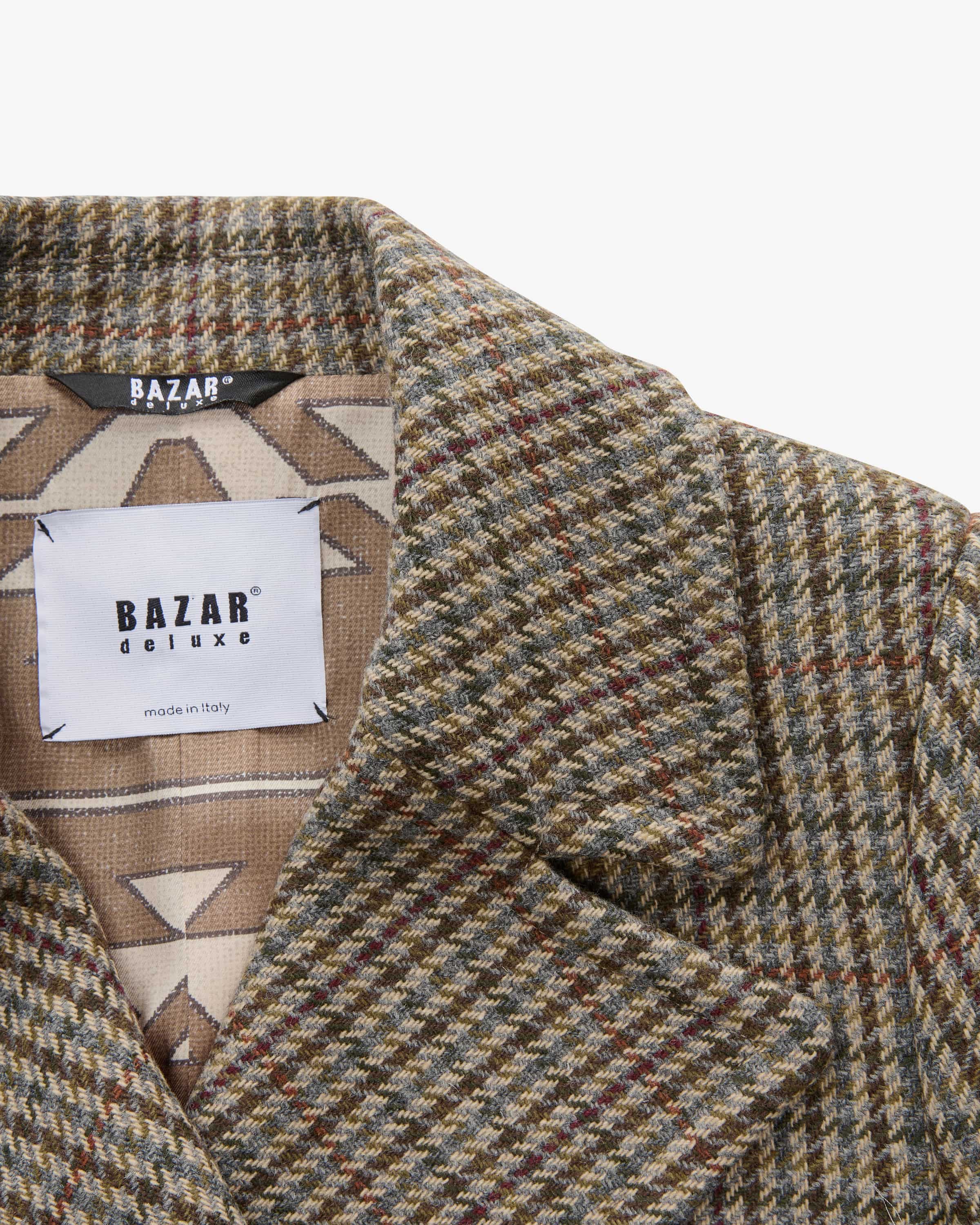 Jacke für Damen von Bazar Deluxe in Oliv und Bunt. Das Modell präsentiert sich dank des extravaganten Karo-Dessins in modischer Aufmachung, während klassische Details sowie die Schulterwattierung ein stilvolles Gesamtbild kreieren.