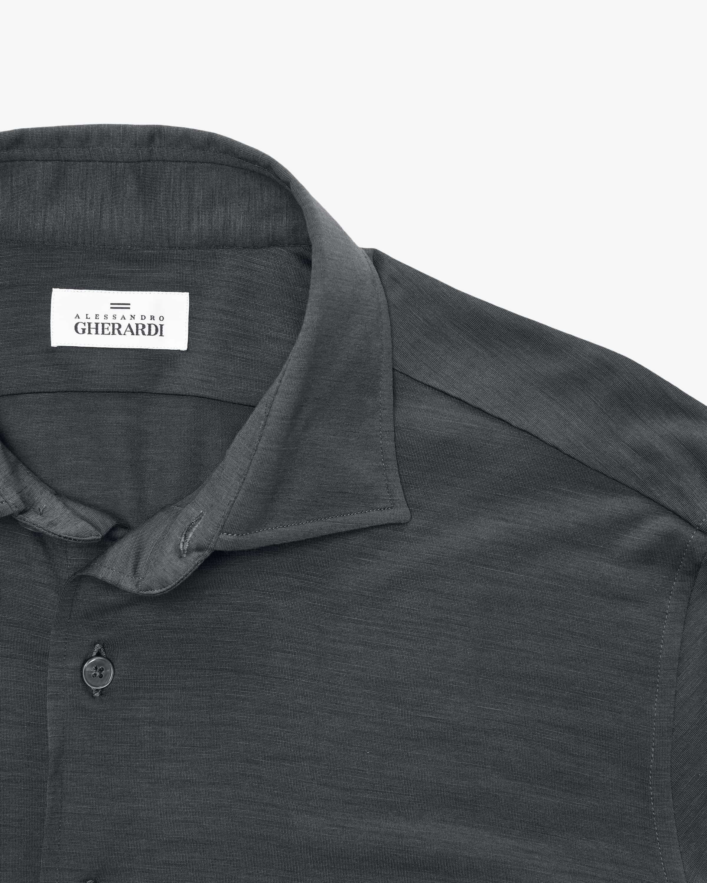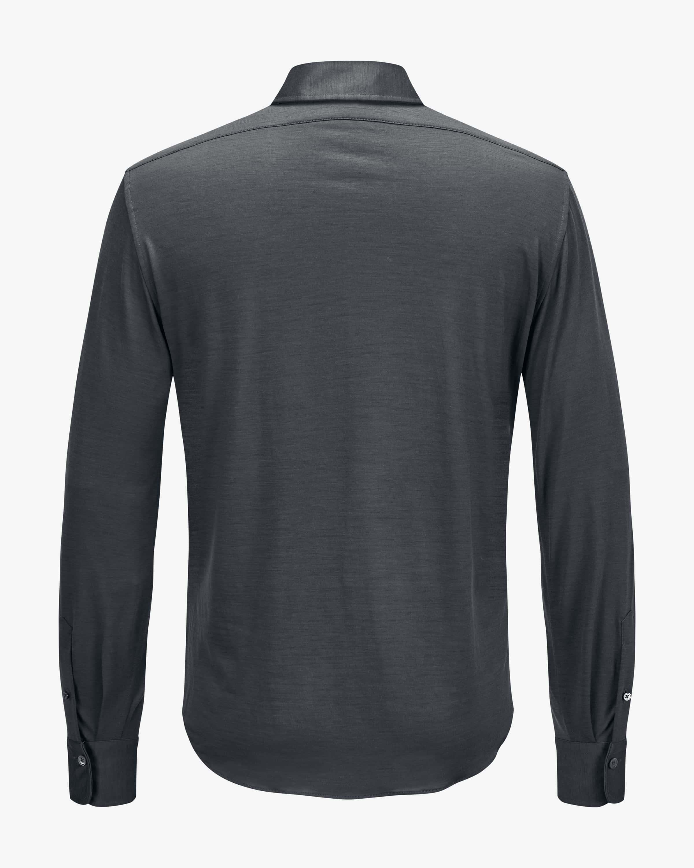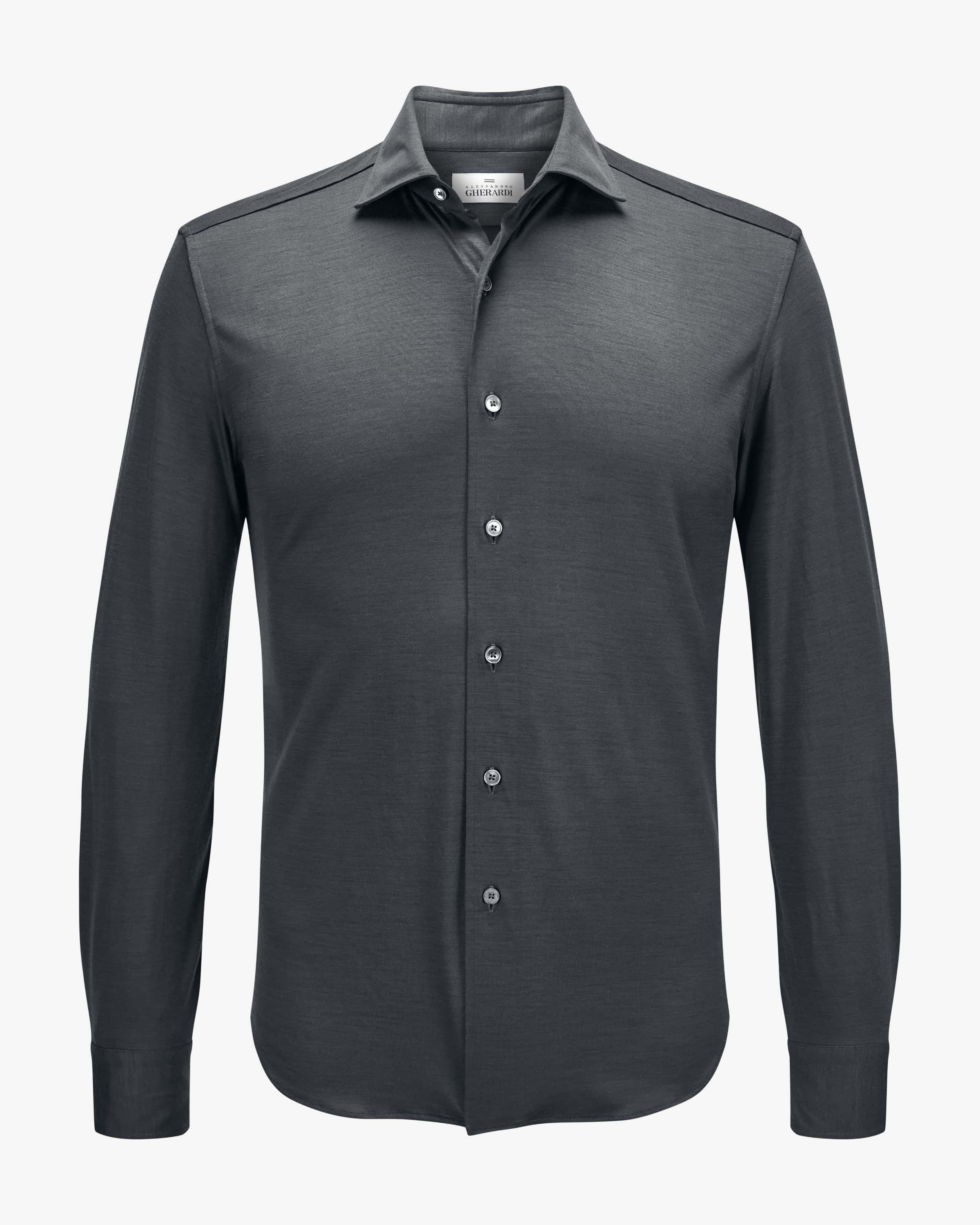 Jerseyhemd für Herren von Gherardi in Anthrazit. Italienischer Hemdenspezialist aus der Toskana – feine Stoffe und klassische Schnitte. Dieses Modell begeistert dank der Verwendung von hochwertiger Reda Active Merinowolle mit knitterfreier, geruchsneutralisierender und atmungsaktiver Eigenschaft, während die leichte Jersey-Qualität hohen Tragekomfort verspricht.