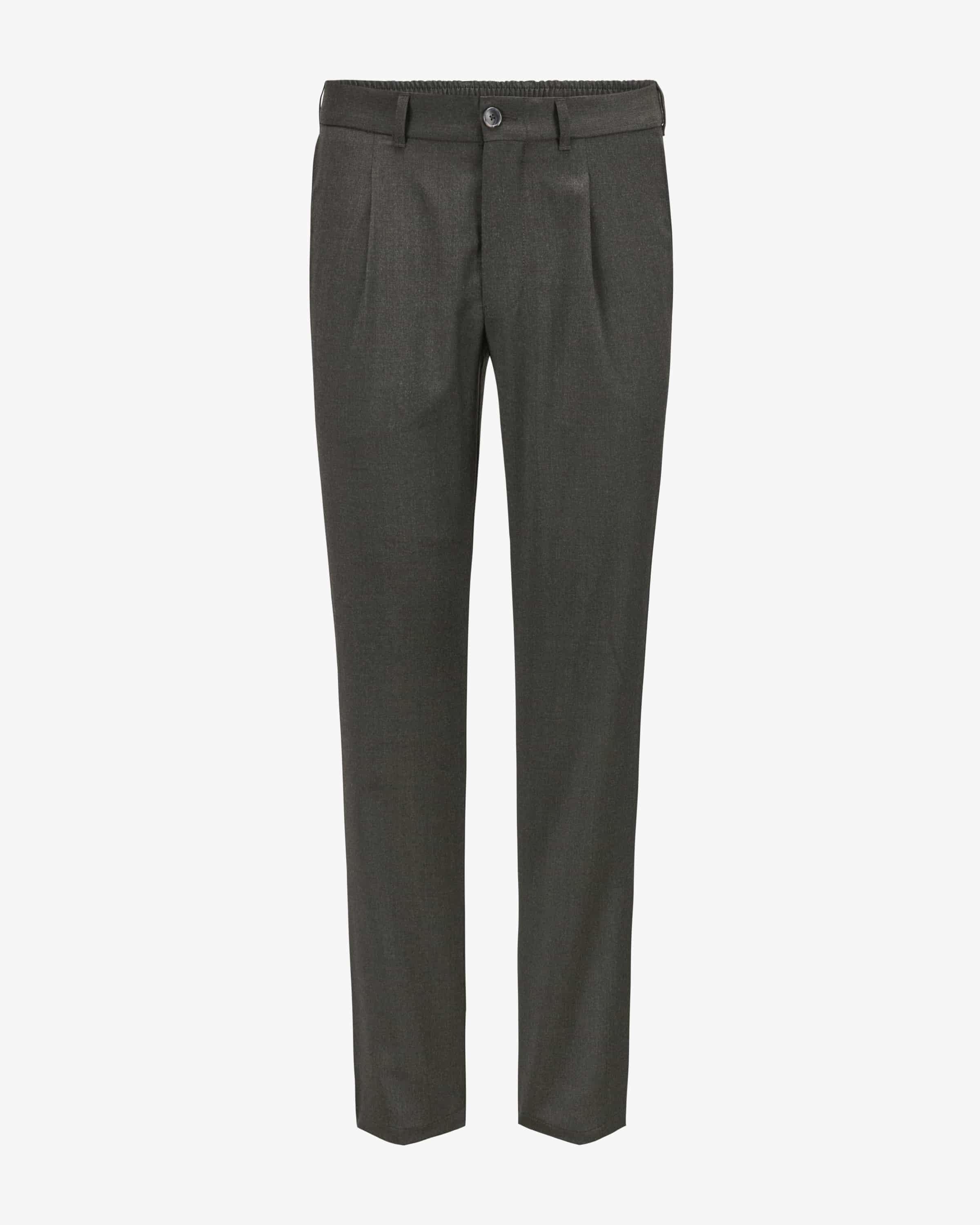 Joe Hose für Herren von Dressler in Dunkeloliv. Das verkürzte Modell aus hochwertiger Schurwolle präsentiert sich dank der leichten Haptik und elastischem Bund als komfortabler Begleiter für stilsichere Herren, welcher durch die Bundfalten einen edlen Touch erhält.