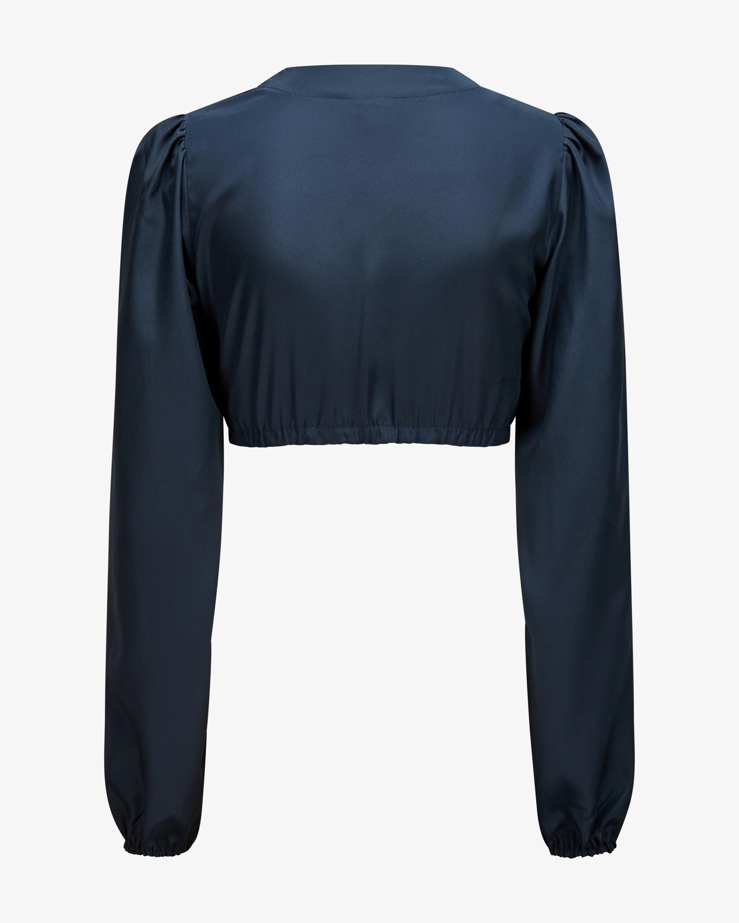 Lea Dirndlbluse für Damen von Kinga Mathe in Nachtblau. Das traditionelle Modell besticht dank der changierenden Material-Qualität mit einer femininen Eleganz, während elastische Bündchen den perfekten Sitz garantieren.