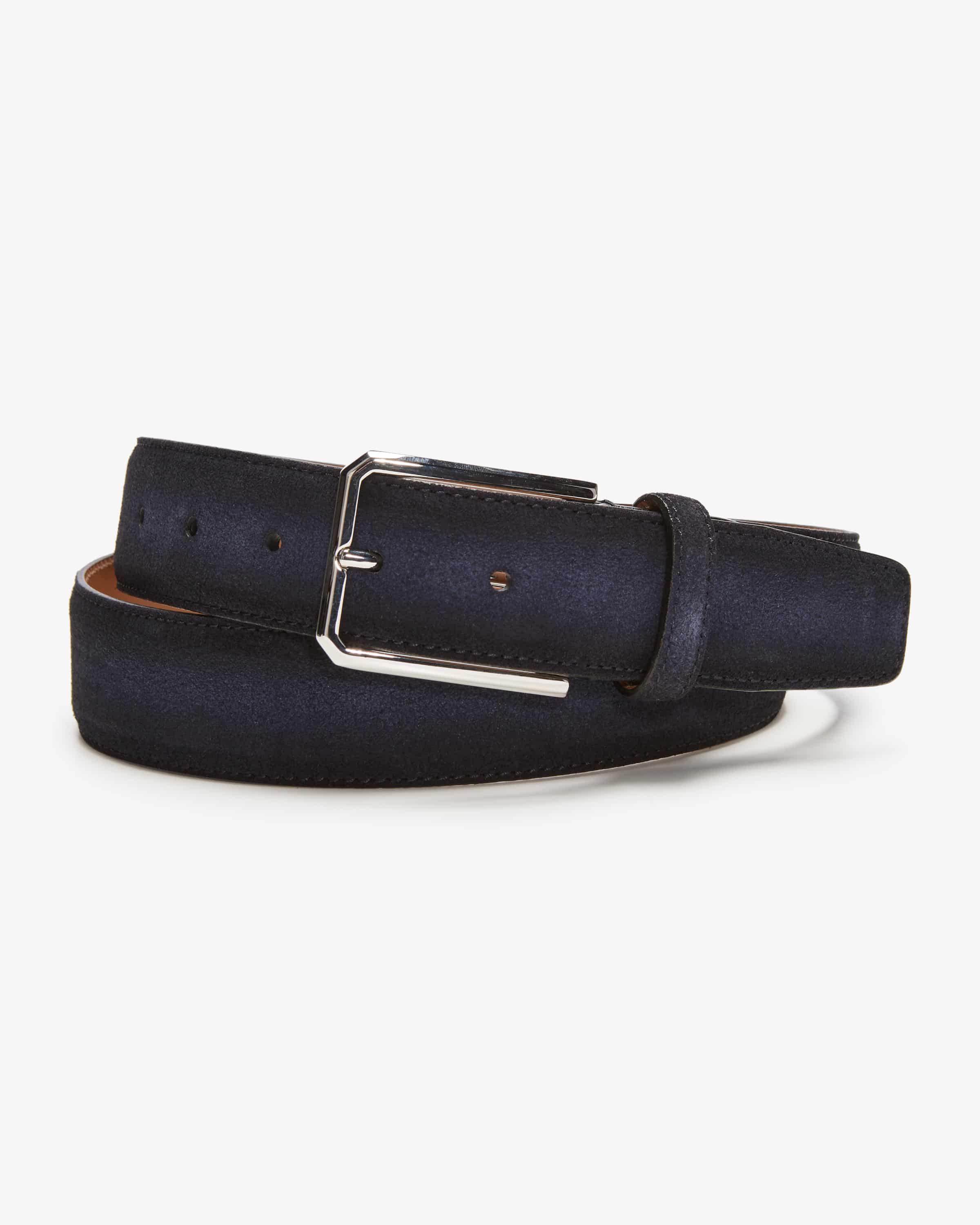 Ledergürtel für Herren von Santoni in Dunkelblau. Made in Italy - Das Modell aus hochwertigem Veloursleder zeigt sich dank klassischem Design als vielseitiger Begleiter für zahlreiche Looks.