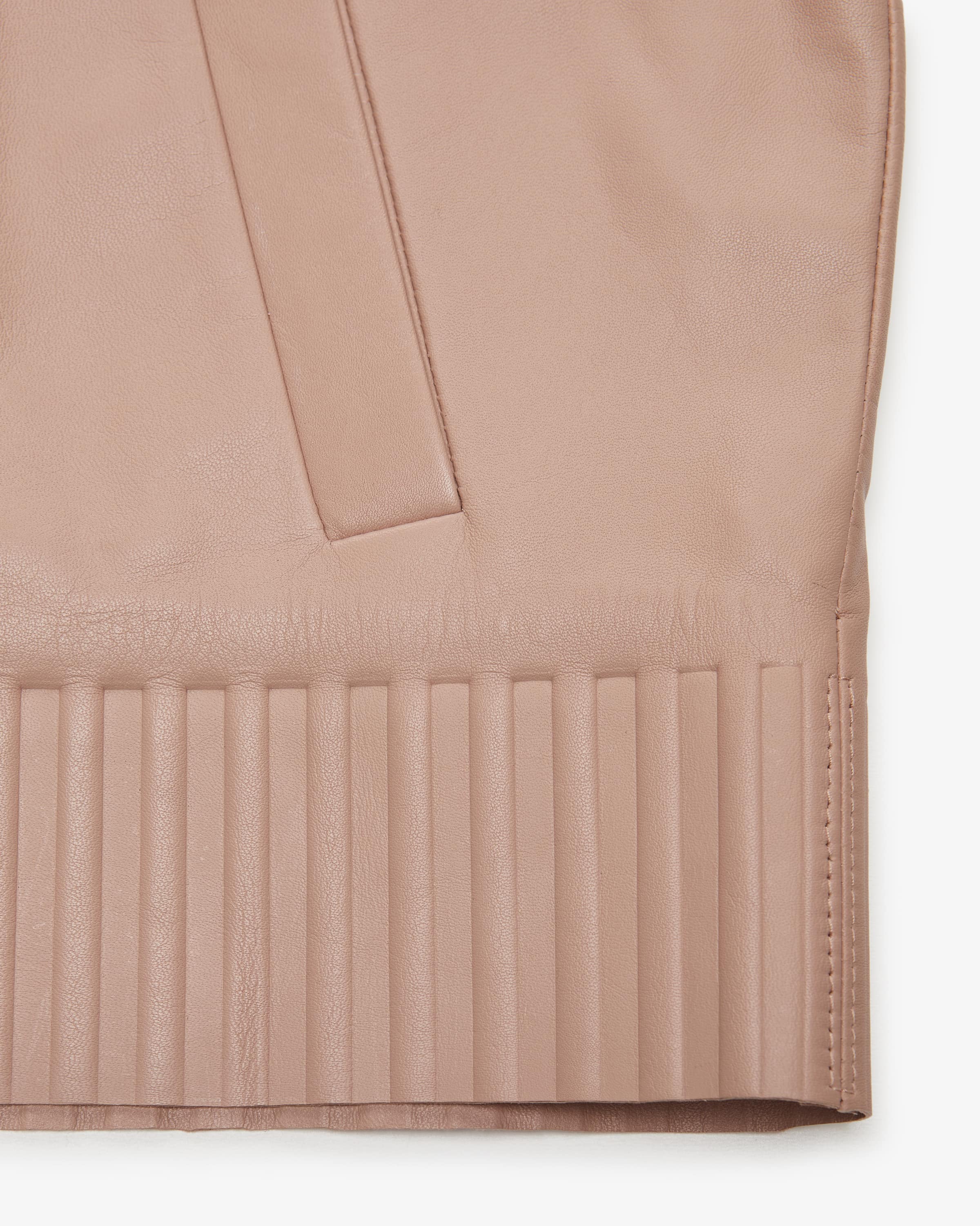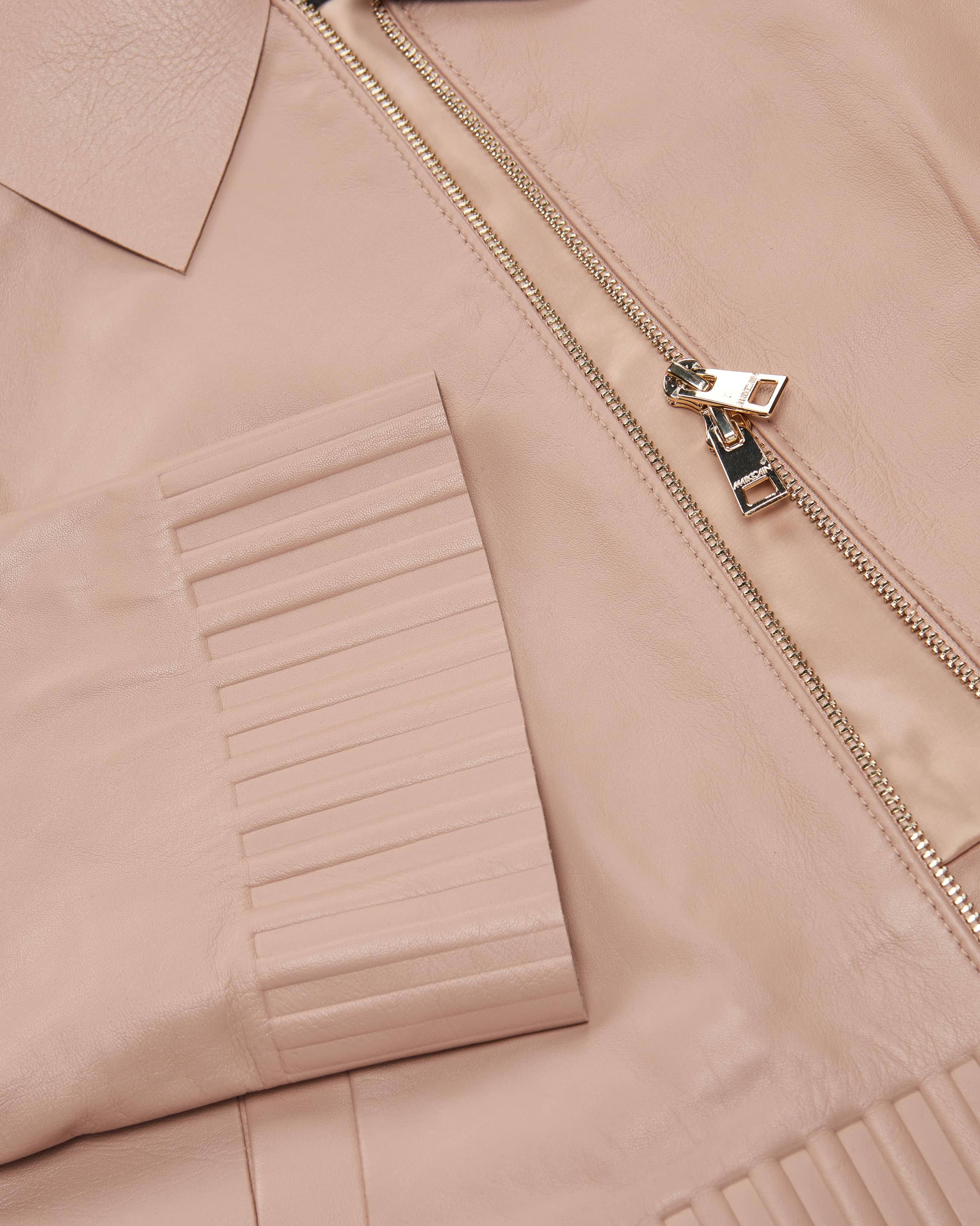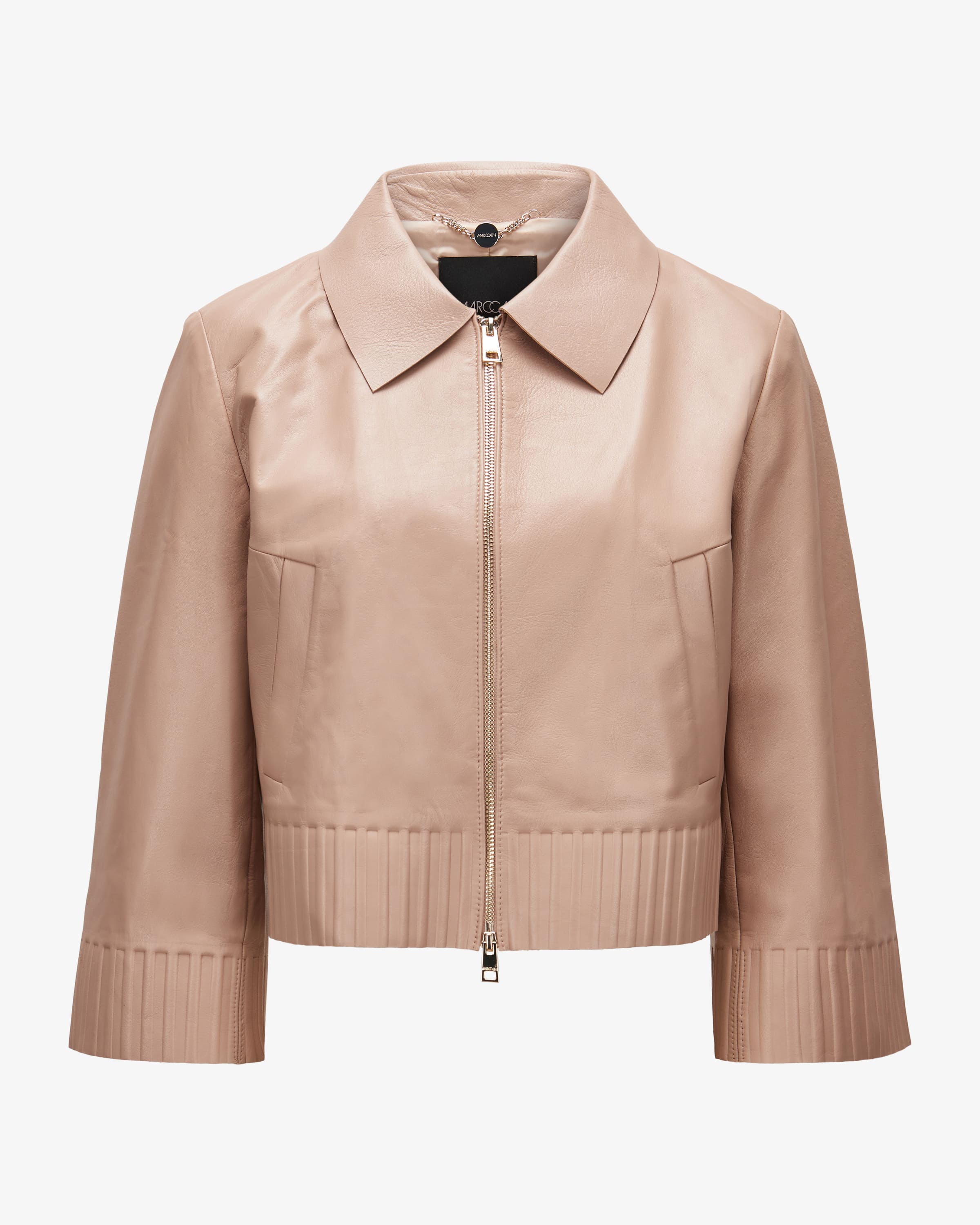 Lederjacke für Damen von Marc Cain in Nude. Die deutsche Marke steht für selbstbewusste, feminine Looks. Auch dieses Modell präsentiert sich mit verkürzter Silhouette und raffinierten Prägungen, während das hochwertige Lammnappa ein modernes Statement-Piece mit Cooless-Faktor kreiert.