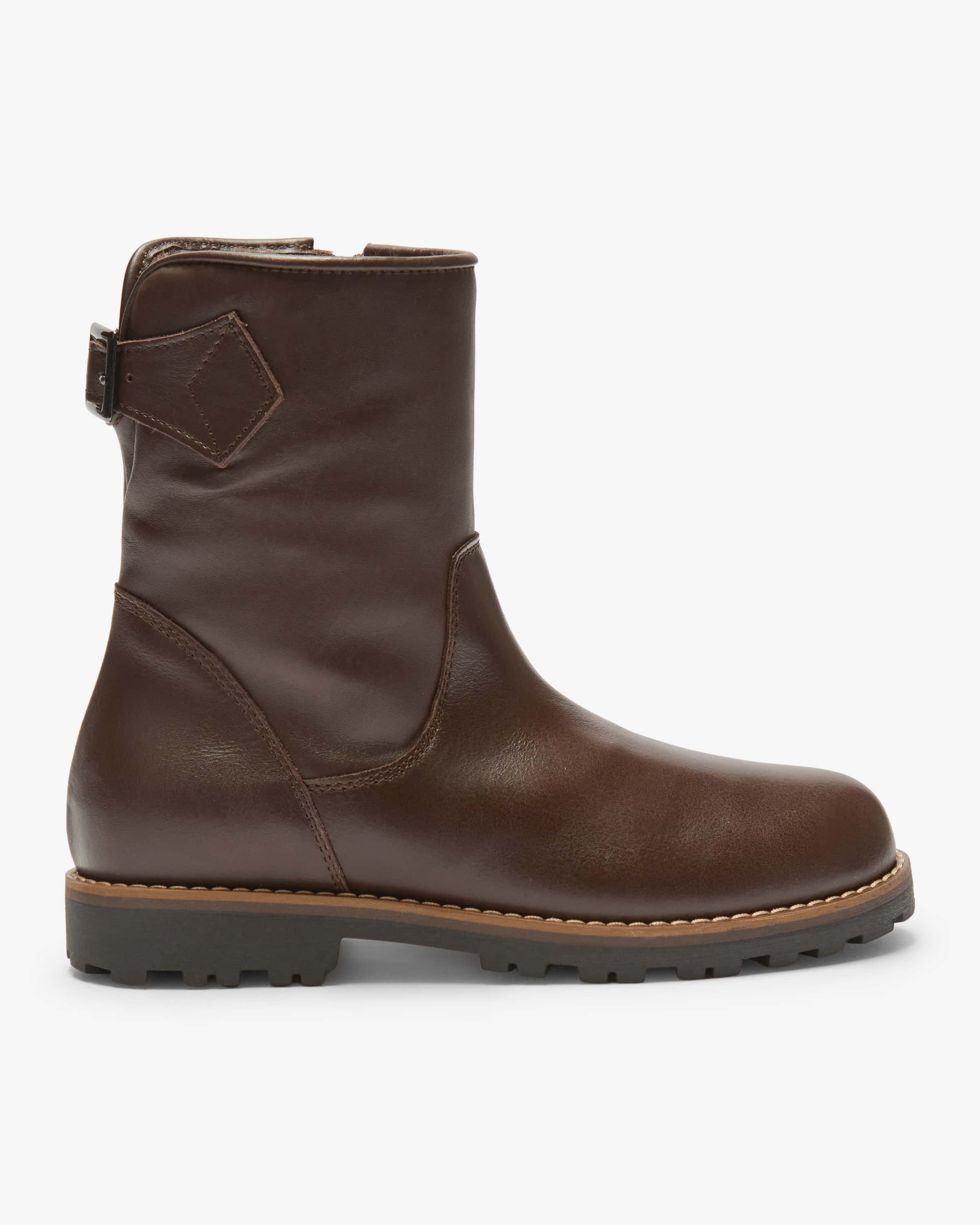 Lizzie Stiefel für Mädchen von LODENFREY in Dunkelbraun. Das Modell begeistert dank der hochwertigen Leder-Verarbeitung und rutschfesten Profilsohle, während die weiche Fake Fur- Innenseite wärmende Tragemomente verspricht.