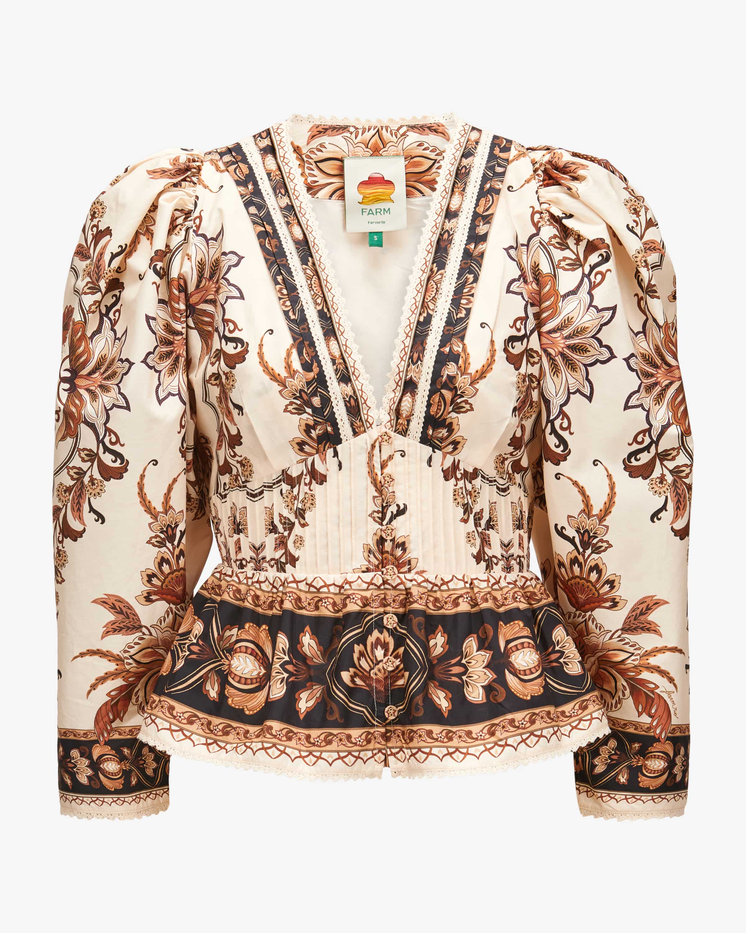 Majestic Garden Bluse für Damen von Farm Rio in Creme, Braun und Schwarz. Farm