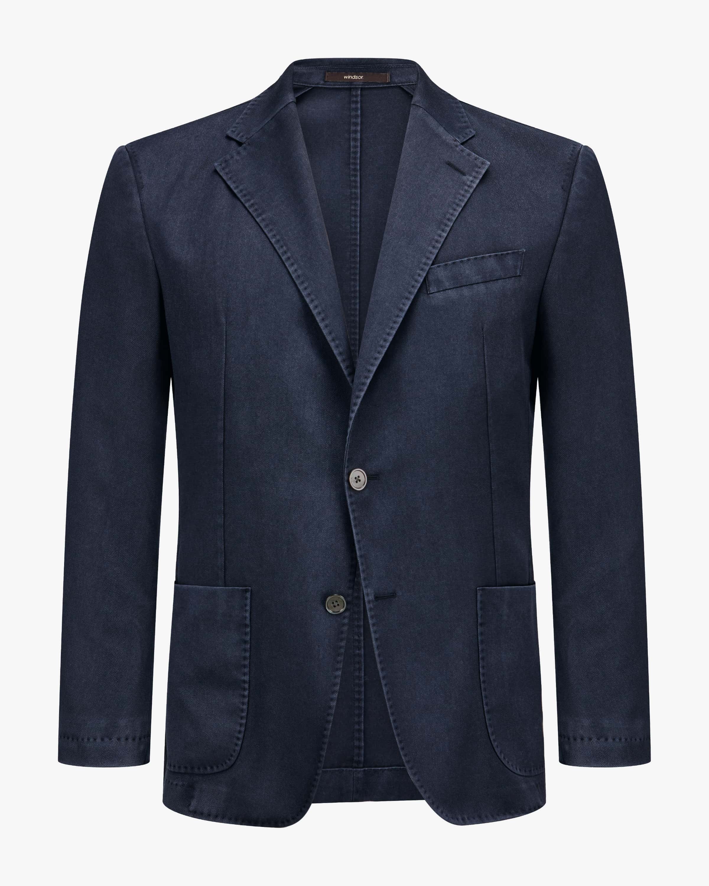 Manolo Sakko Shaped Fit für Herren von Windsor in Dunkelblau. Das Modell präsentiert sich in legerer Aufmachung dank der dezent strukturierten Schurwoll- Qualität in ausgewaschener Optik. Zugleich verleihen die dekorative Handstichnaht in Kombination mit klassischer Details eine sportive Casual Note für stilvolle Auftritte.