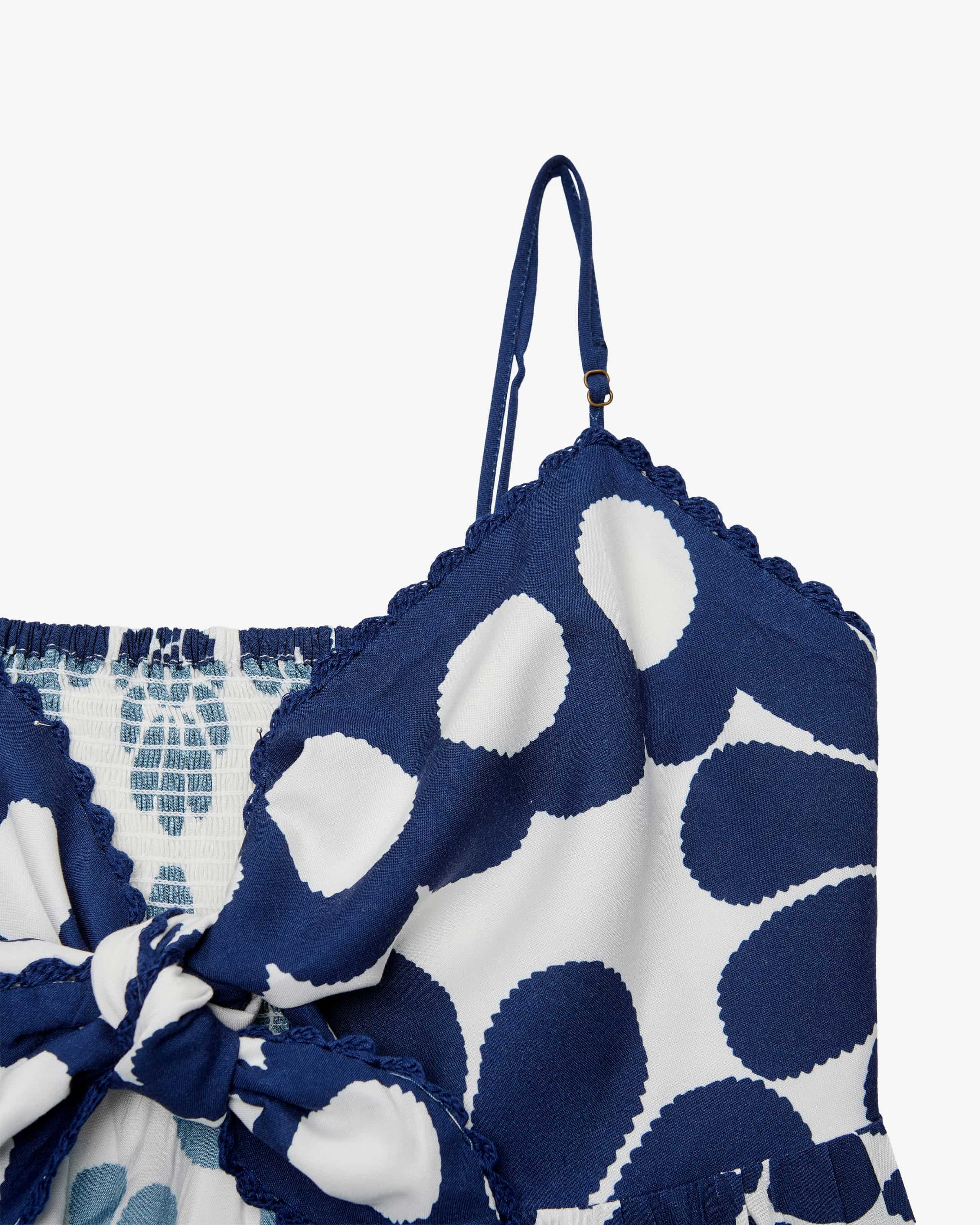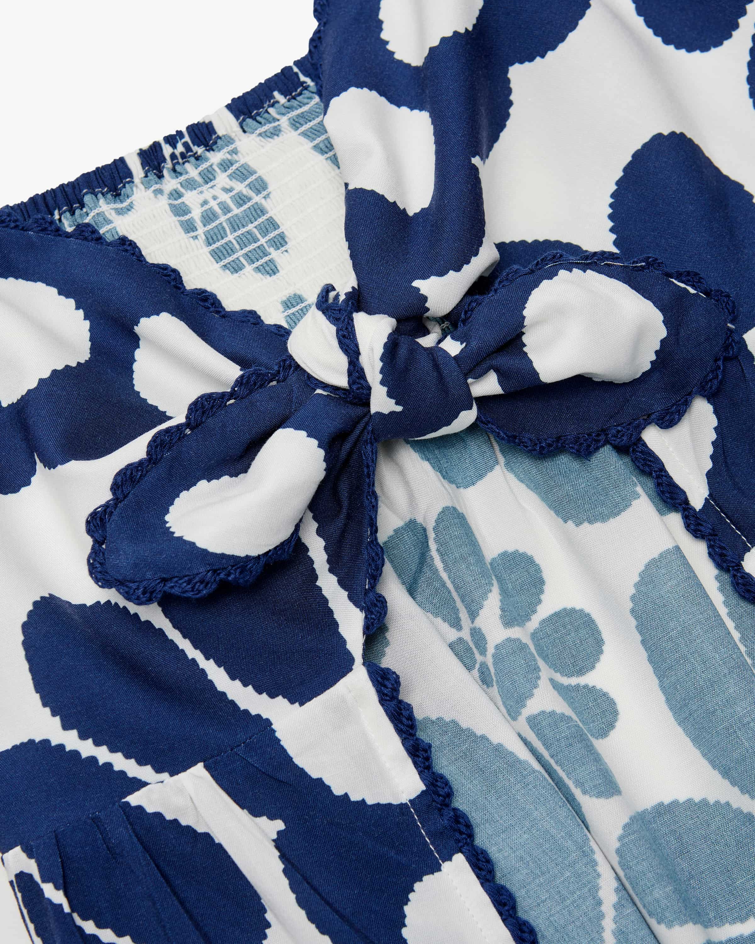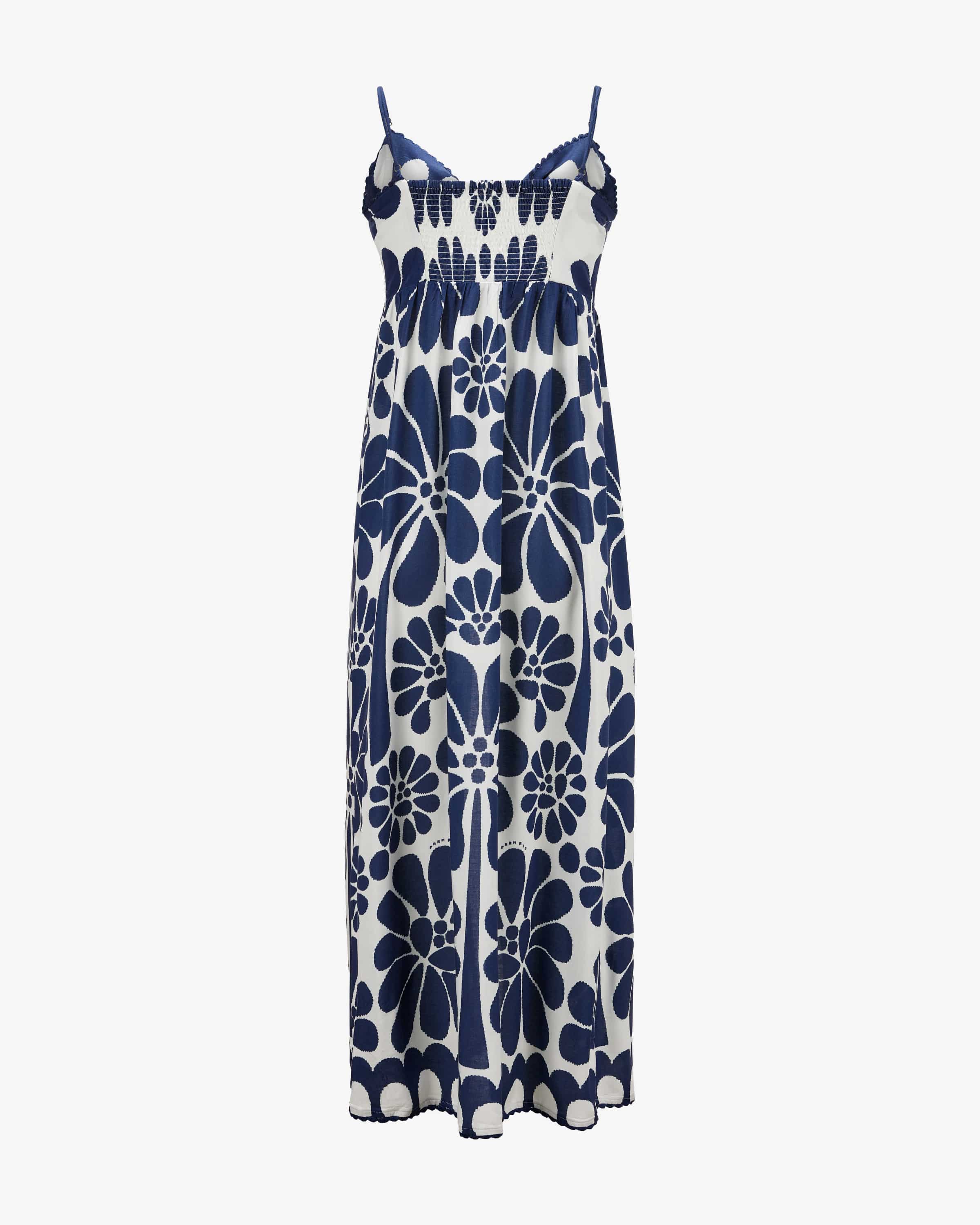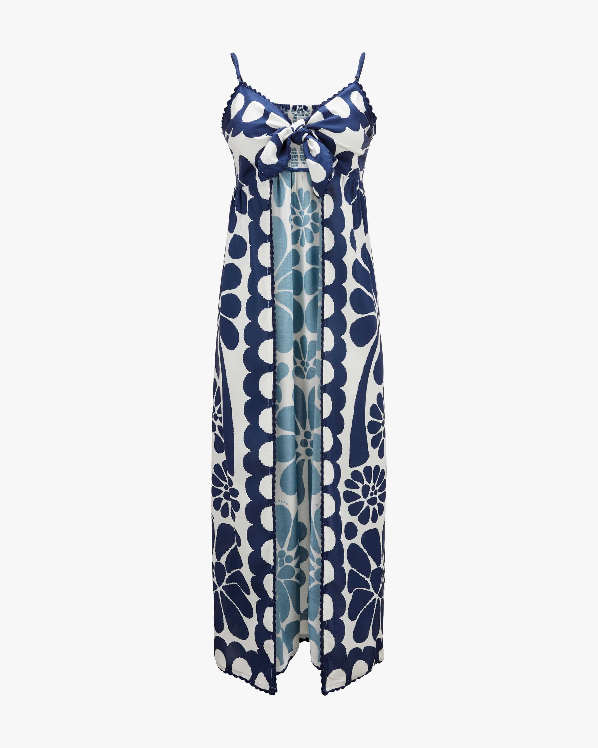 Kleid Palermo für Damen von Farm Rio in Dunkelblau und Weiß. Farm Rio, bekannt für lebendige Designs und ausdrucksstarke Prints, vereint in diesem Modell farbliche Raffinesse mit einer femininen Silhouette. Das Kleid besticht durch hochwertige Materialien und ein angenehmes Tragegefühl, während die fließende Passform sowie raffinierte Details modernen Stil und brasilianische Leichtigkeit verkörpern.