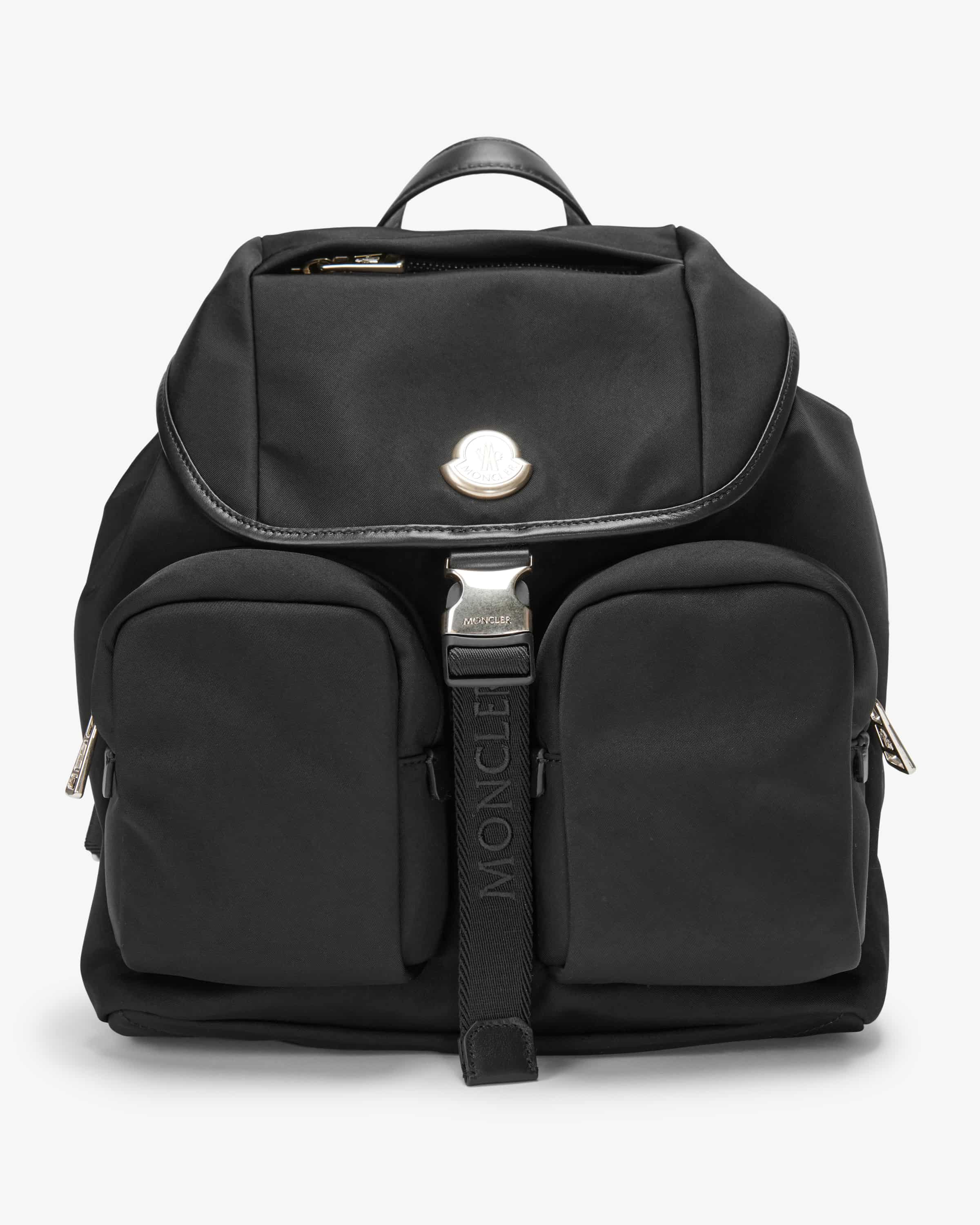 New Trick Rucksack für Damen von Moncler in Schwarz. Das Modell präsentiert sich in kompakter Aufmachung mit praktischen Außentaschen und verstellbarem Steck- Verschluss, während das geräumige Hauptfach genügend Stauraum für all Ihre Essentials bietet. Logo- und Leder-Details runden das Gesamtbild harmonisch ab.