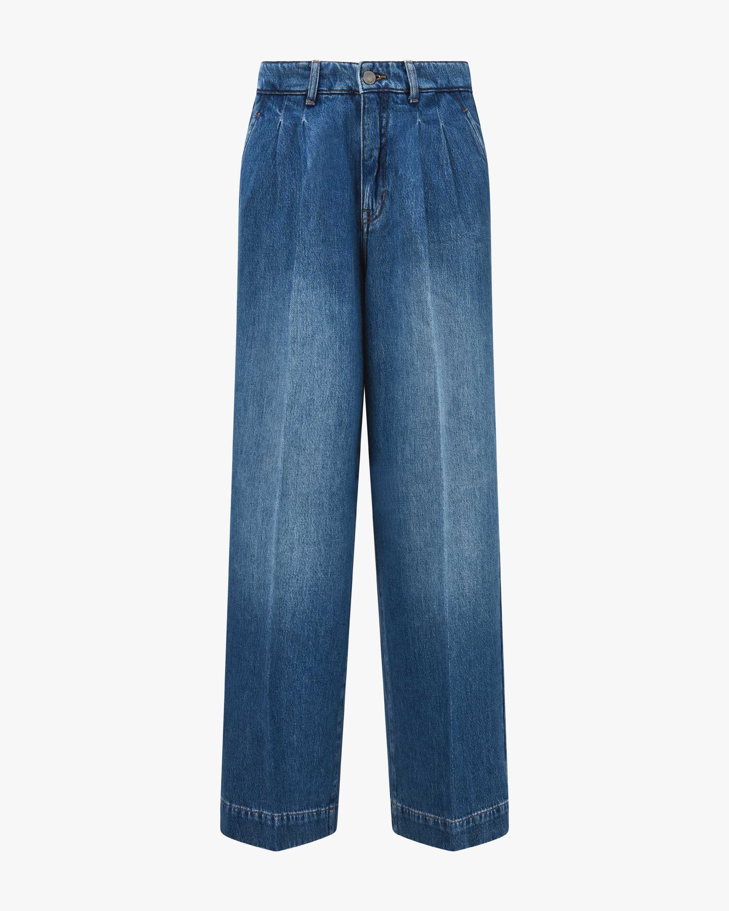 Noa Jeans für Damen von Rossi in Blau. Kontrastnähte, Bundfalten sowie die