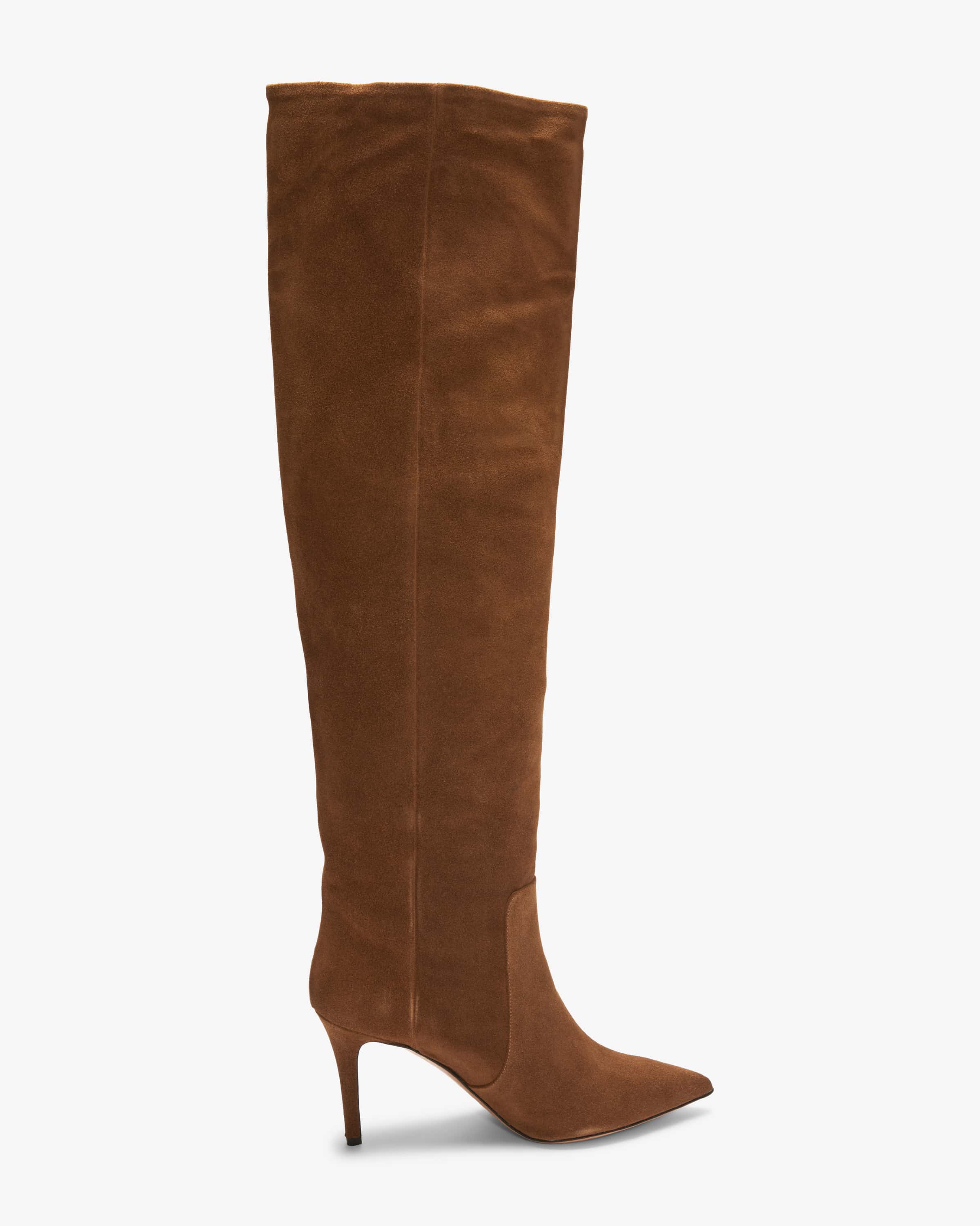 Nydia Overknee-Stiefel für Damen von LODENFREY in Braun. In hochwertiger Suede- Aufmachung besticht das Modell als modischer Liebling, während die spitze Form sowie der hohe Absatz dem Gesamtbild feminine Eleganz verleihen.