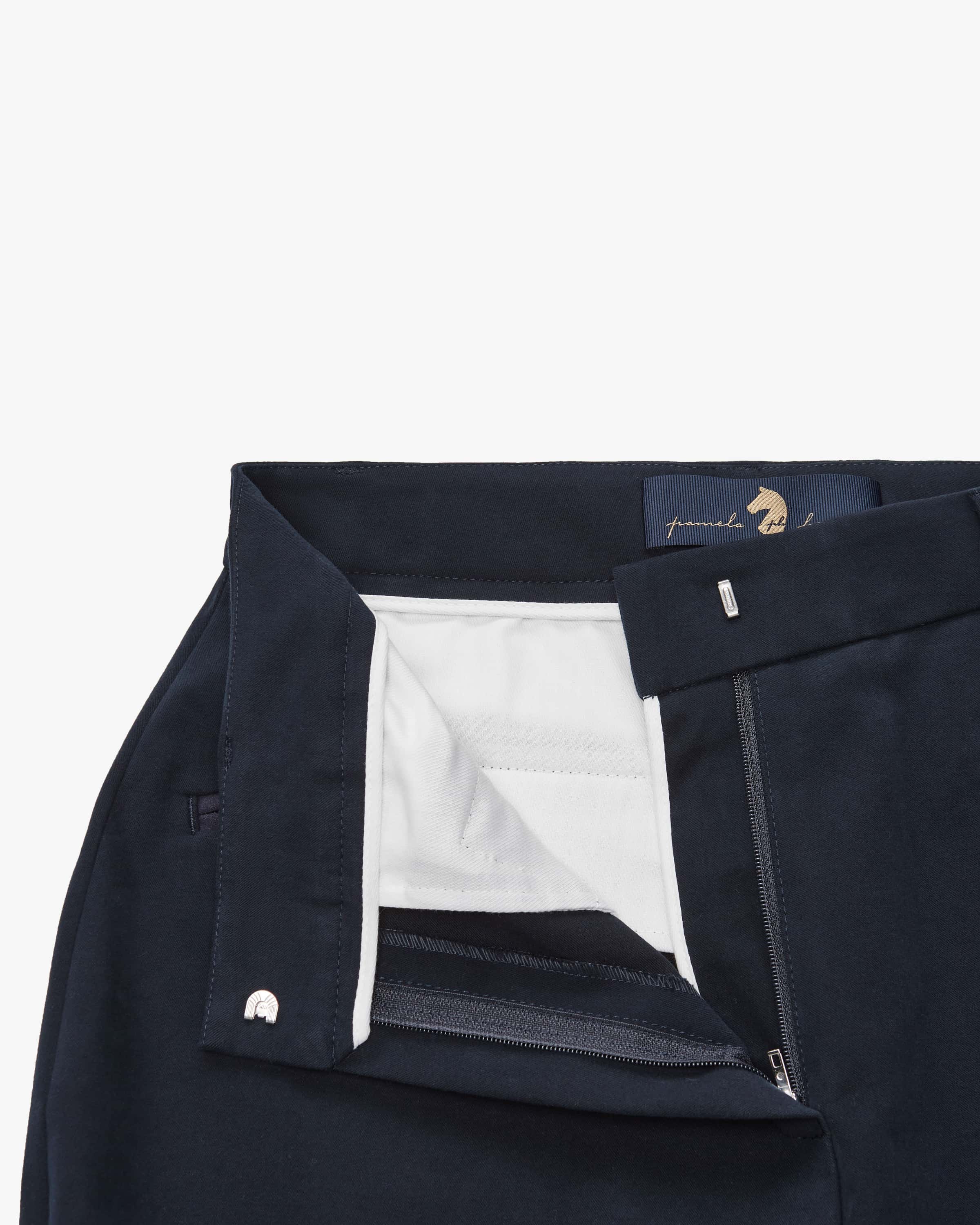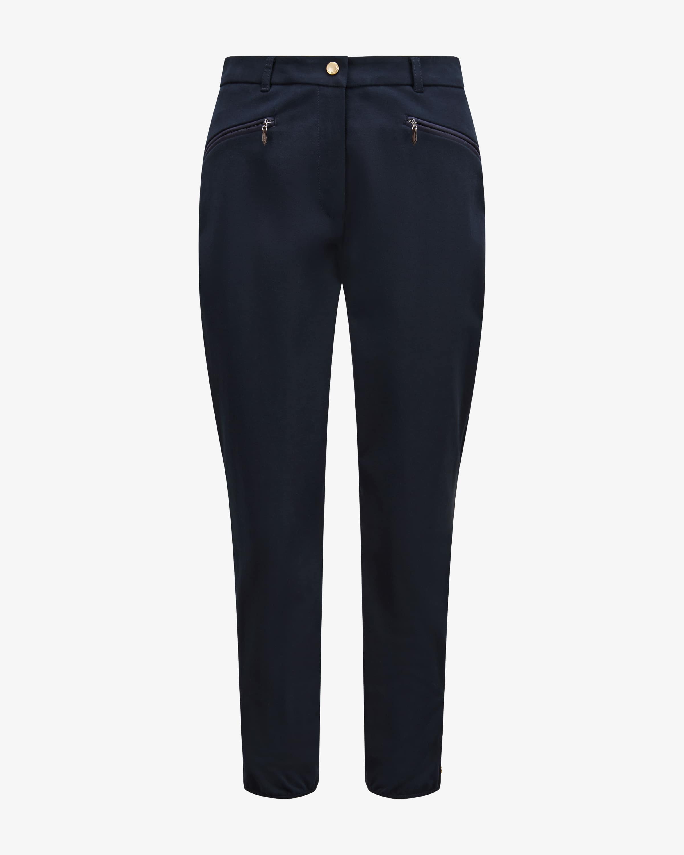 Pages 7/8-Reiterhose für Damen von Pamela Henson in Navy. Bekannt für ihre hochwertigen Hosen mit perfekter Passform – casual und elegant zugleich. Auch dieses Modell avanciert dank der elastischen Material-Qualität zum einem besonderen Begleiter der in typischer Silhouette einen femininen Begleiter beim Ausflug aufs Gestüt kreiert.