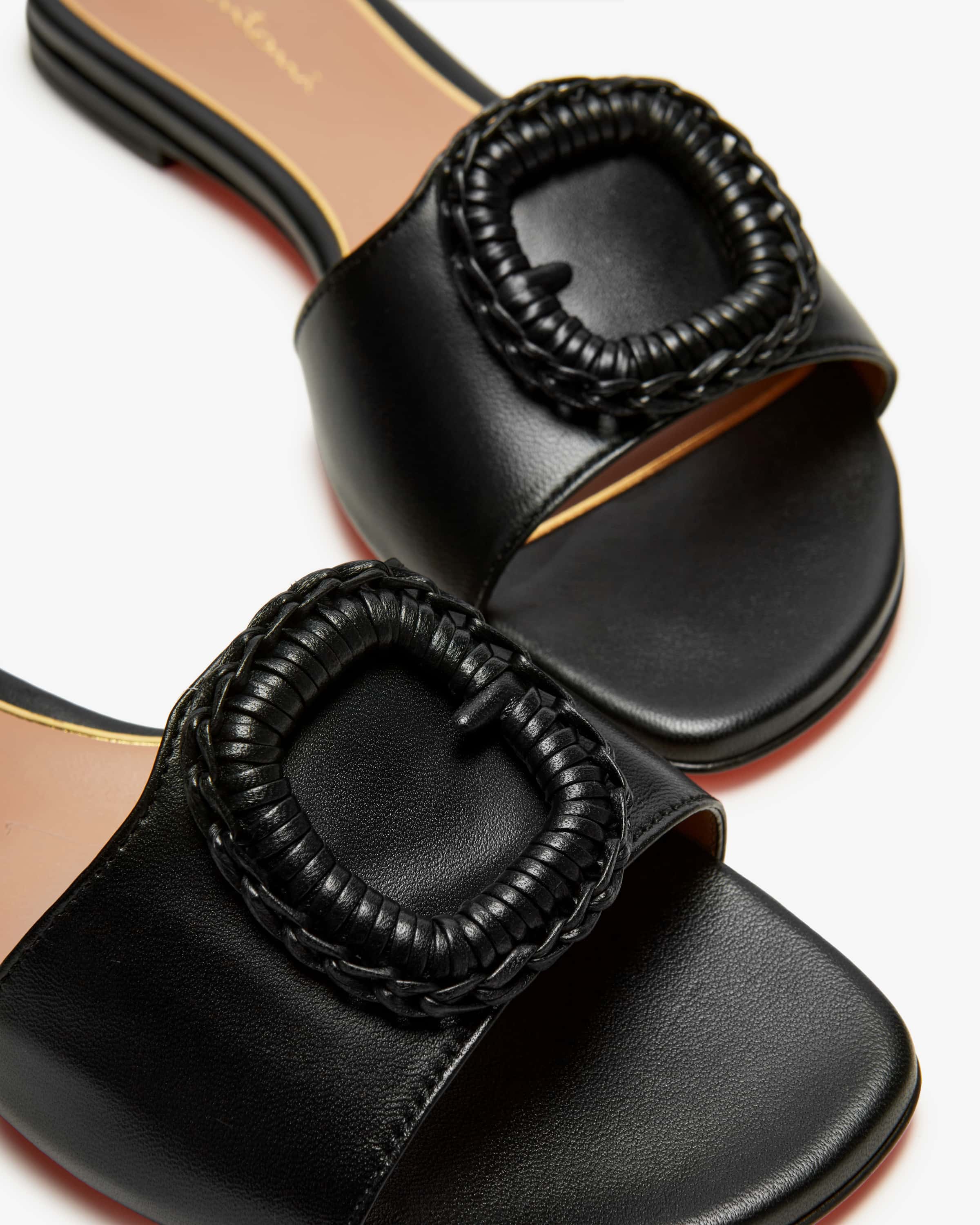 Pantoletten Corolle für Damen von Santoni in Schwarz. Die italienische Luxusmarke steht für handgefertigte Schuhe mit makelloser Verarbeitung und edlem Finish. Das Modell aus hochwertigem Leder wird durch die dekorative Schließen- Applikation elegant in Szene gesetzt und avanciert so zum sommerlichen Begleiter für stilvolle Looks.
