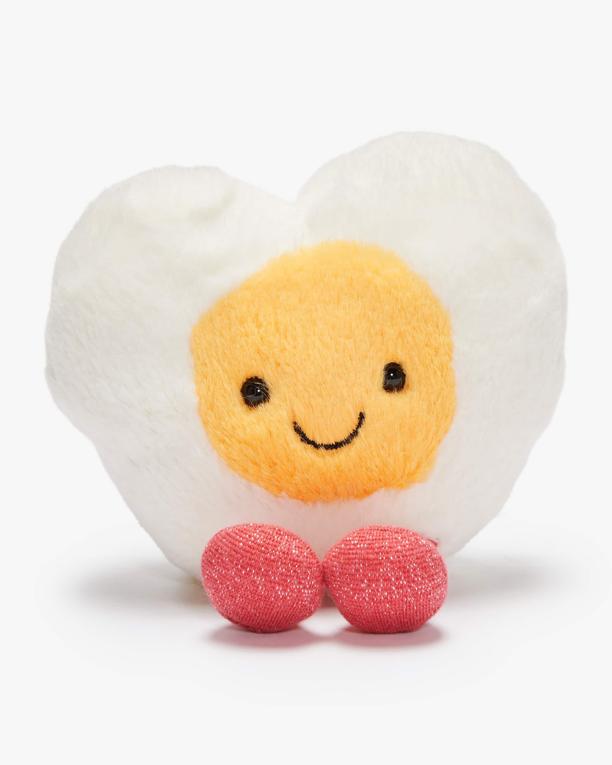 Plüschtier Amuseables Heart Egg von Jellycat in Weiß, Gelb und Pink. Das Label, welches seit 1999 in London Kuscheltiere entwirft, begeistert durch die Kombination aus luxuriösen Stoffen sowie süßen und kreativen Designs. Das niedliche Modell in Herz-Form und mit Spiegelei-Motiv präsentiert sich als perfektes Geschenk für den Valentinstag.