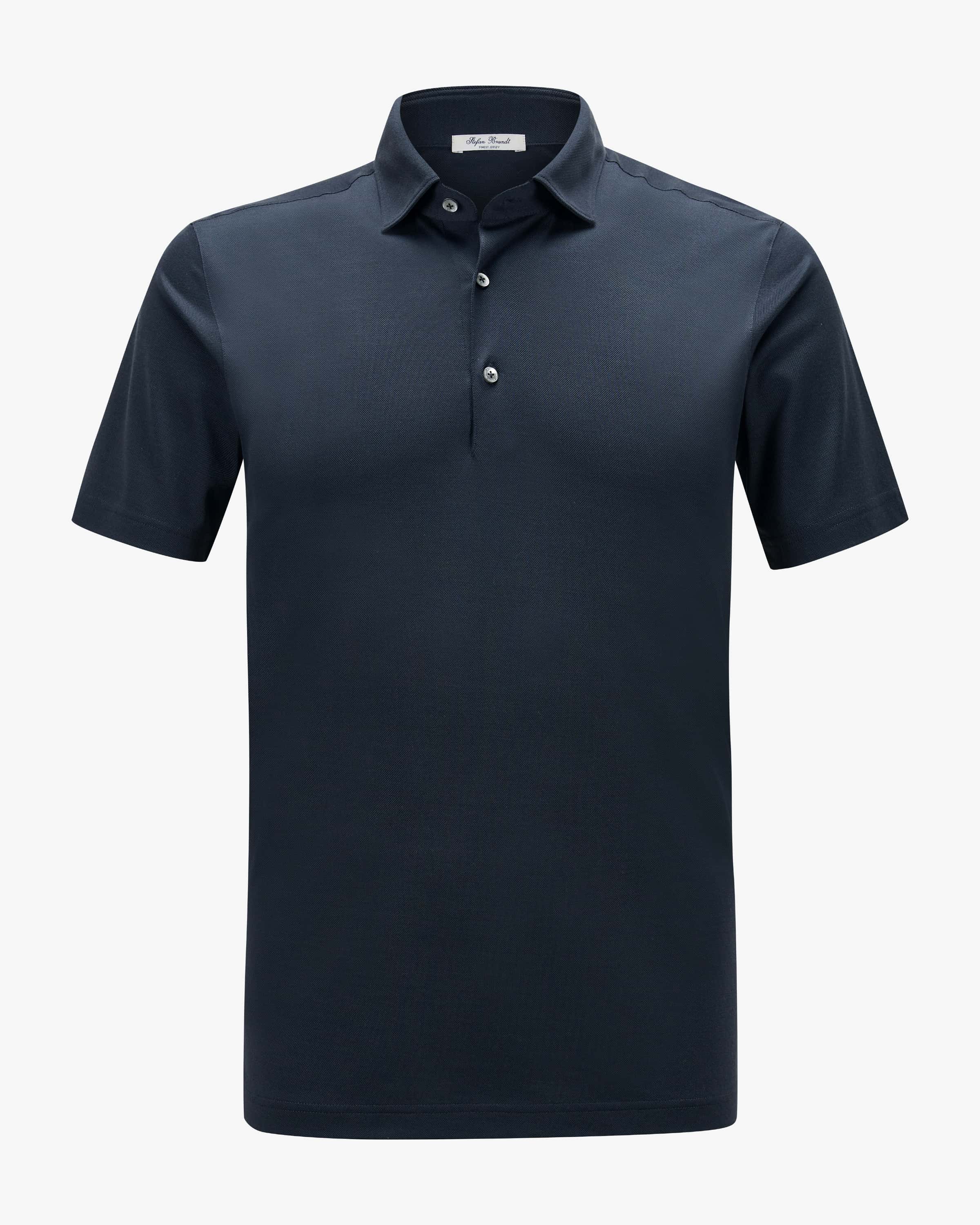 Poloshirt Luca für Herren von Stefan Brandt in Nachtblau. Deutsches Luxuslabel für puristische Jersey- und Strickmode – handwerklich präzise, kompromisslos edel. Dank der soften Baumwoll-Qualität präsentiert sich das Modell als angenehmer Begleiter für sportive Looks, während der Polokragen maskuline Akzente setzt.