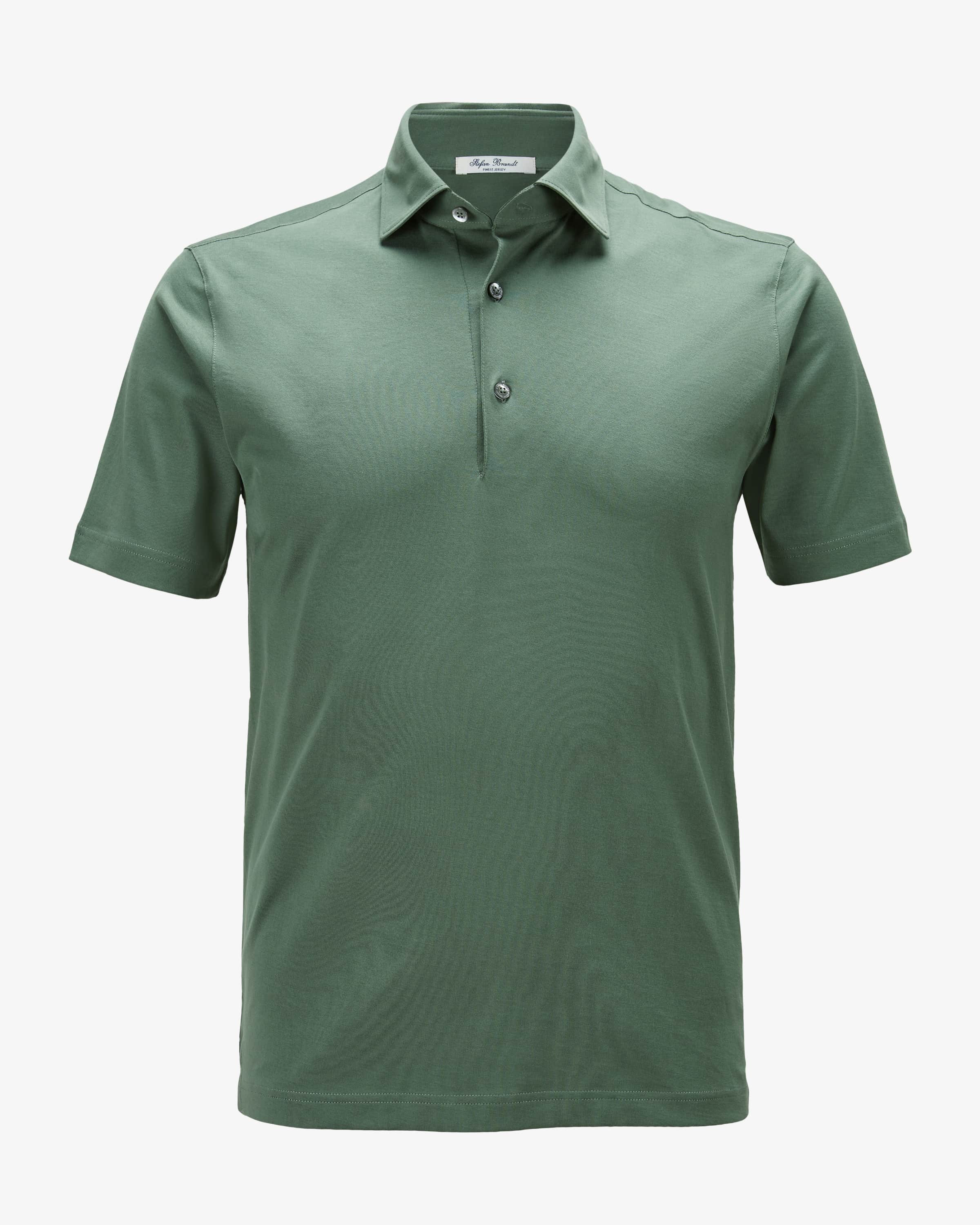 Poloshirt Luca für Herren von Stefan Brandt in Salbei. Deutsches Luxuslabel für puristische Jersey- und Strickmode – handwerklich präzise, kompromisslos edel. Dank der soften Baumwoll-Qualität präsentiert sich das Modell als angenehmer Begleiter für sportive Looks, während der Polokragen maskuline Akzente setzt.