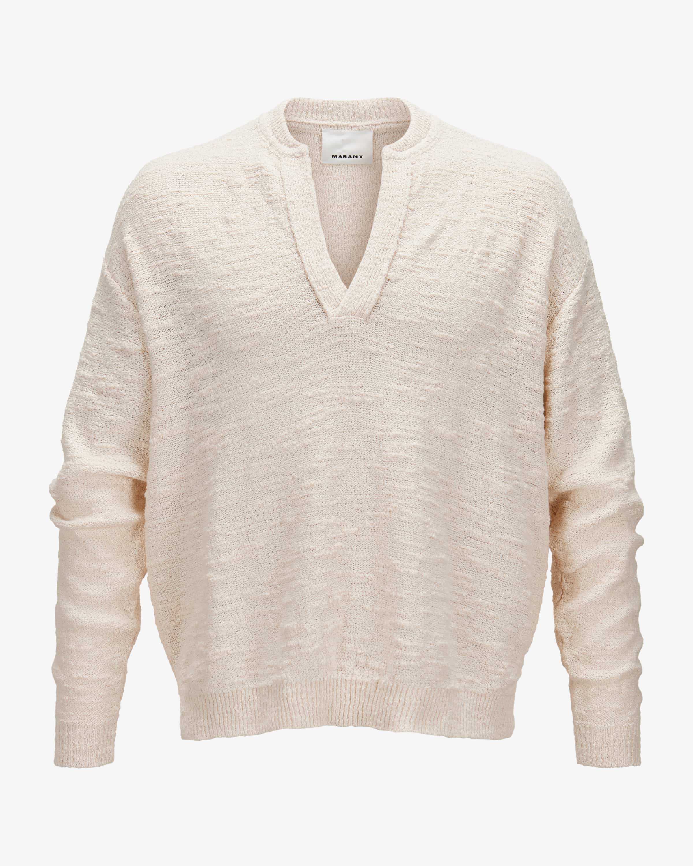 Pullover für Herren von Isabel Marant in Ecru. Das Label steht für lässige Pariser Eleganz mit bohemischem Einfluss. Auch dieses Modell überzeugt dank des Oversize-Schnitts als modischer Streetstyle-Liebling, welcher durch den angenehmen Baumwoll-Mix in leichter Strick-Haptik mit luftigem Tragegefühl punktet.